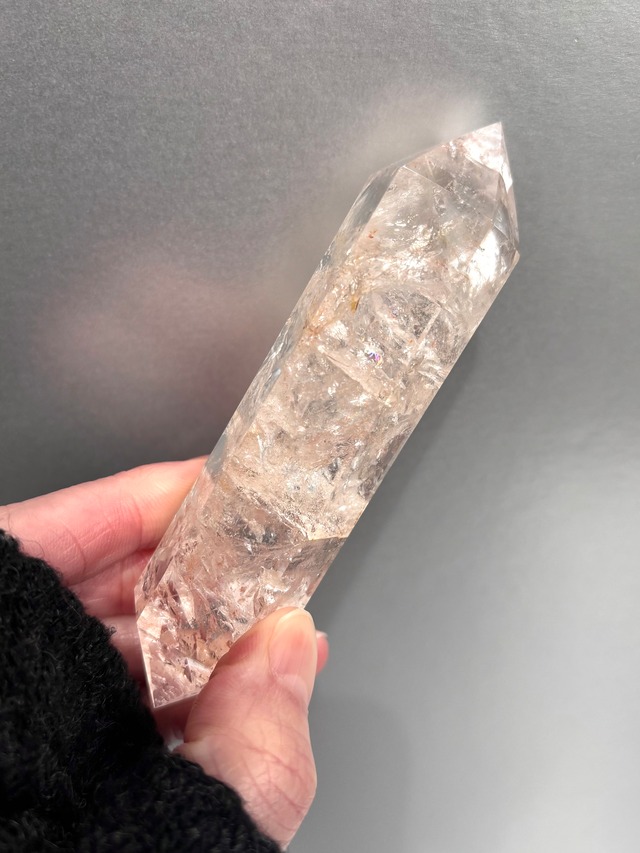 虹キラキラ、のピンククォーツポイントになります。 キラキラとした虹が確認できる美しいピンククォーツポイント* スフィアなど既にお持ちの方もコレクションとしてディスプレイに仲間入りさせることでより空間のキラキラ感がアップし視覚的に楽しむことが出来ます。 恋愛のお守りとして・持ち歩き用の相棒としてもぴったりのアイテム。 職場のデスクの片隅に置いて癒されながらお仕事するのもオススメです* 〜コメント〜 SALEご奉仕品⭐︎ 程よいピンクカラーが可愛らしいポイント* 透明感も健在する良品です。 ピンクカラーがお好きな方へ* ピンクアゼツライトが市場に出回り始めてきたのは比較的近年のこと。 ヒーラーさんの中でも今爆発的に人気があるこちらのクリスタル。 その中でも品質にこだわるオーナーが納得のいく品質のものを手にすることができたことをうれしく思っております。 写真・動画で見るよりも実物は数倍美しく手にした方は驚くことでしょう。 ほんのり優しい桜色のその姿から言葉では表現することが難しいほどの煌めく美しいレインボーの光を放ちます。 ピンク色のストーンは全般、【良縁】【恋愛】【愛情】などの意味合いが強い印象ではありますがピンクアゼツライトは「潜在意識の活性」「高次元と精神がつながる」として多く知られています。 オーナー自身が個人コレクションにしたいと思うほどの驚くほど美しいピンククォーツポイントをお届けいたします。 動画はこちら 商品番号bb0134 ■ カラー/サイズ/バリエーション - カラー:ピンク 30✖️26✖️106 ※複雑な形状の為誤差はご理解ください ■ 素材/製造国 - 素材: 天然水晶 - 製造国:マダガスカル ■ お手入れ/取り扱い注意事項 - 直射日光の当たる場所での保管は避けてください。 ■ 発送・注文に関する情報や注意事項 - 在庫がある場合、通常5営業日以内に発送いたします。 - 商品に多少の個体差があることをご理解の上ご購入ください。 ■ その他の情報や注意事項 - 天然石の特性上、クラックや内包物が見られることがありますが、これは自然の証です。品質に問題はありませんので安心してお求めください。 ‐ 撮影環境、光加減、お手持ちのスマホやパソコン環境により実物と写真および動画は全く同じ色合いを再現することはできません。 ‐発送後に郵送中の破損によるイレギュラーな事例などを除き、注文間違いやイメージ違いなどお客様都合による返金・返品対応はいたしかねますのでご注意ください。 ご質問がある場合は、ショップのお問い合わせからお気軽にご連絡ください。 あなたの特別な相棒として、素晴らしいピンククォーツをぜひお迎えください。