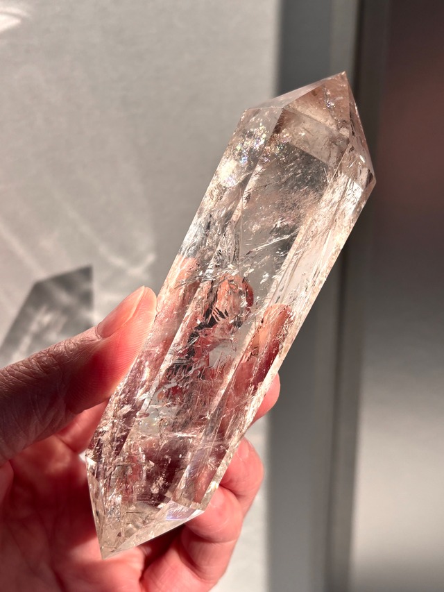 虹キラキラ、極上品質のピンククォーツポイントになります。 全体的にピンクカラー・クラックもピンク色に染まる女っぷりのある子* 素晴らしい透明度とファセット部分には花びらアイリスが確認できる美しいピンククォーツポイント* 大きめサイズで満足のいくサイズ感。 スフィアなど既にお持ちの方もコレクションとしてディスプレイに仲間入りさせることでより空間のキラキラ感がアップし視覚的に楽しむことが出来ます。 恋愛のお守りとして・観賞用としてもぴったりのアイテム。 職場のデスクの片隅に置いて癒されながらお仕事するのもオススメです* 〜コメント〜 雑味や不純物が見受けられないクリア極上品質☆ 全体的にピンクカラーに染まるフォルム、女性らしさ全開とも言えるピンククォーツ入荷することができました* ここまで透明度が高くまたクリスタル全体がピンクカラーのクォーツは希少です☆ 実物はお写真よりももっと透明感がありキラキラとしています* ピンクアゼツライトが市場に出回り始めてきたのは比較的近年のこと。 ヒーラーさんの中でも今爆発的に人気があるこちらのクリスタル。 その中でも品質にこだわるオーナーが納得のいく品質のものを手にすることができたことをうれしく思っております。 写真・動画で見るよりも実物は数倍美しく手にした方は驚くことでしょう。 ほんのり優しい桜色のその姿から言葉では表現することが難しいほどの煌めく美しいレインボーの光を放ちます。 ピンク色のストーンは全般、【良縁】【恋愛】【愛情】などの意味合いが強い印象ではありますがピンクアゼツライトは「潜在意識の活性」「高次元と精神がつながる」として多く知られています。 オーナー自身が個人コレクションにしたいと思うほどの驚くほど美しいピンククォーツポイントをお届けいたします。 動画はこちら https://youtube.com/shorts/x8VsuqitkHc?si=_aJHrVefrtCH8qTE 商品番号bb0161 ■ カラー/サイズ/バリエーション - カラー:ピンク W66✖️D49✖️H123 ※複雑な形状の為誤差はご理解ください ■ 素材/製造国 - 素材: 天然水晶 - 製造国:マダガスカル ■ お手入れ/取り扱い注意事項 - 直射日光の当たる場所での保管は避けてください。 ■ 発送・注文に関する情報や注意事項 - 在庫がある場合、通常5営業日以内に発送いたします。 - 商品に多少の個体差があることをご理解の上ご購入ください。 ■ その他の情報や注意事項 - 天然石の特性上、クラックや内包物が見られることがありますが、これは自然の証です。品質に問題はありませんので安心してお求めください。 ‐ 撮影環境、光加減、お手持ちのスマホやパソコン環境により実物と写真および動画は全く同じ色合いを再現することはできません。 ‐発送後に郵送中の破損によるイレギュラーな事例などを除き、注文間違いやイメージ違いなどお客様都合による返金・返品対応はいたしかねますのでご注意ください。 ご質問がある場合は、ショップのお問い合わせからお気軽にご連絡ください。 あなたの特別な相棒として、素晴らしいピンククォーツをぜひお迎えください。