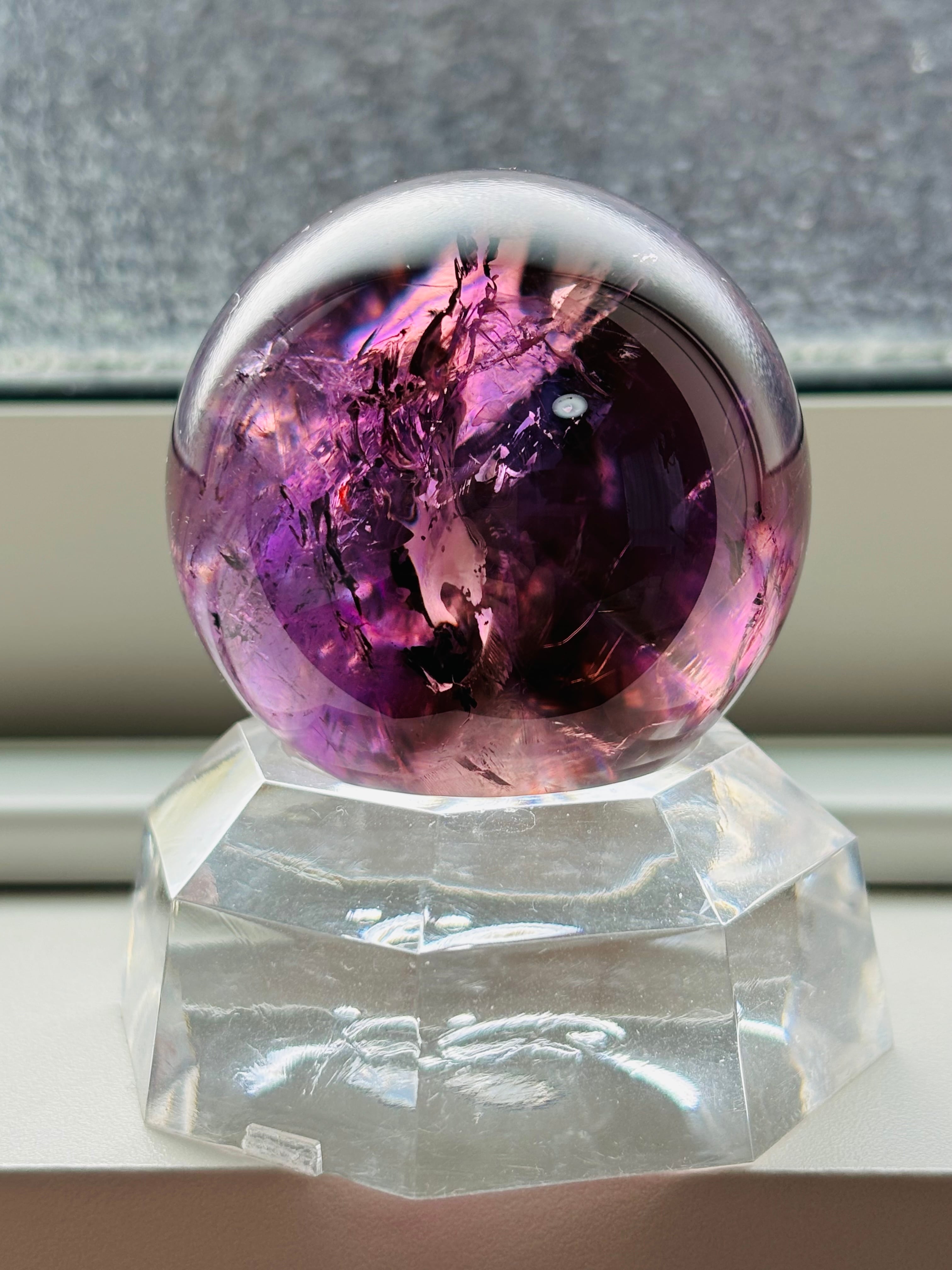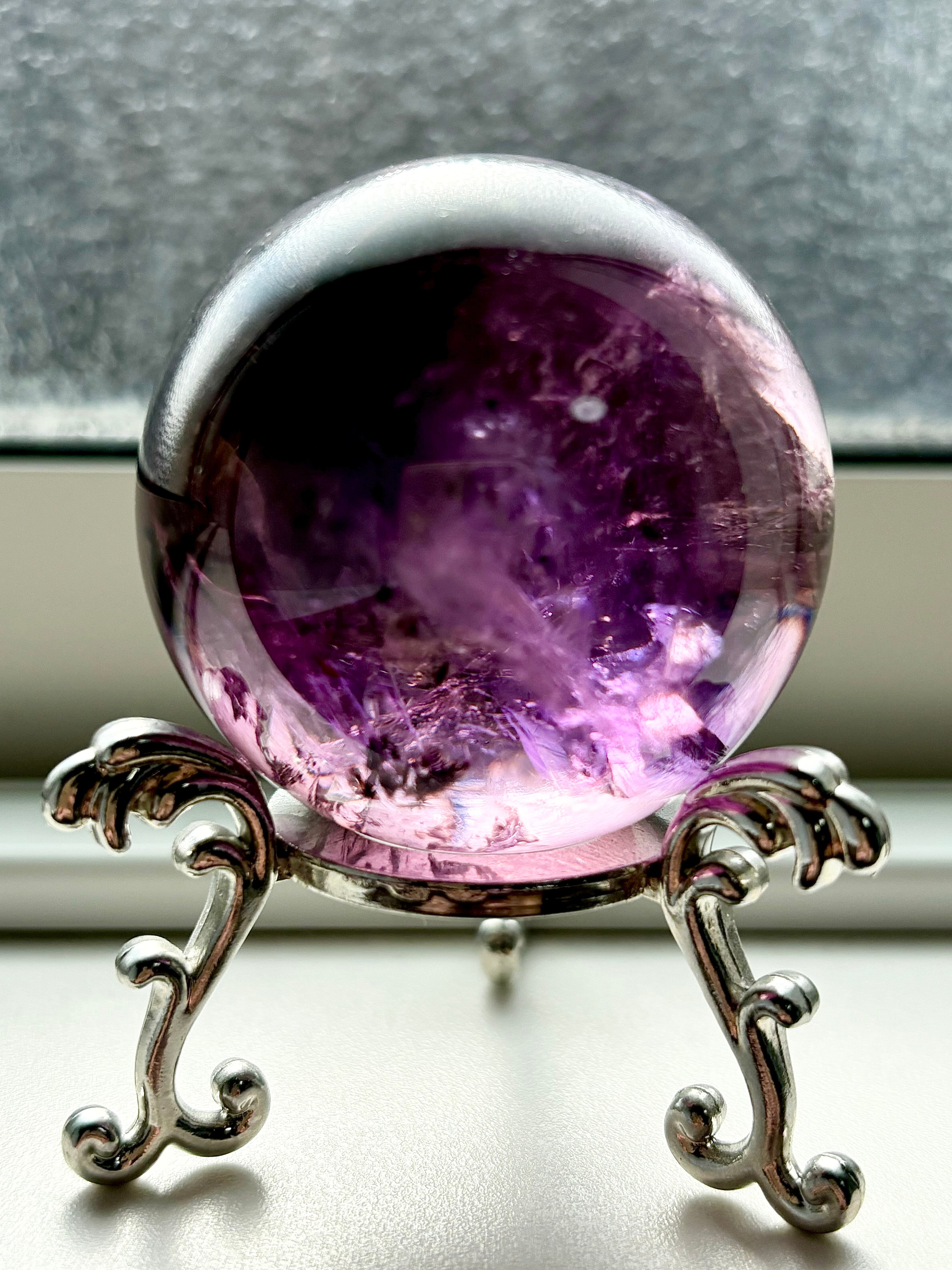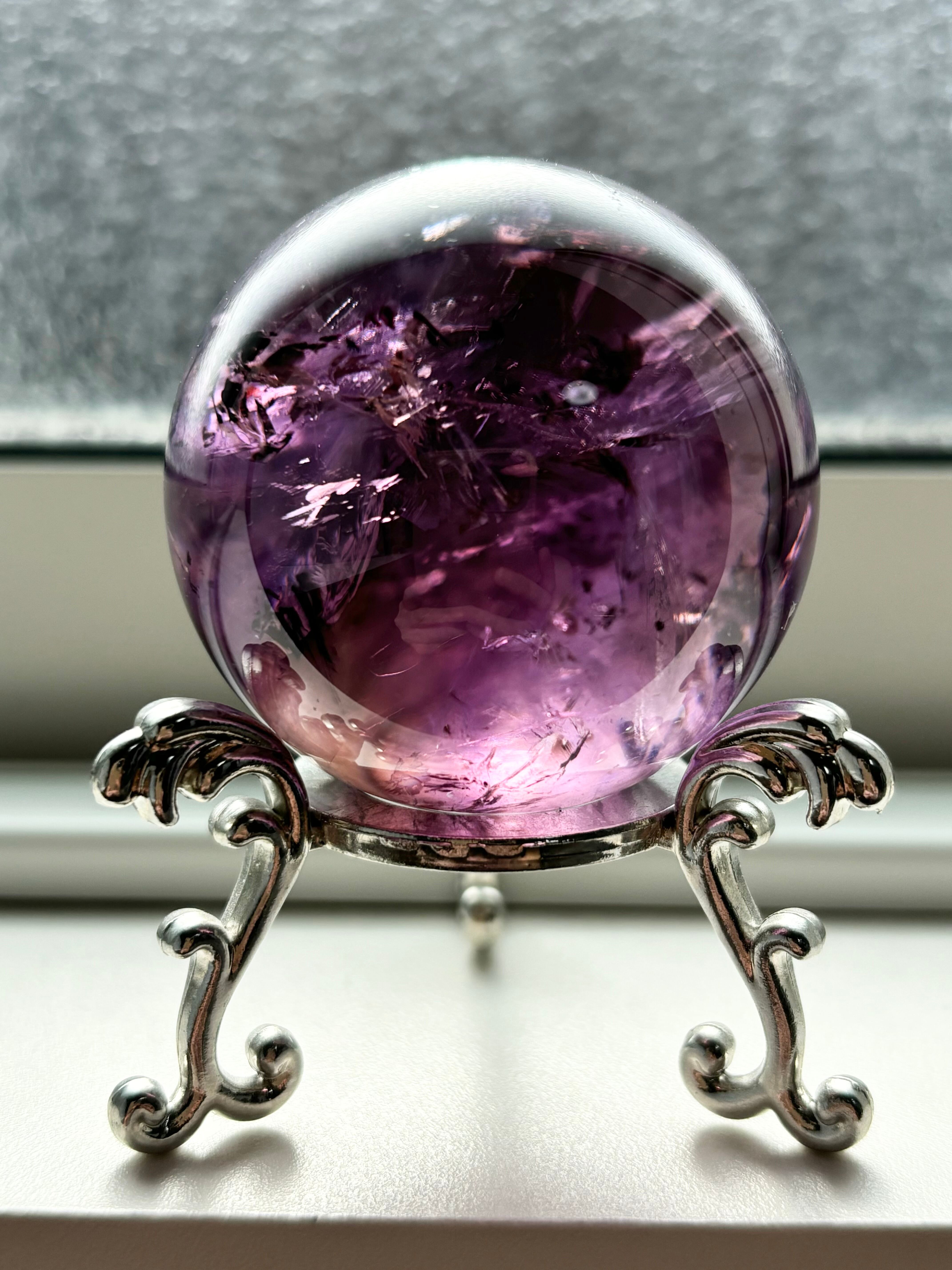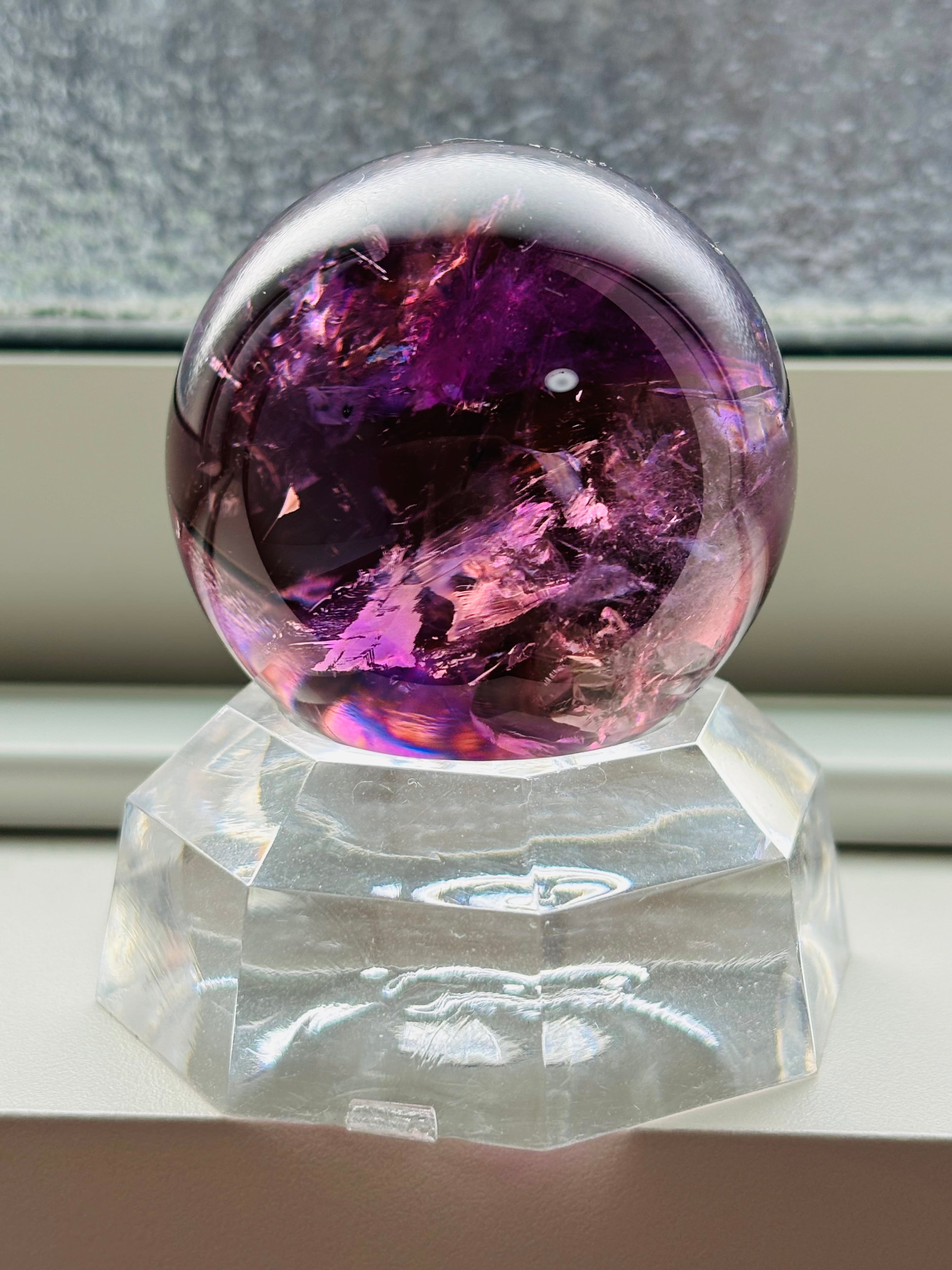 私自身アメジストが大好き人間のひとりですがここまで美しい透明度を持つアメジストスフィアに出会えたことを嬉しく思っています。