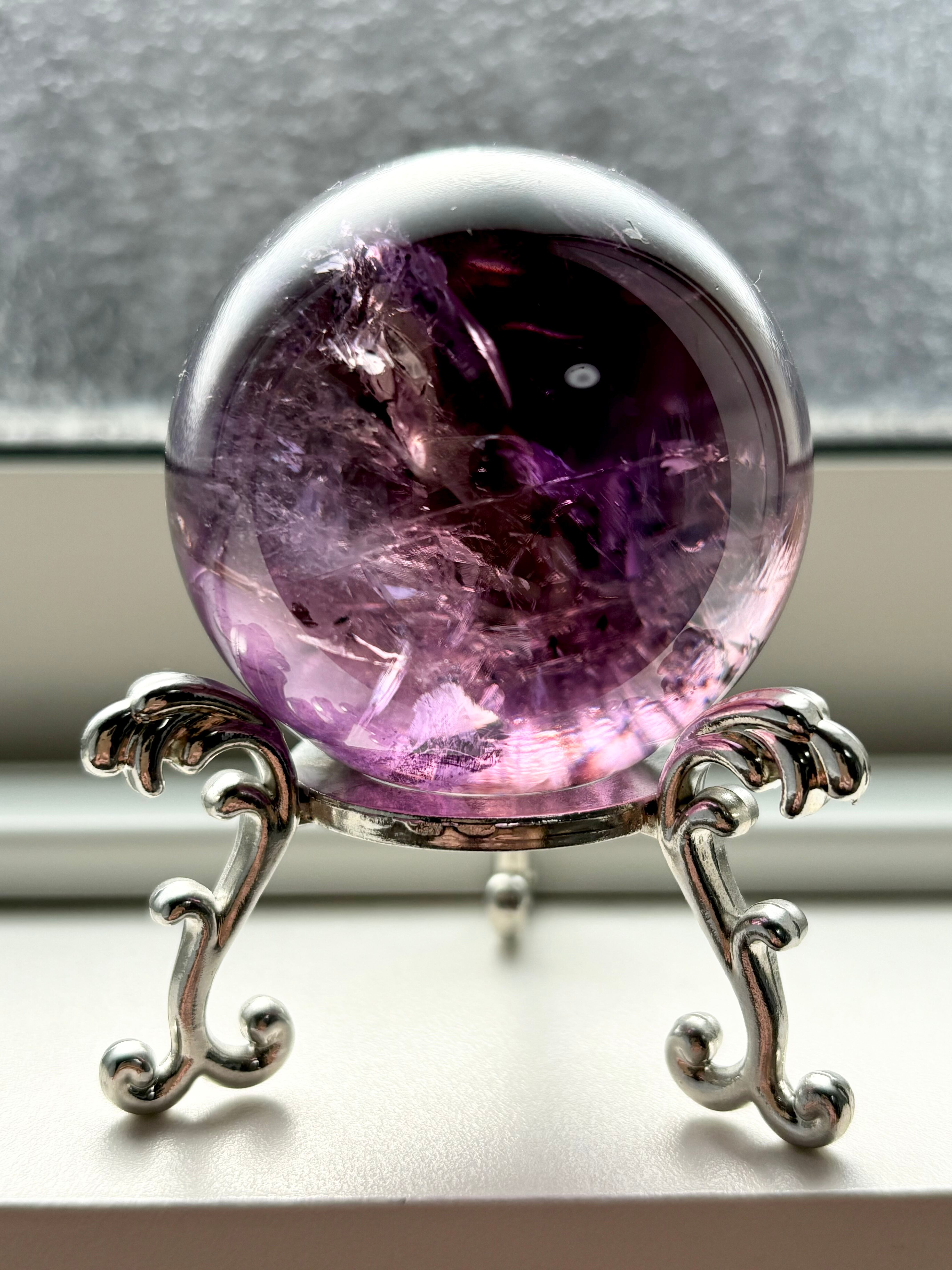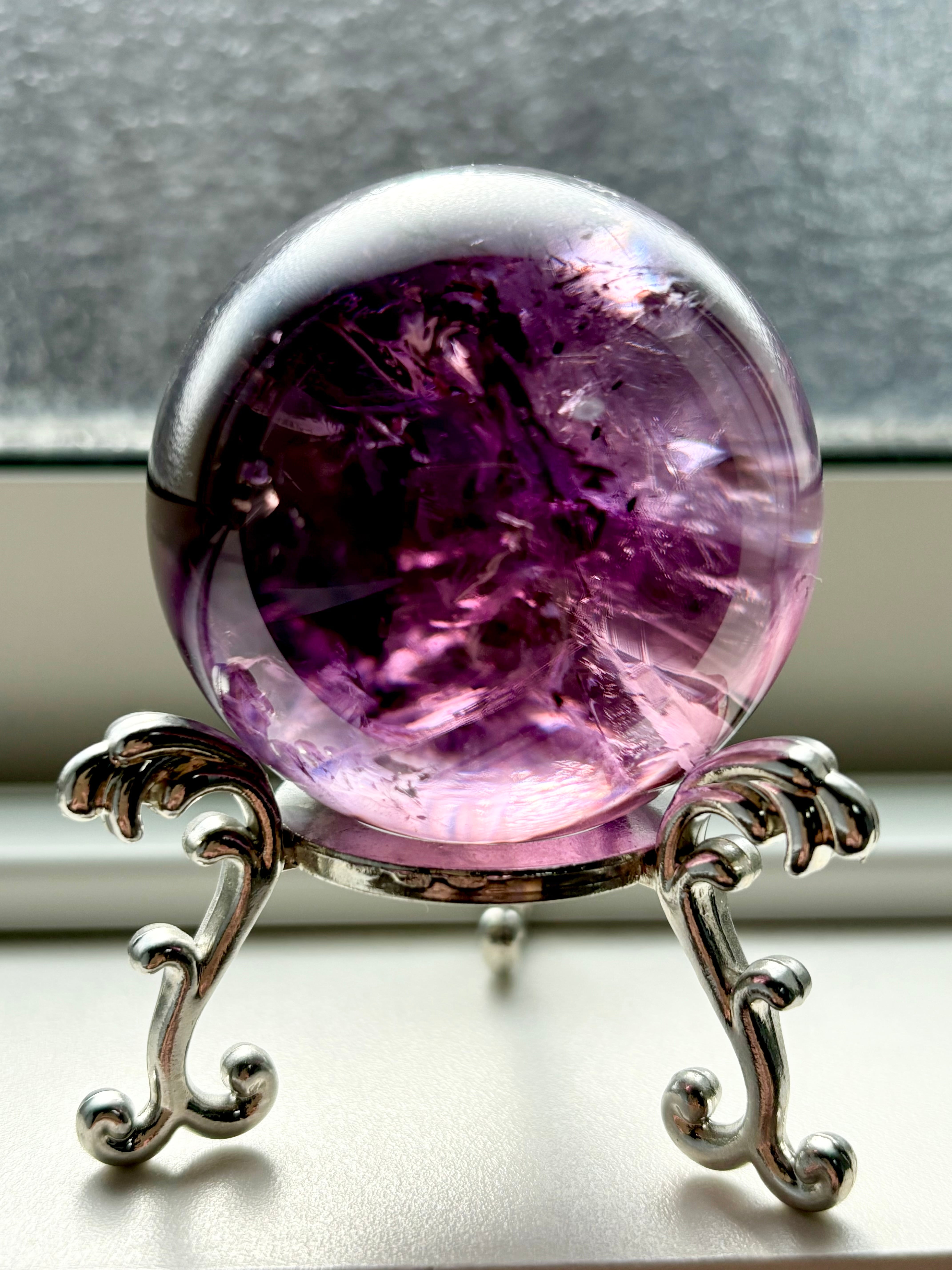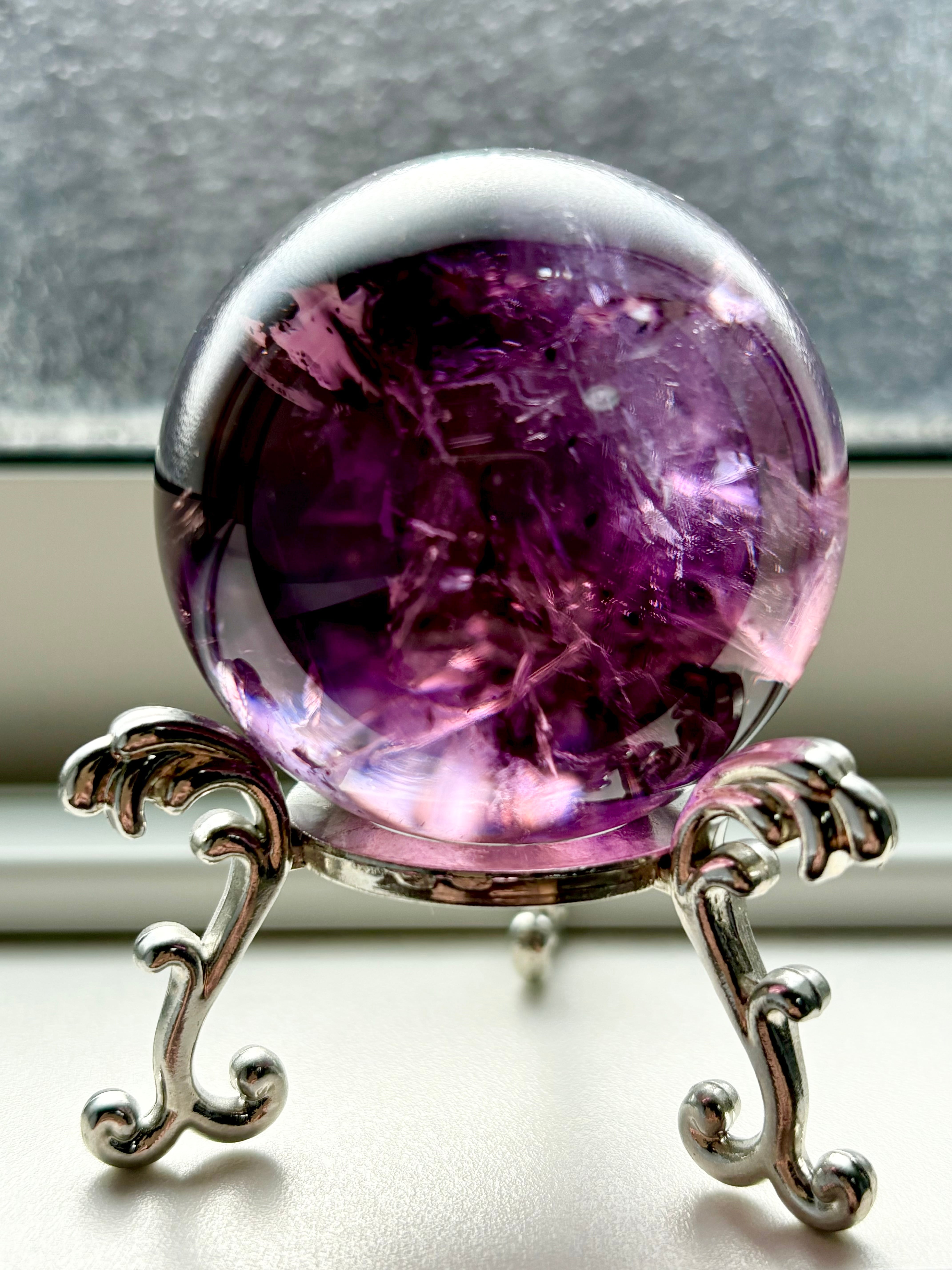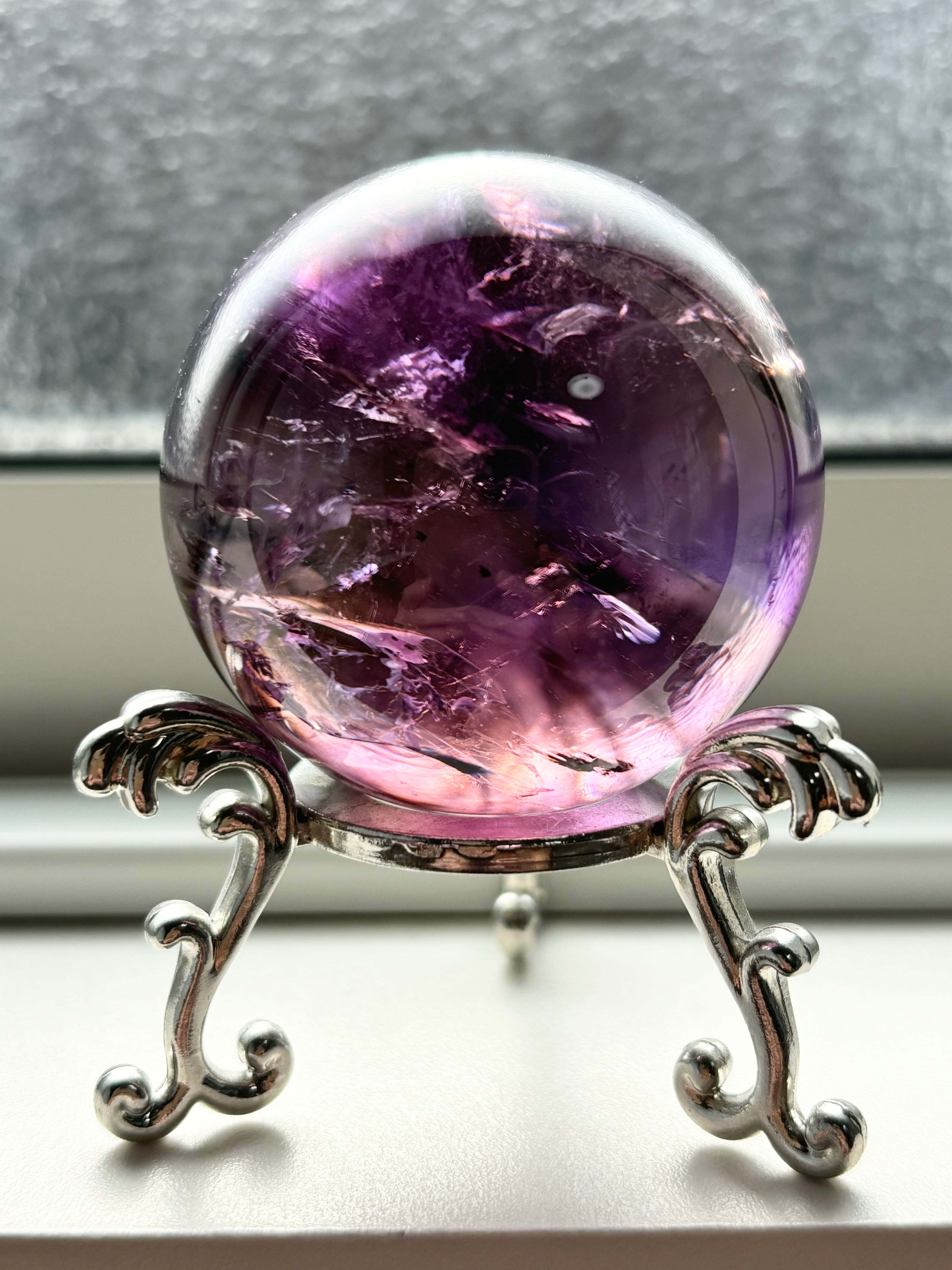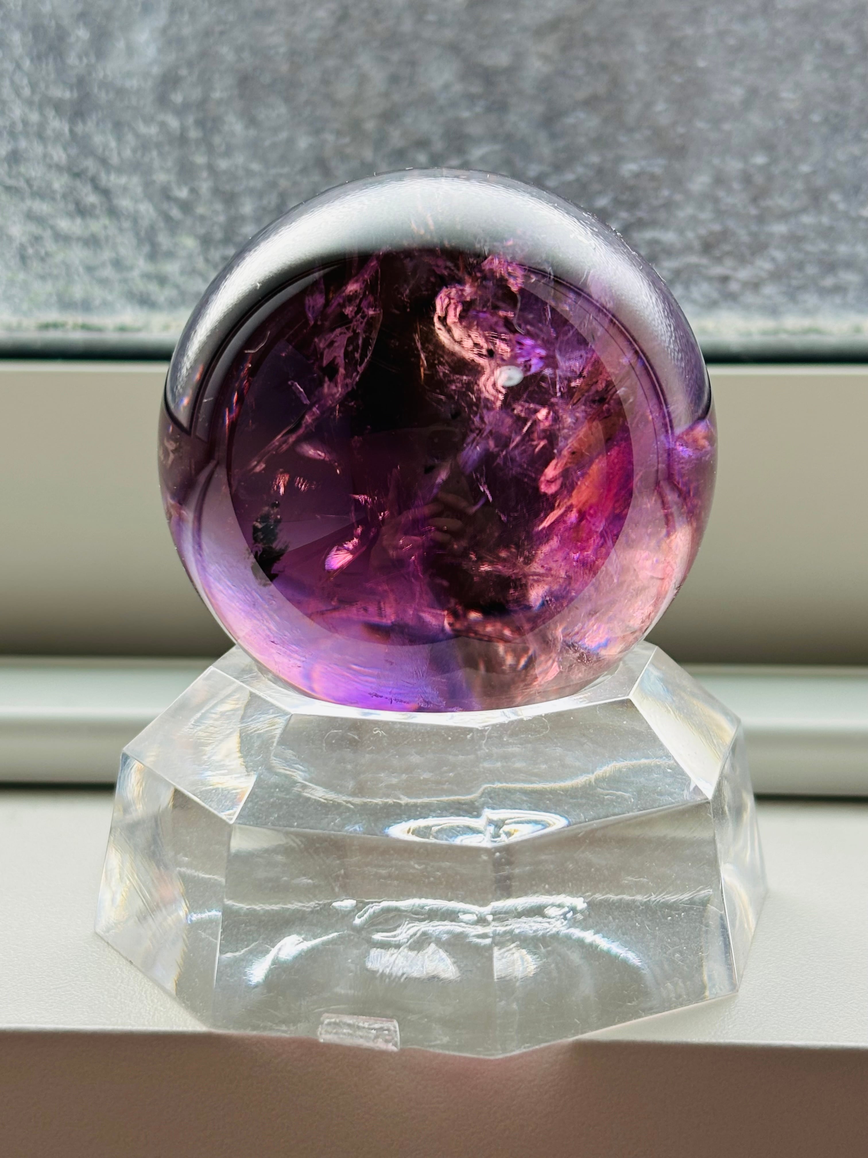 私自身アメジストが大好き人間のひとりですがここまで美しい透明度を持つアメジストスフィアに出会えたことを嬉しく思っています。