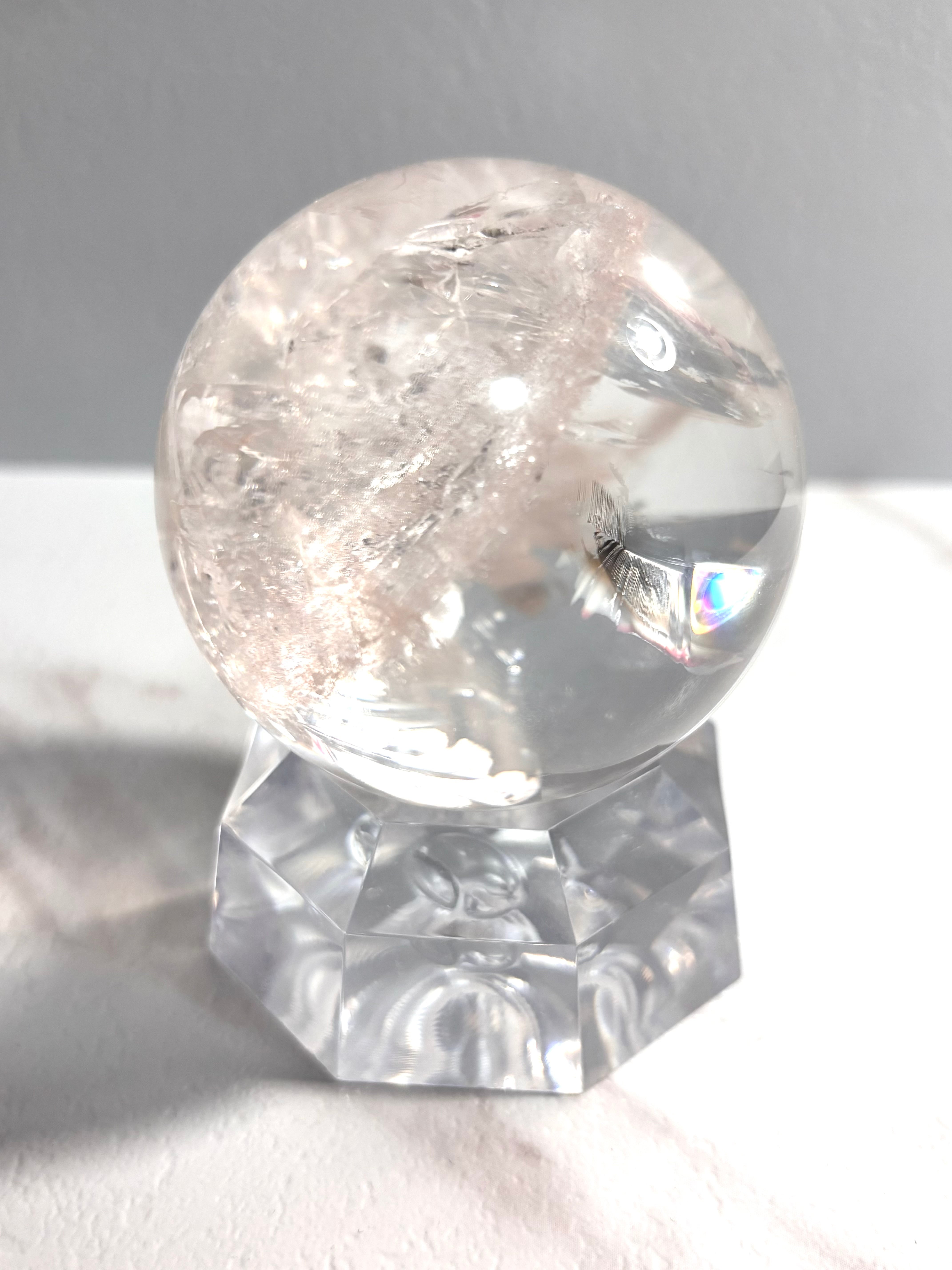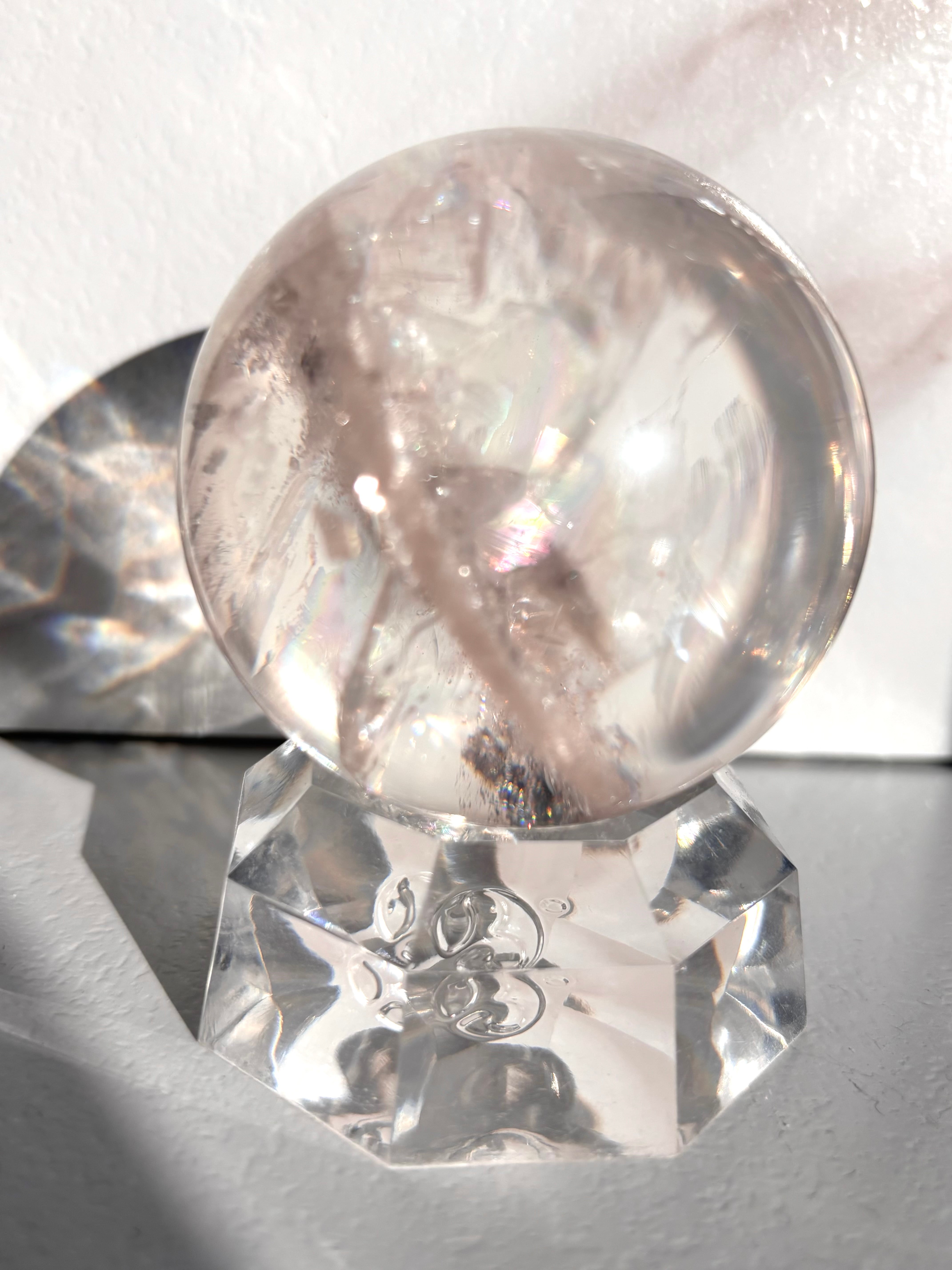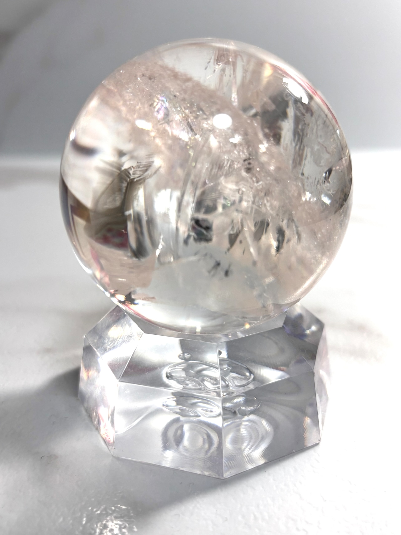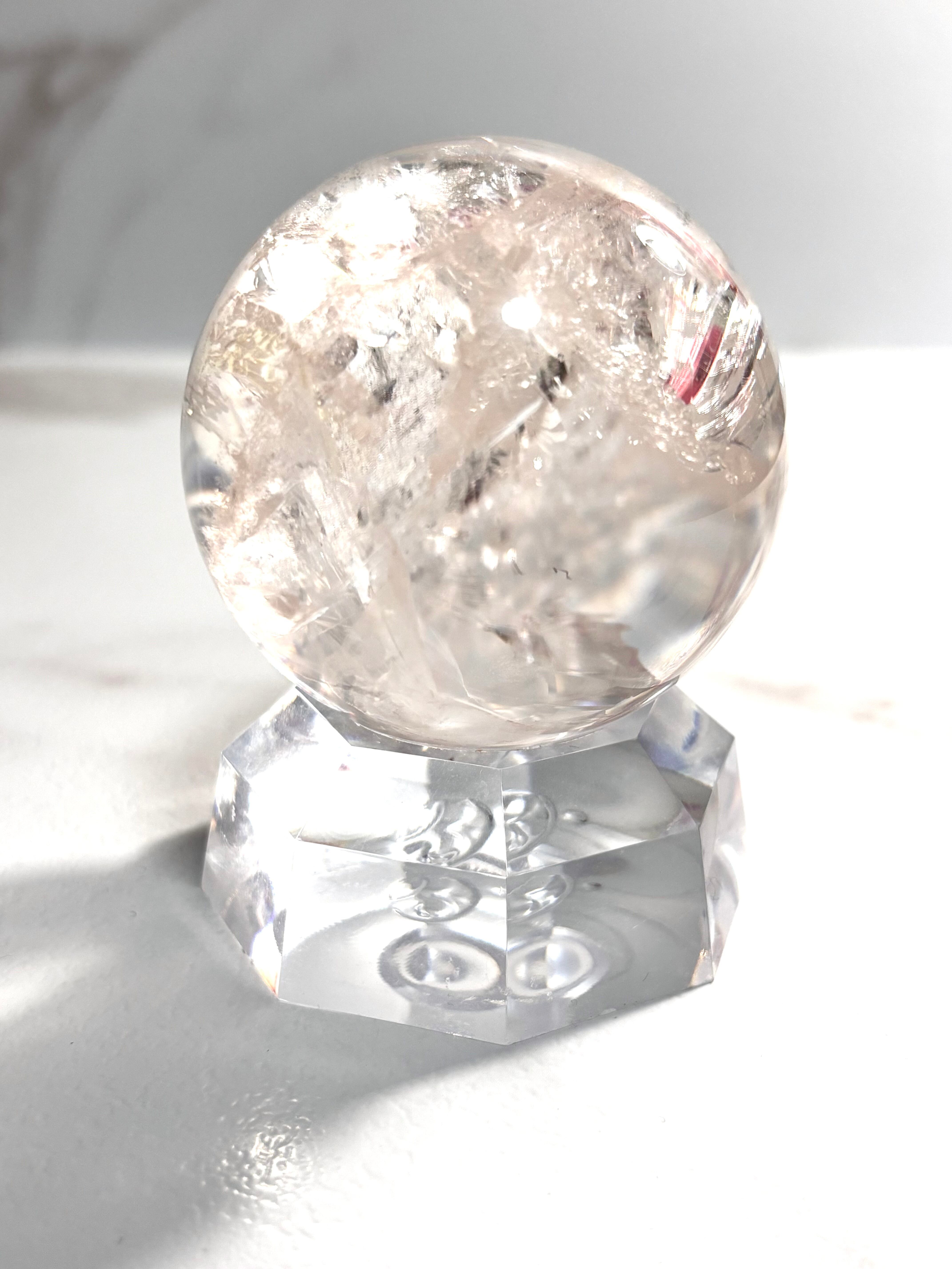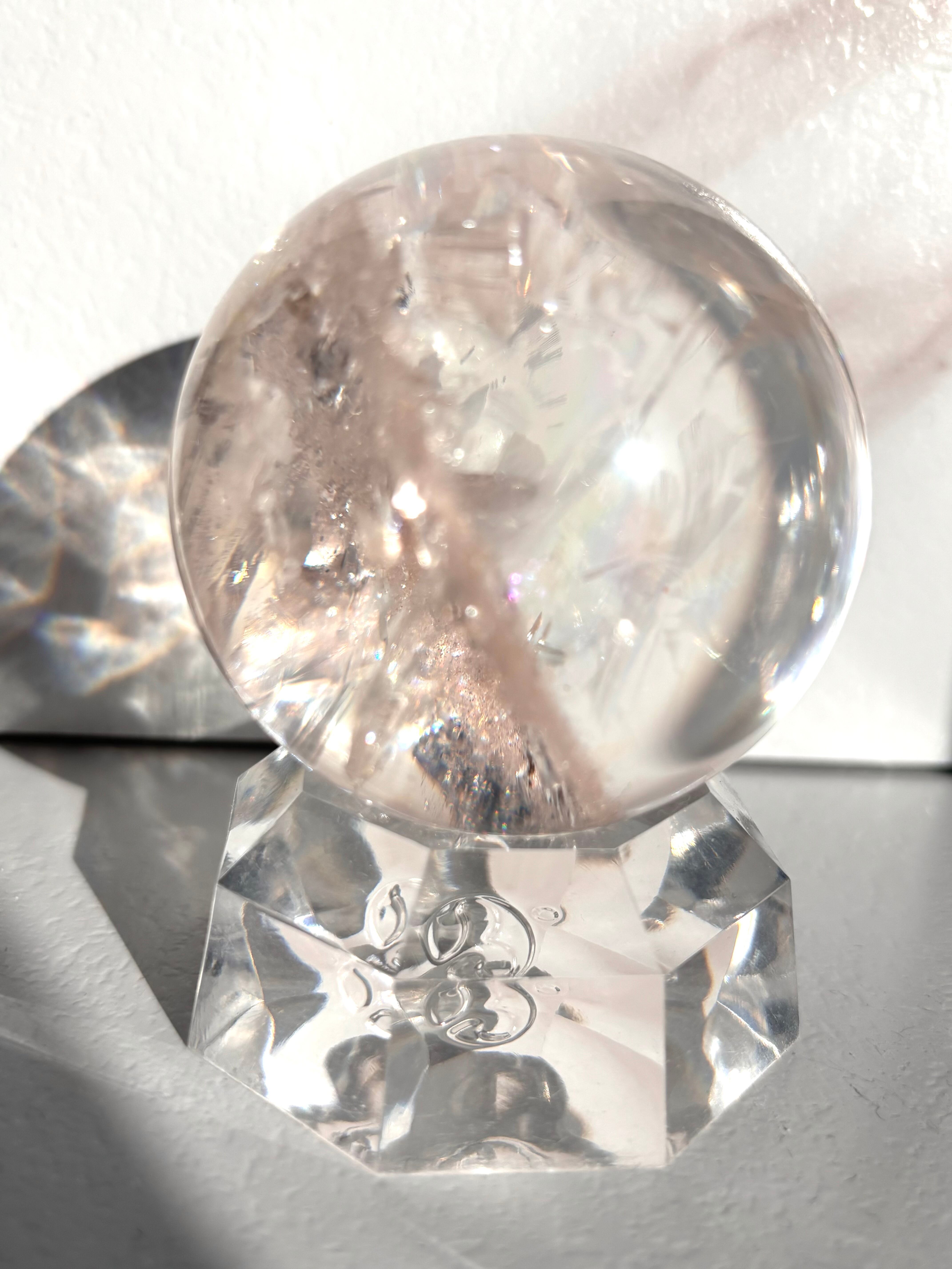 極上品質のレインボーピンククォーツ(アゼツライト)スフィア になります。