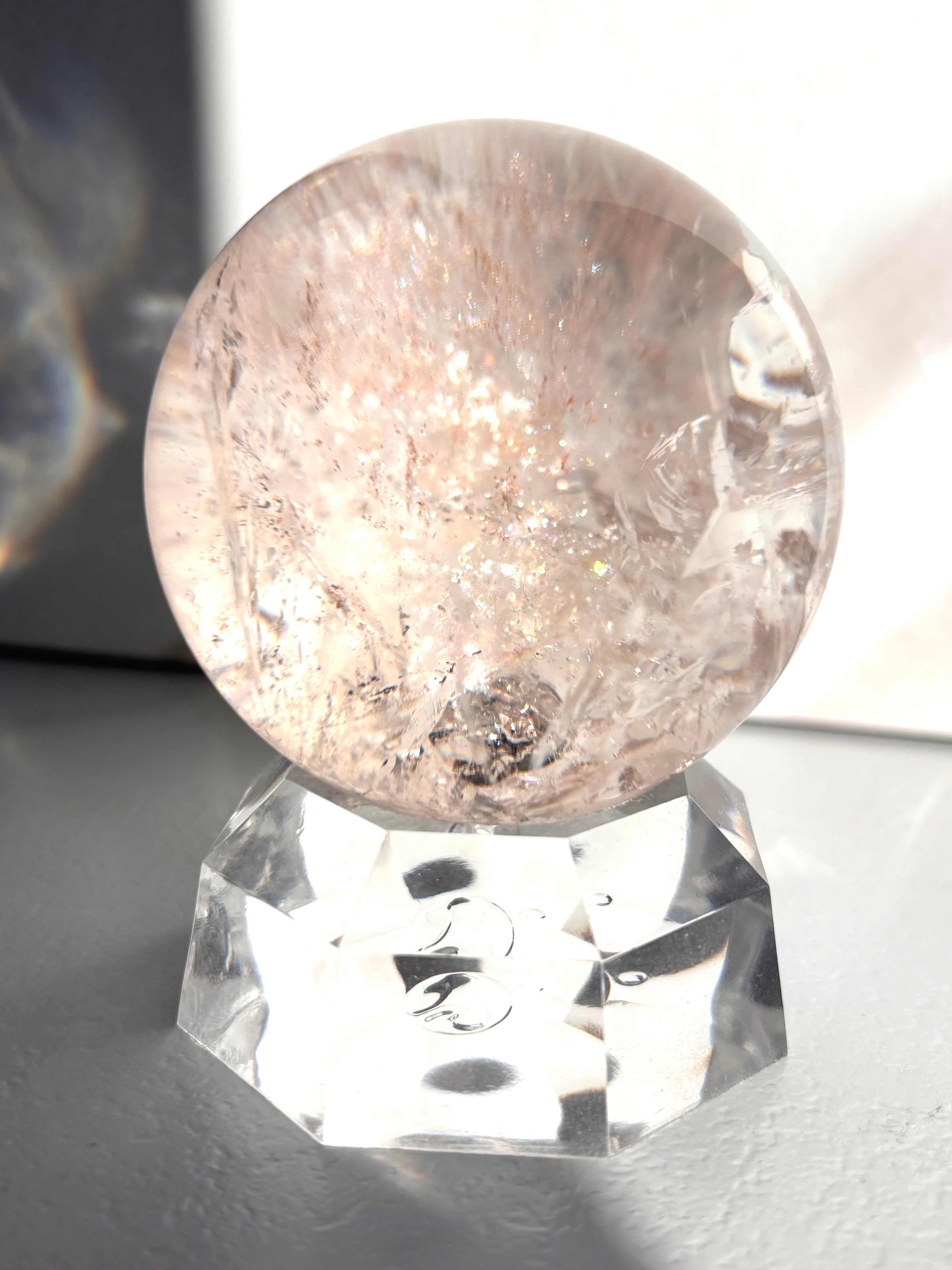 極上品質のレインボーピンククォーツ アゼツライトスフィア58㎜になります。