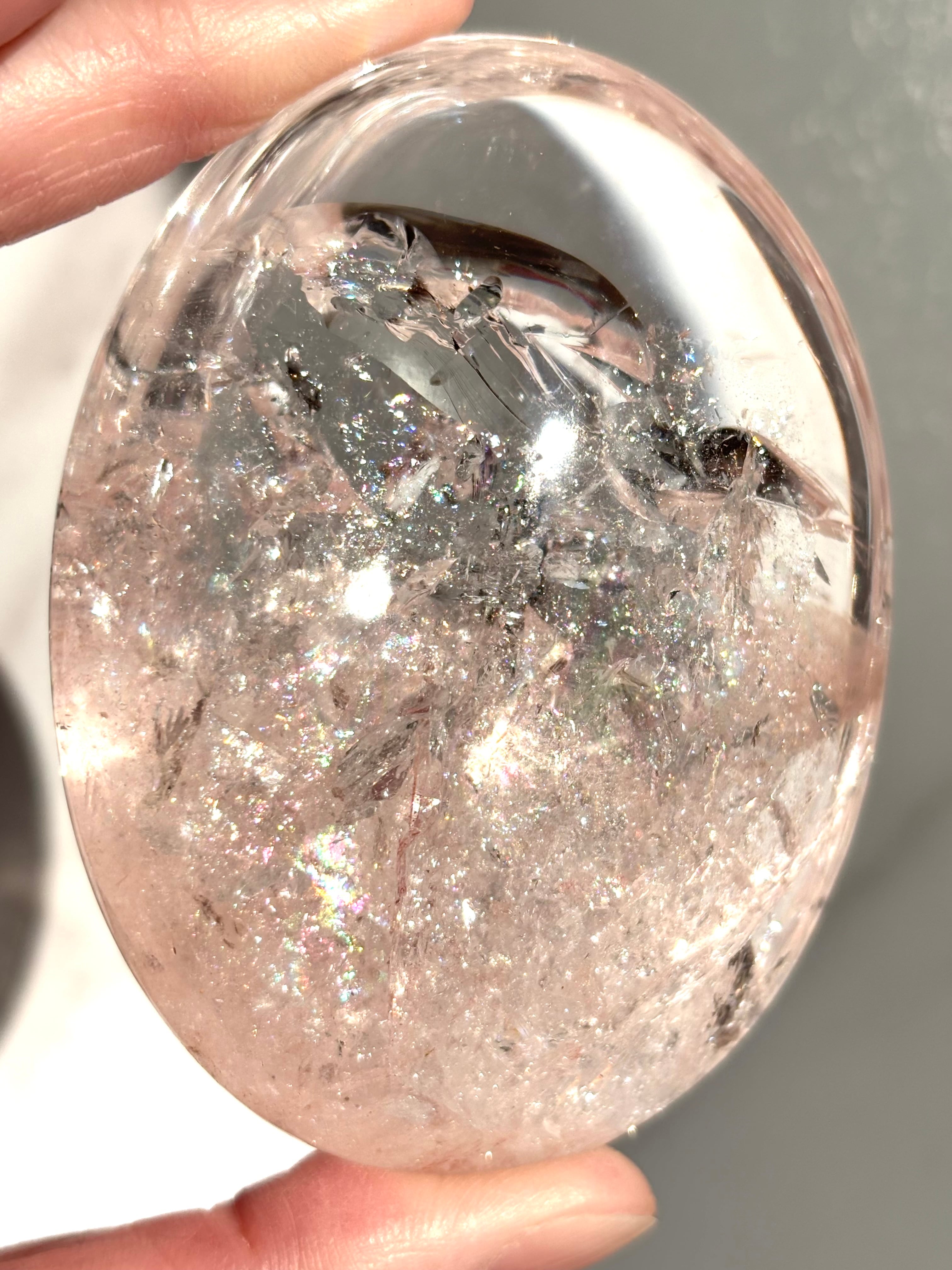 キャンディのようなら可愛らしいピンクカラーにはうっすら虹が浮かび上がりまた水のようにクリア品質。