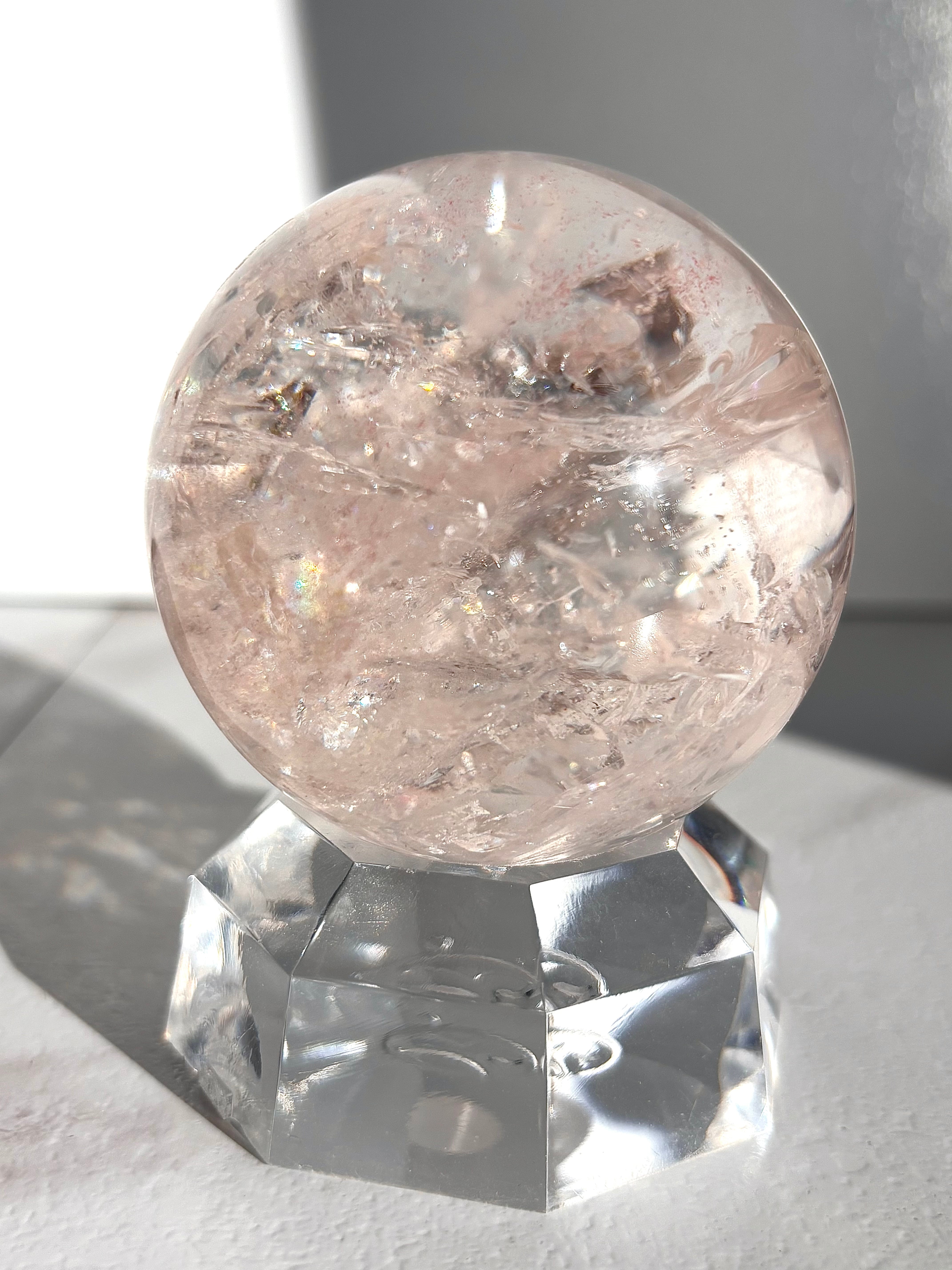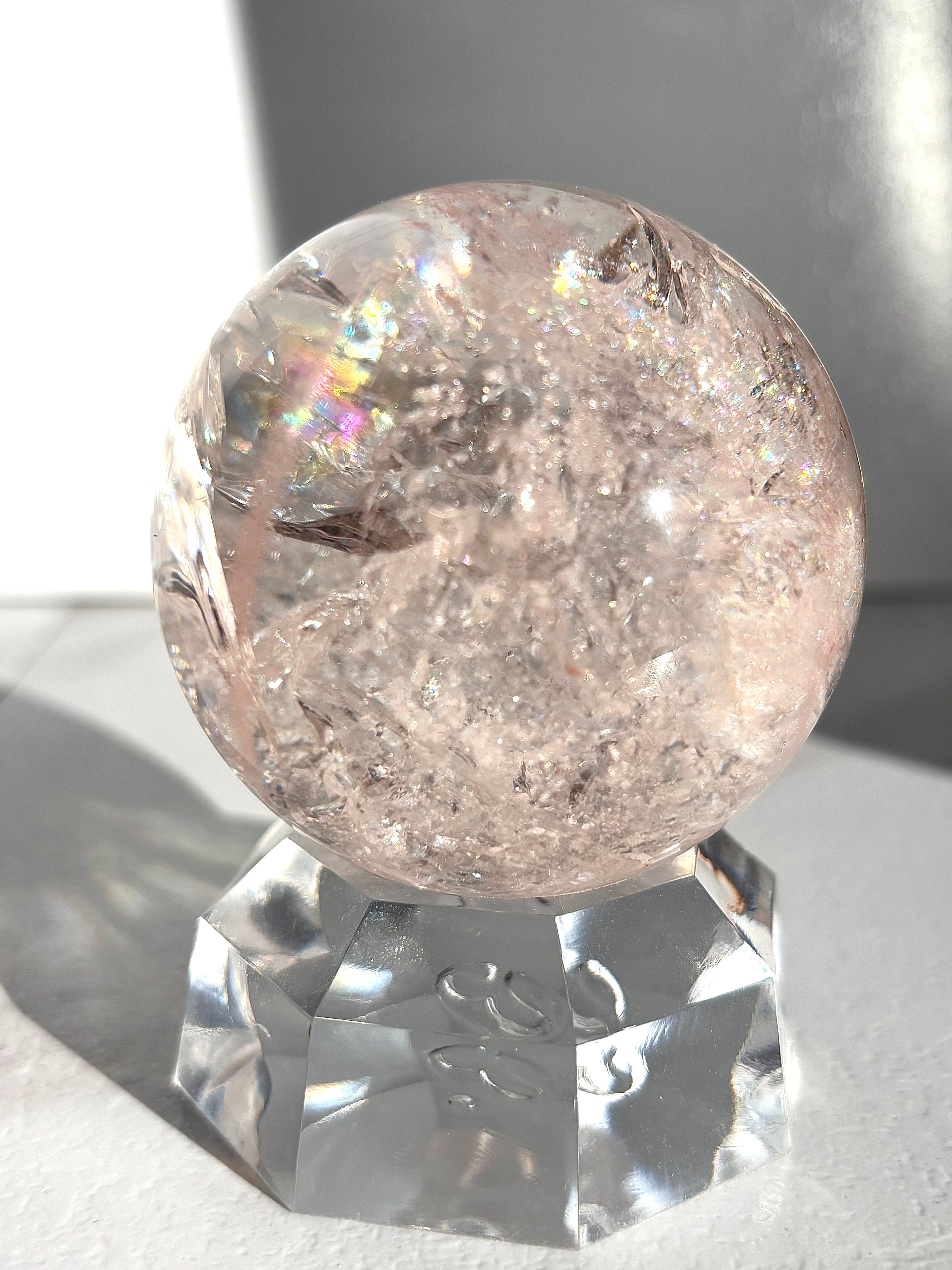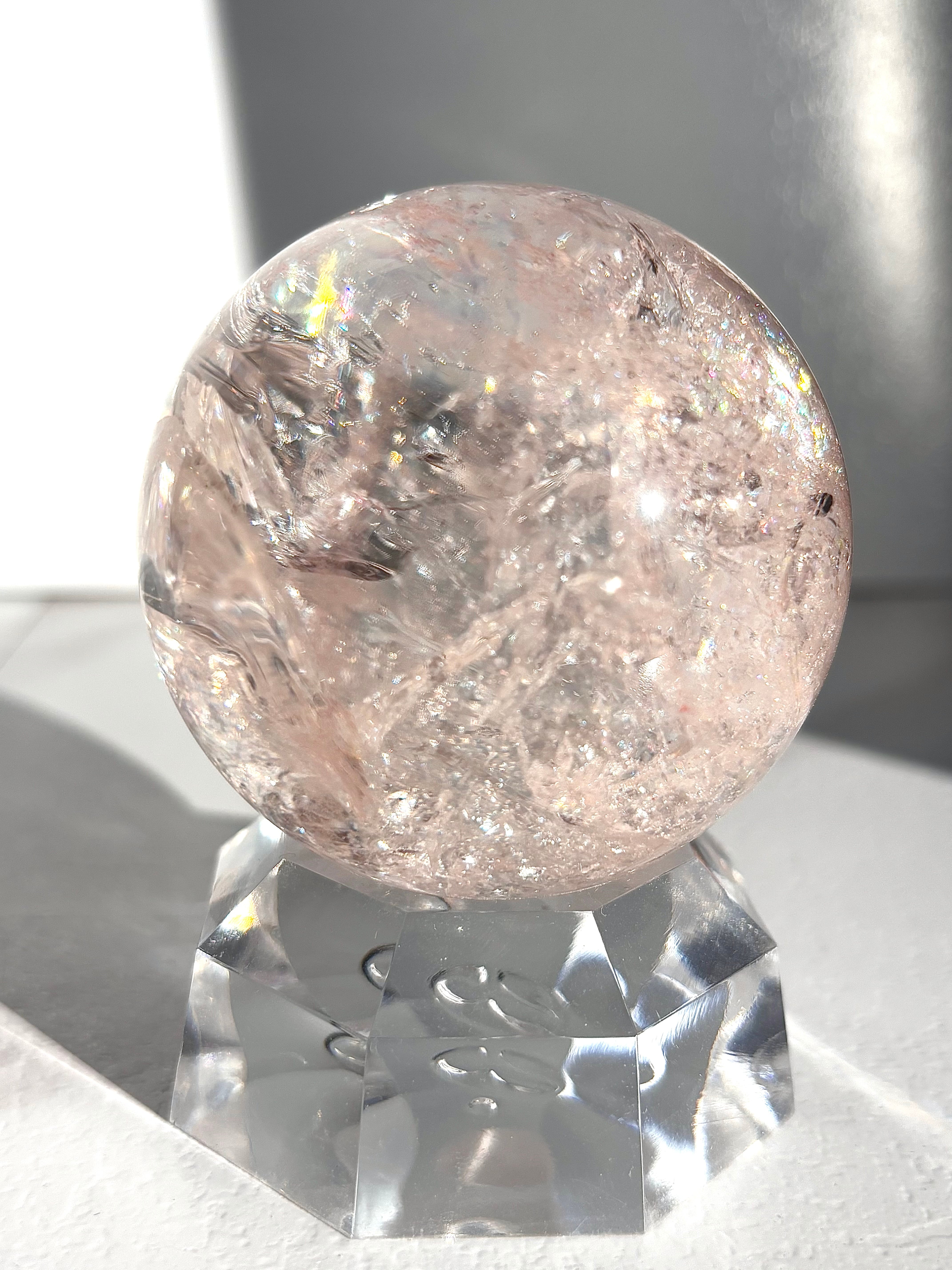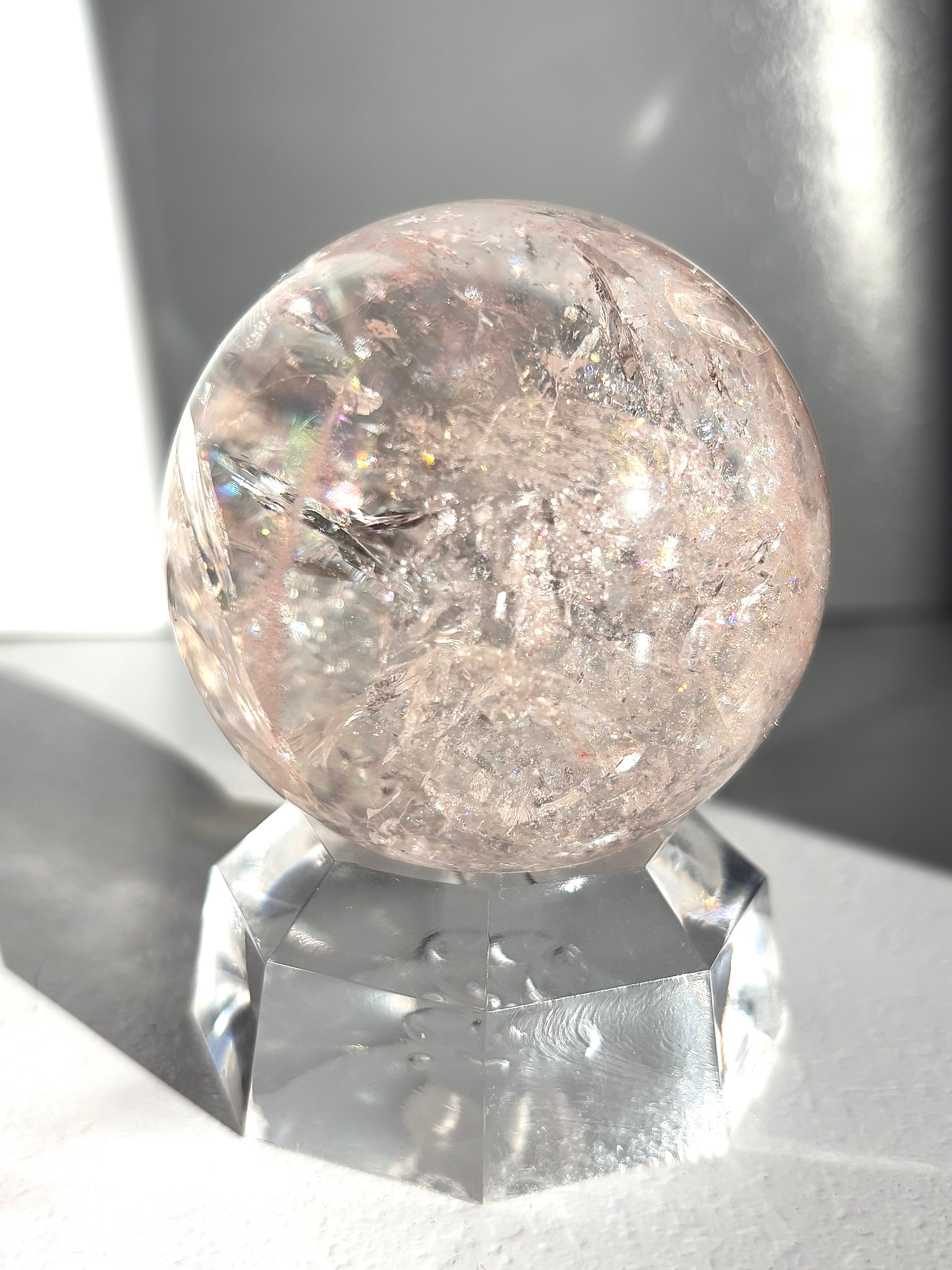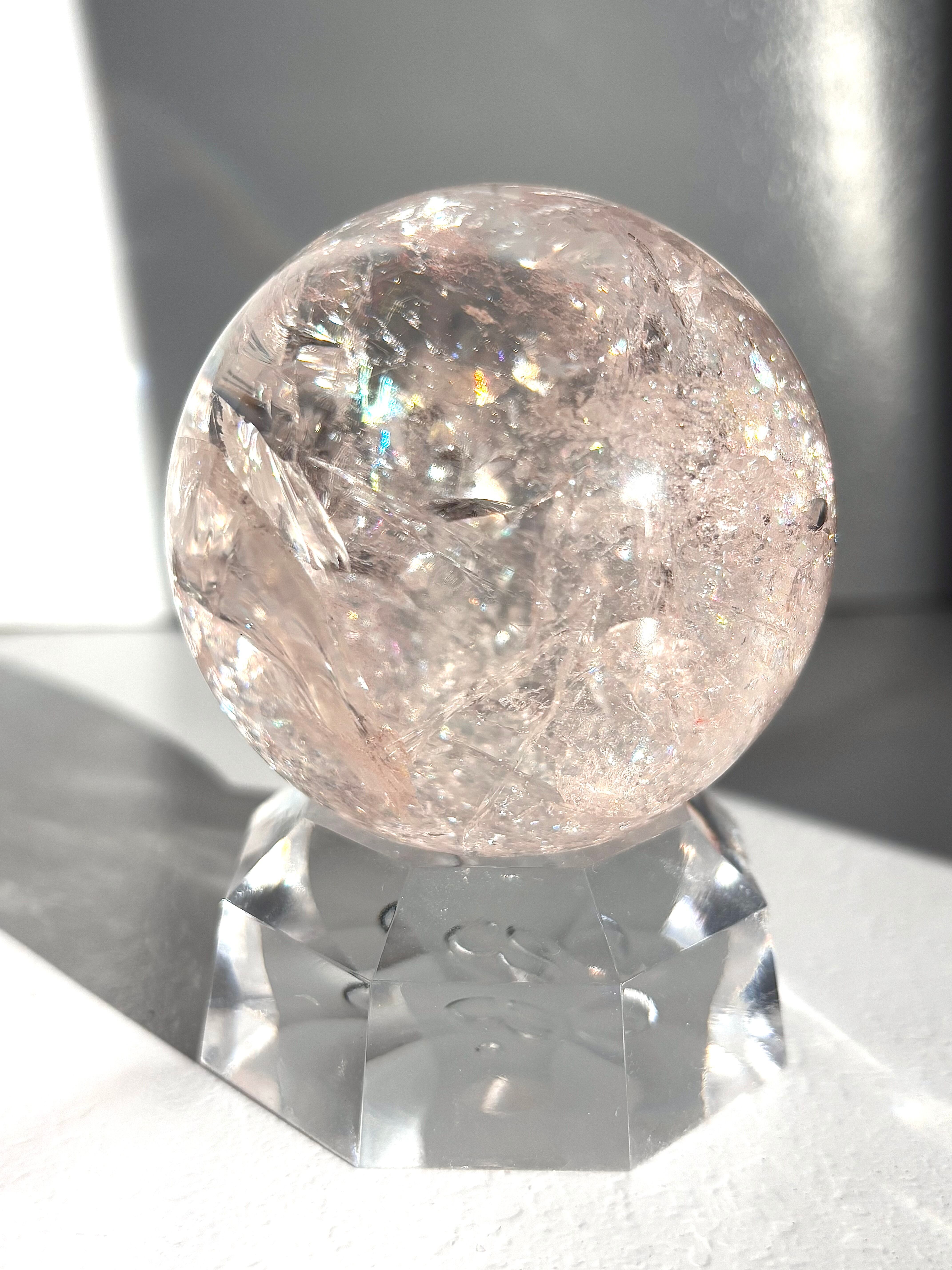 極上品質のレインボーピンククォーツ アゼツライトスフィア59㎜になります。