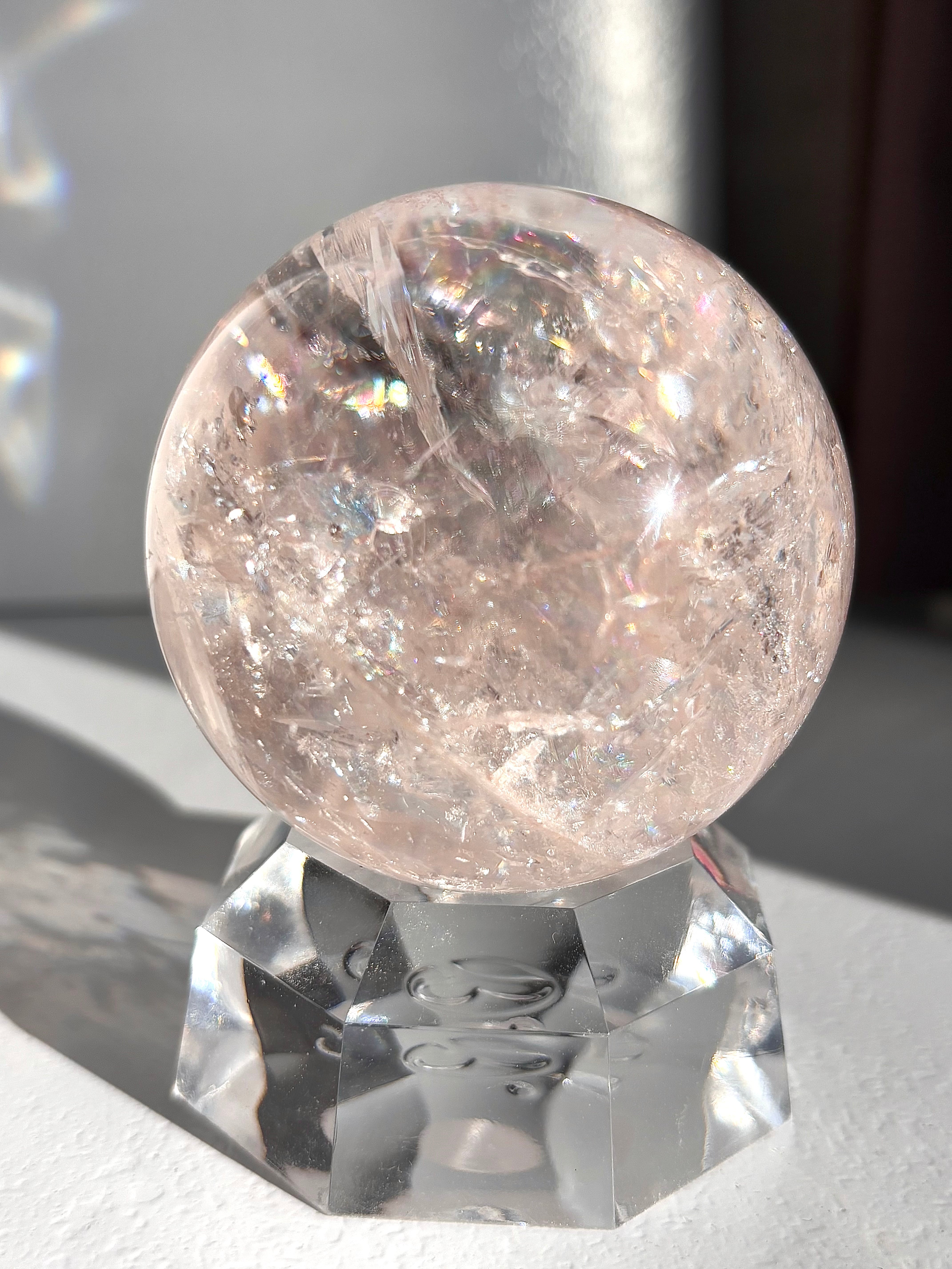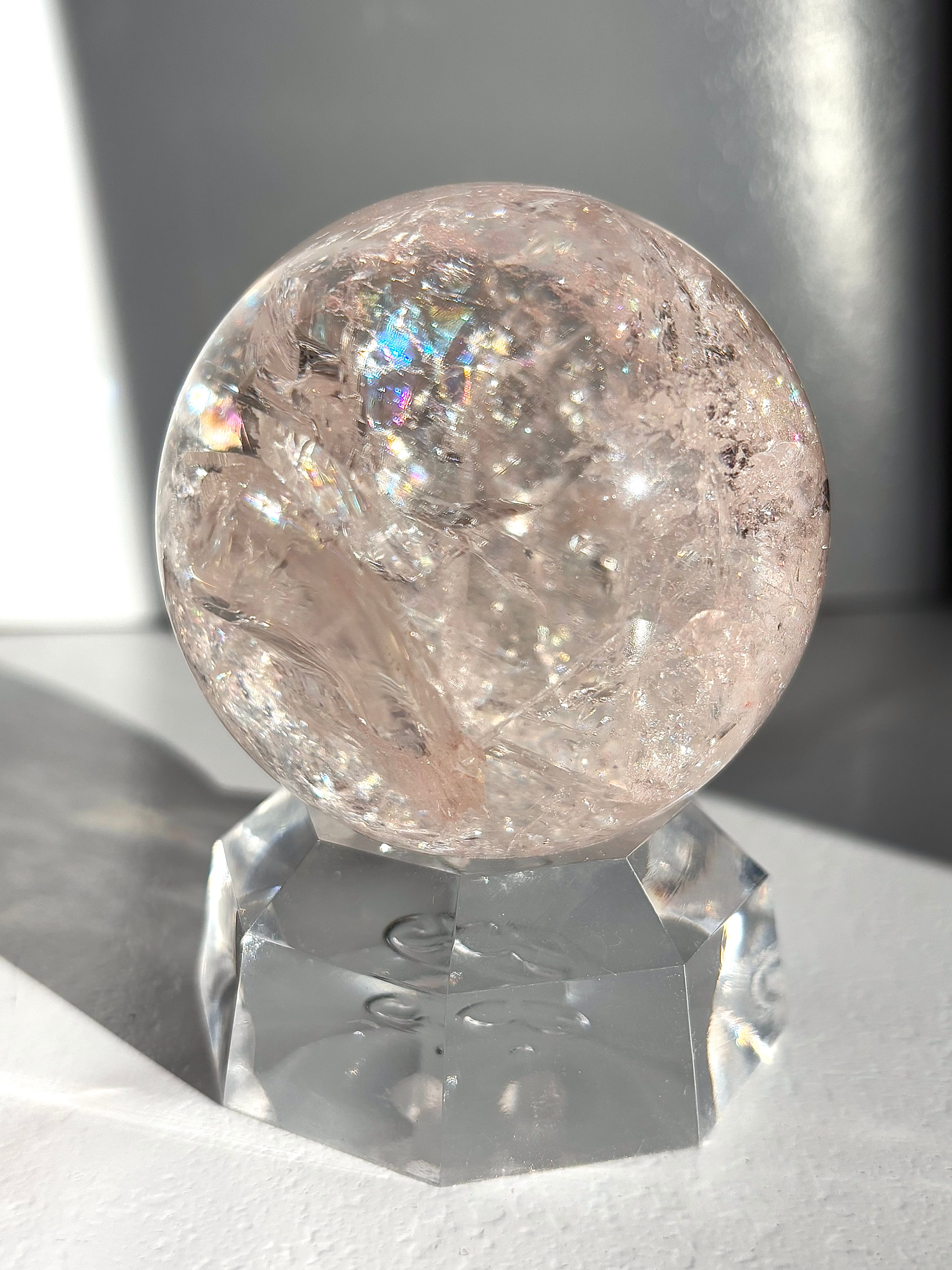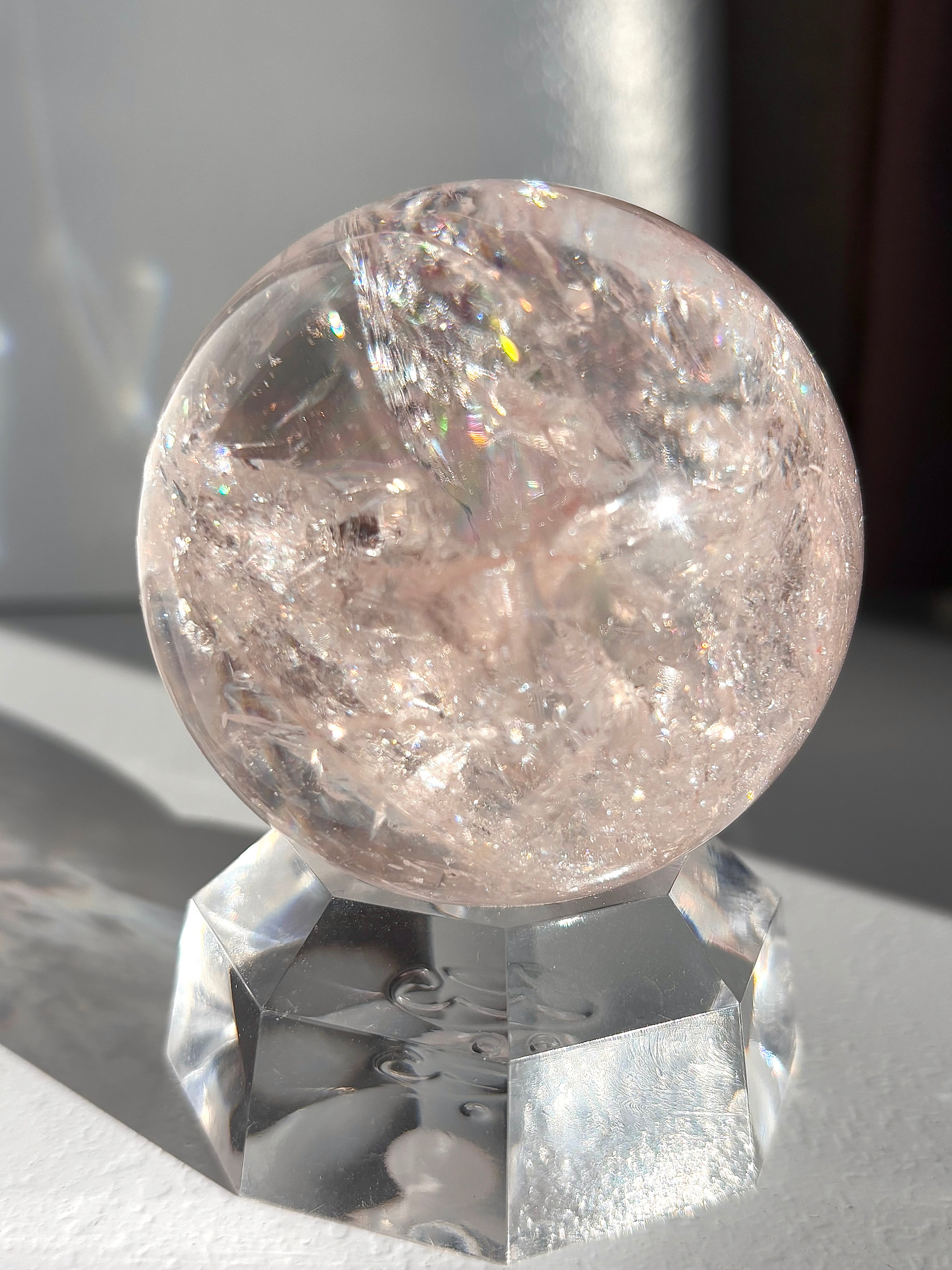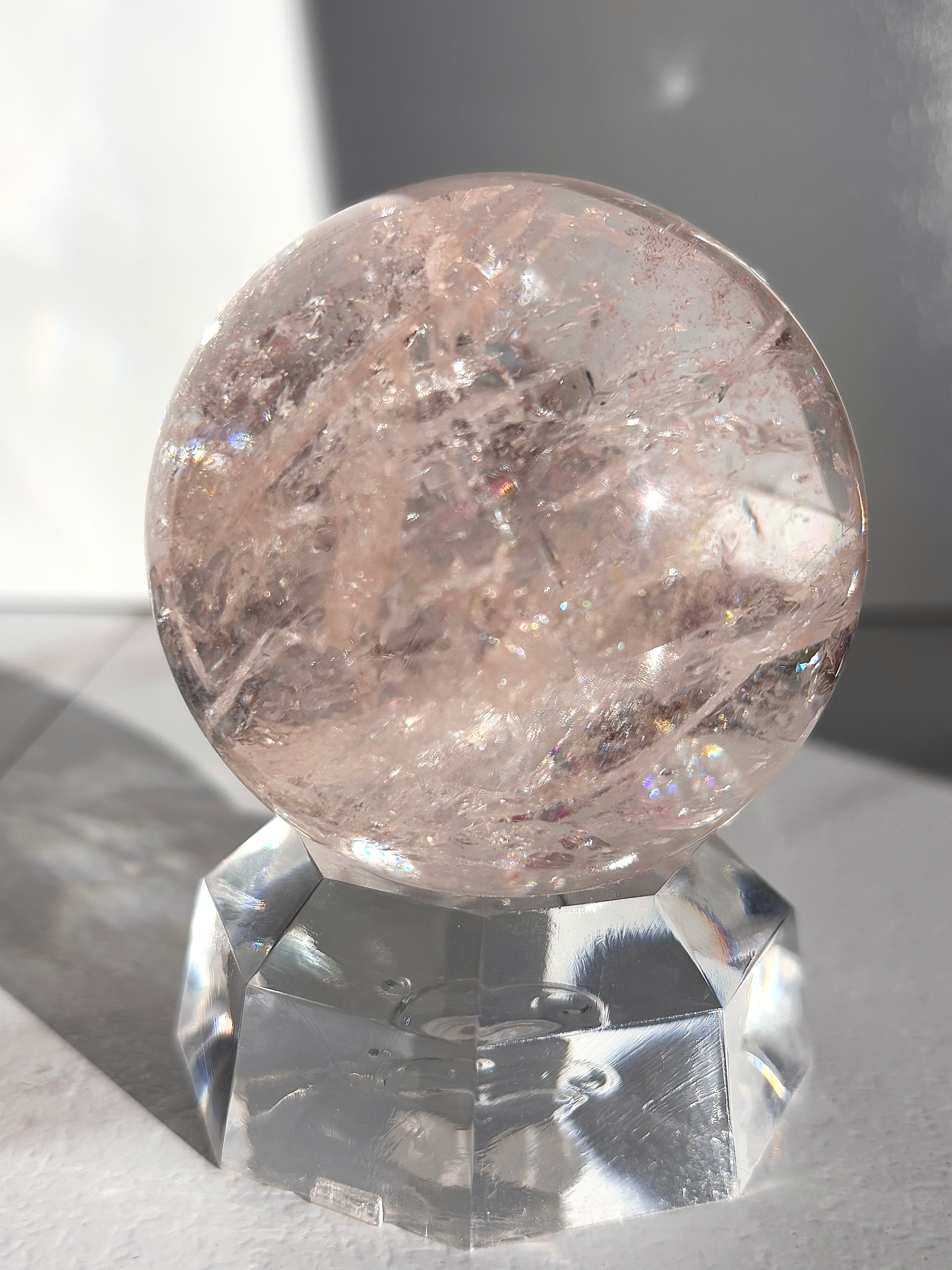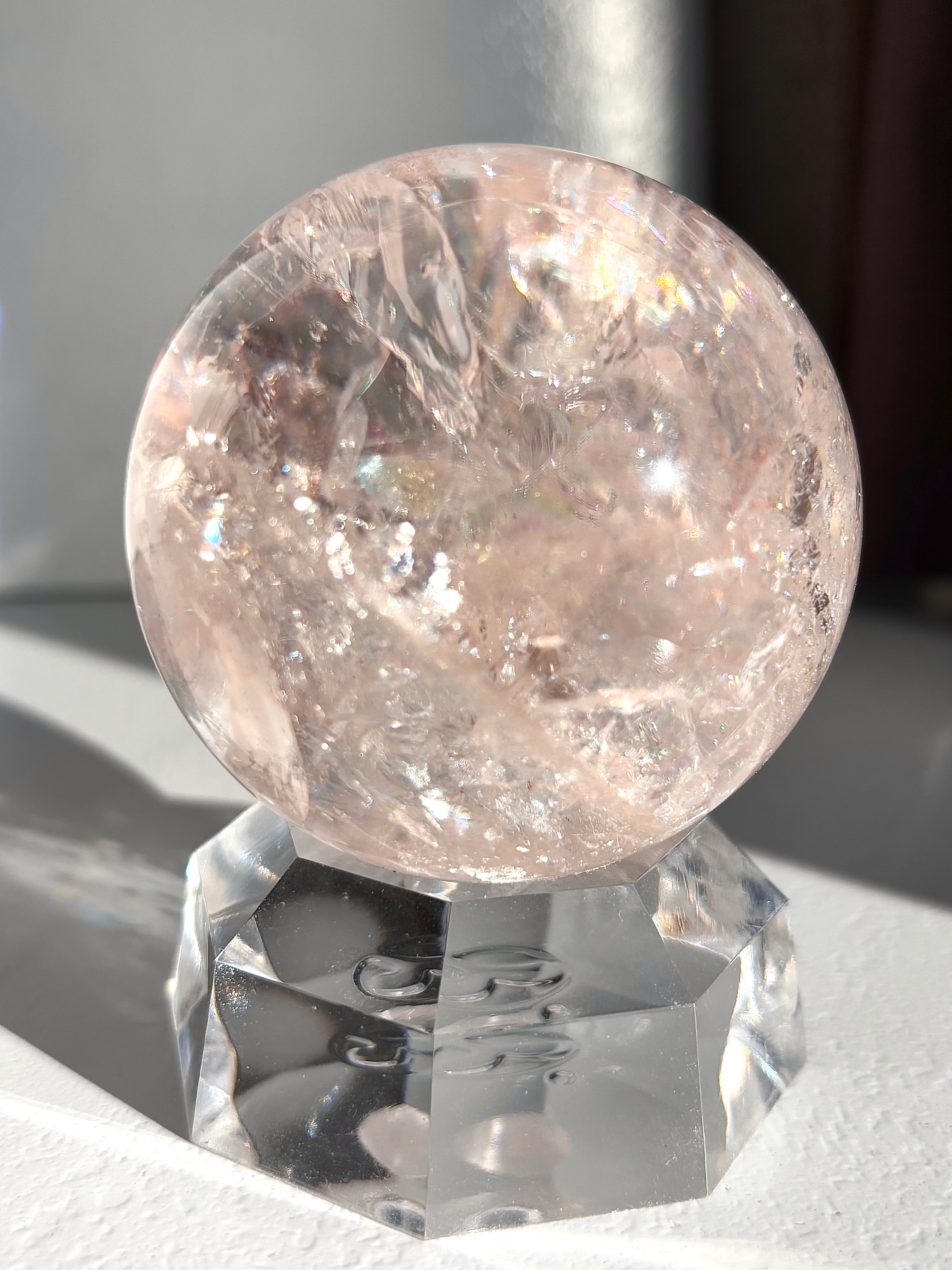 極上品質のレインボーピンククォーツ アゼツライトスフィア59㎜になります。