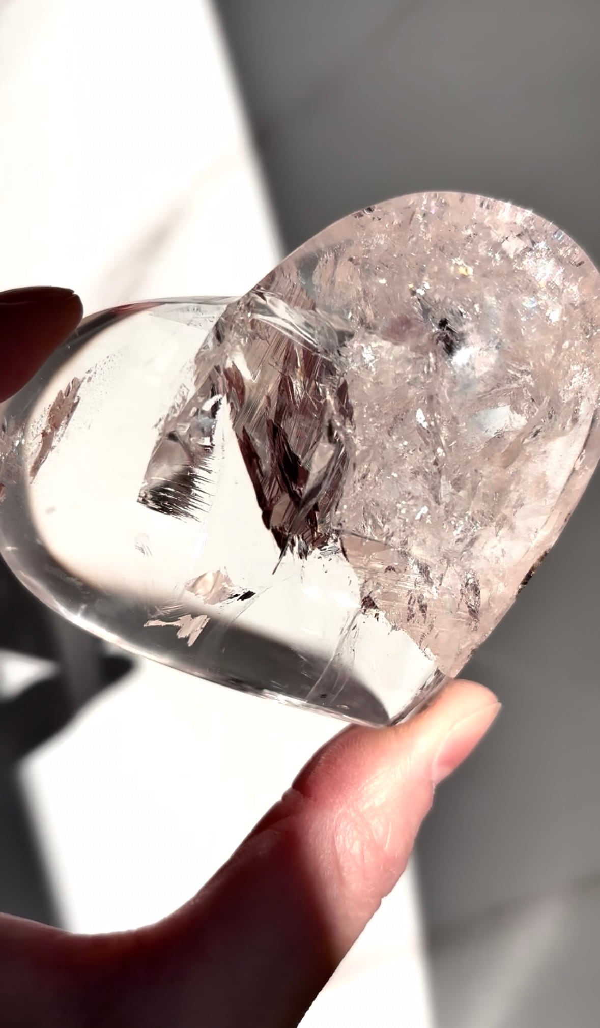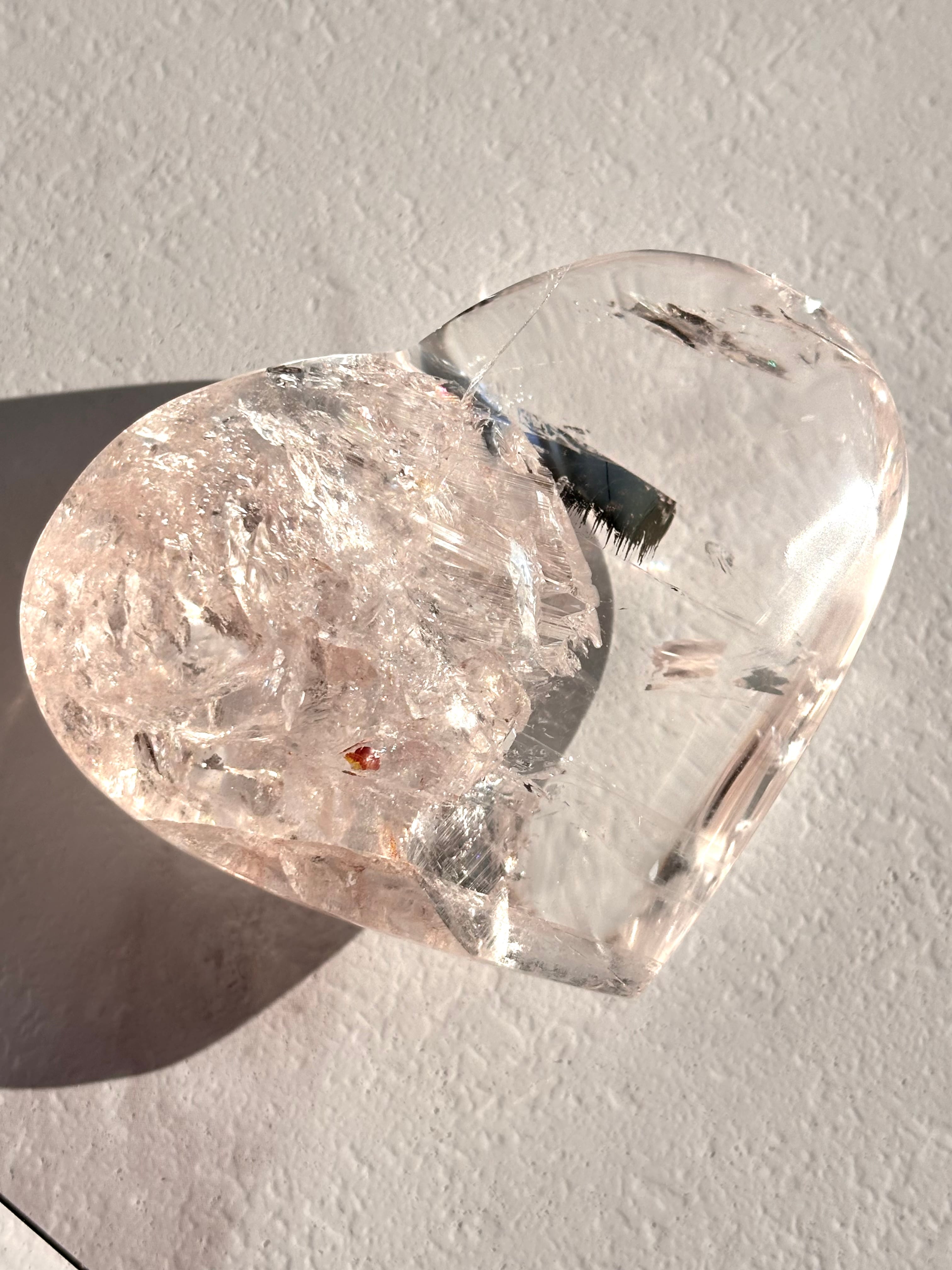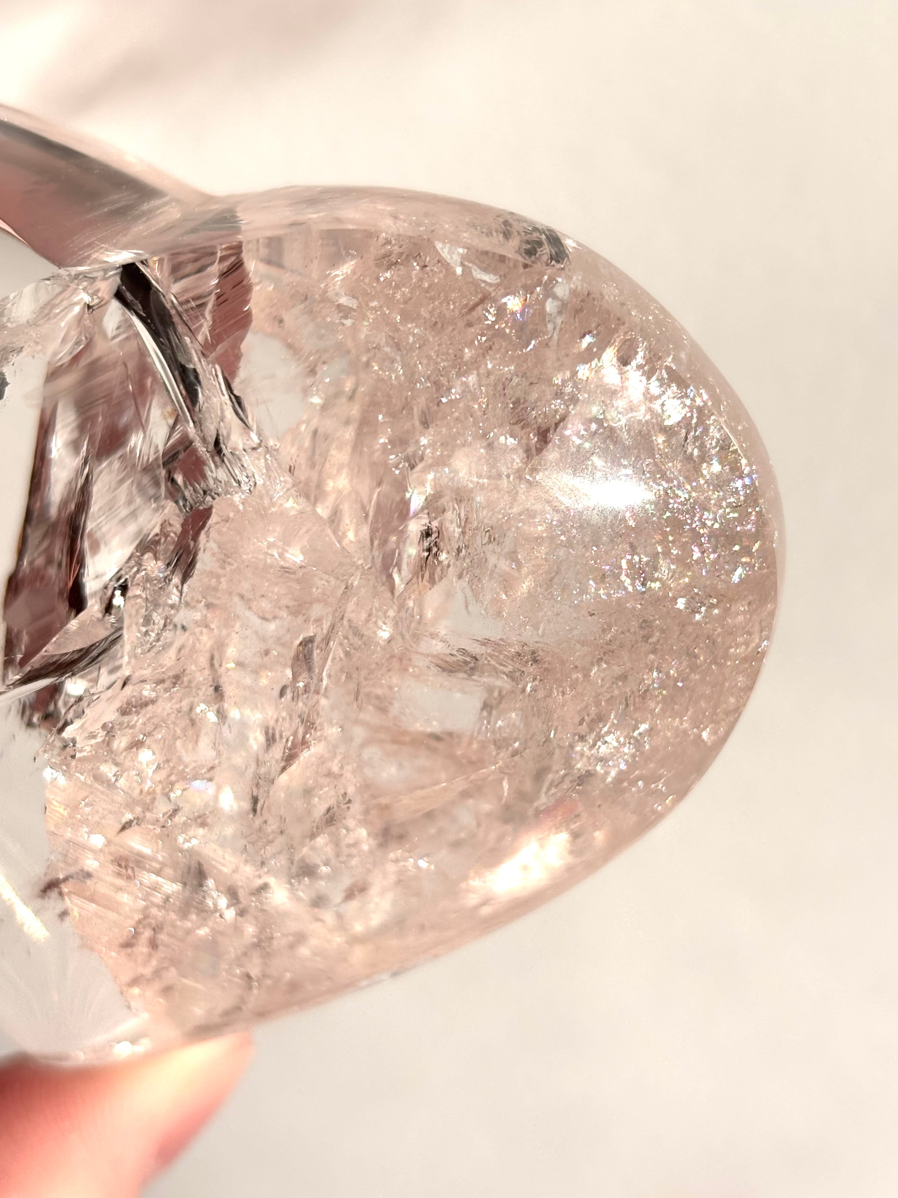 キャンディのようなら可愛らしいピンクカラーにはうっすら虹が浮かび上がりまた水のようにクリア品質。