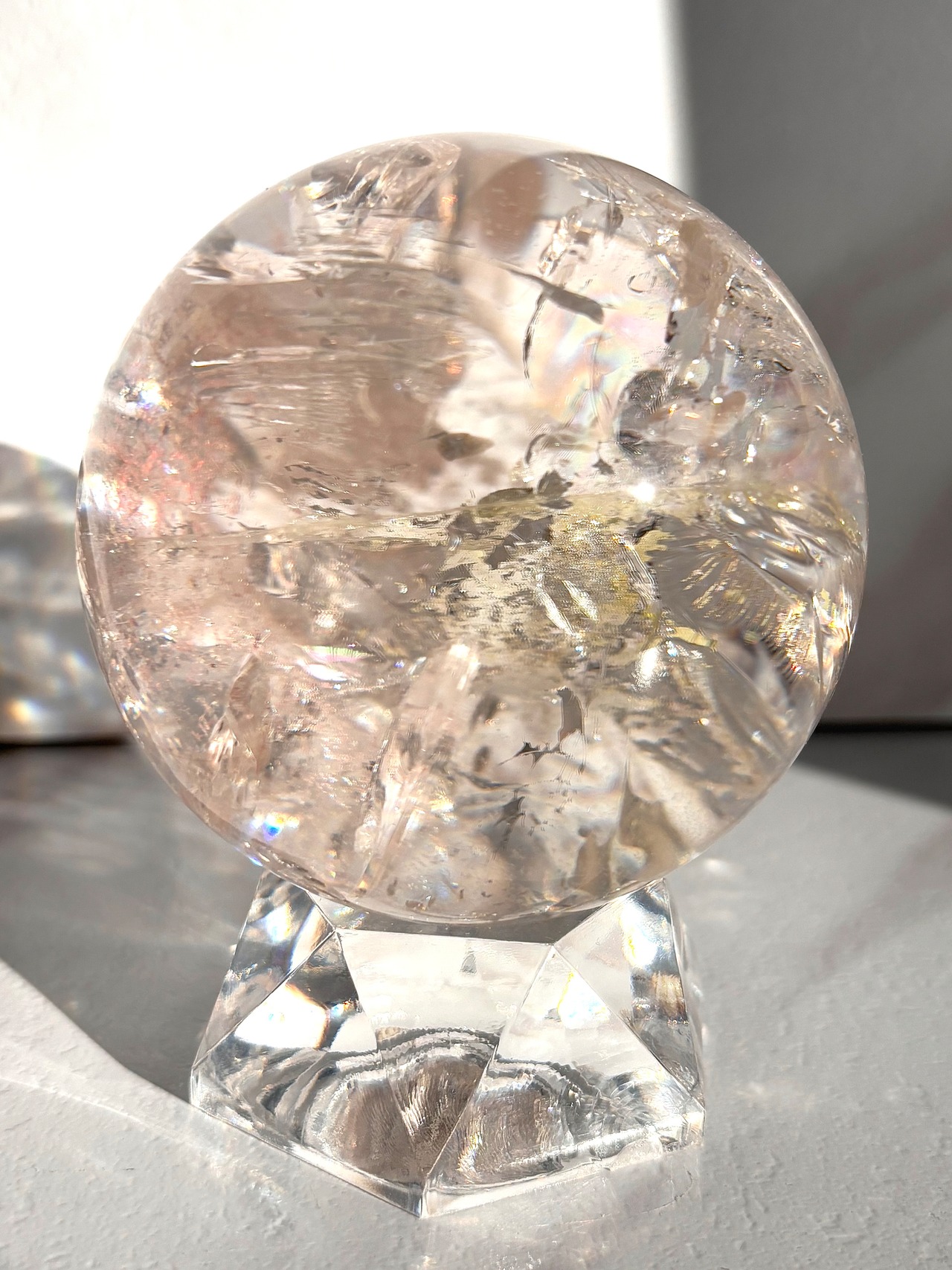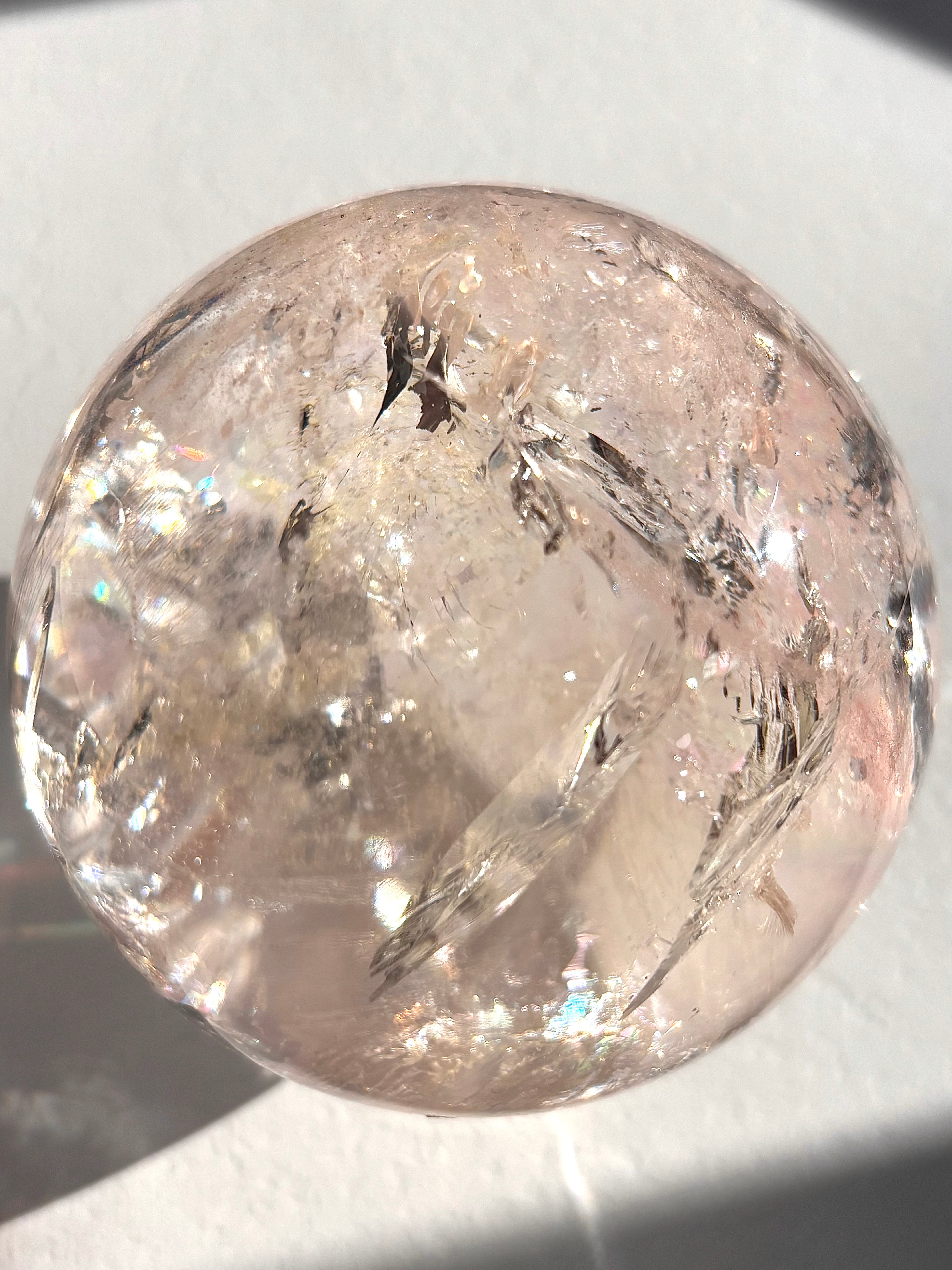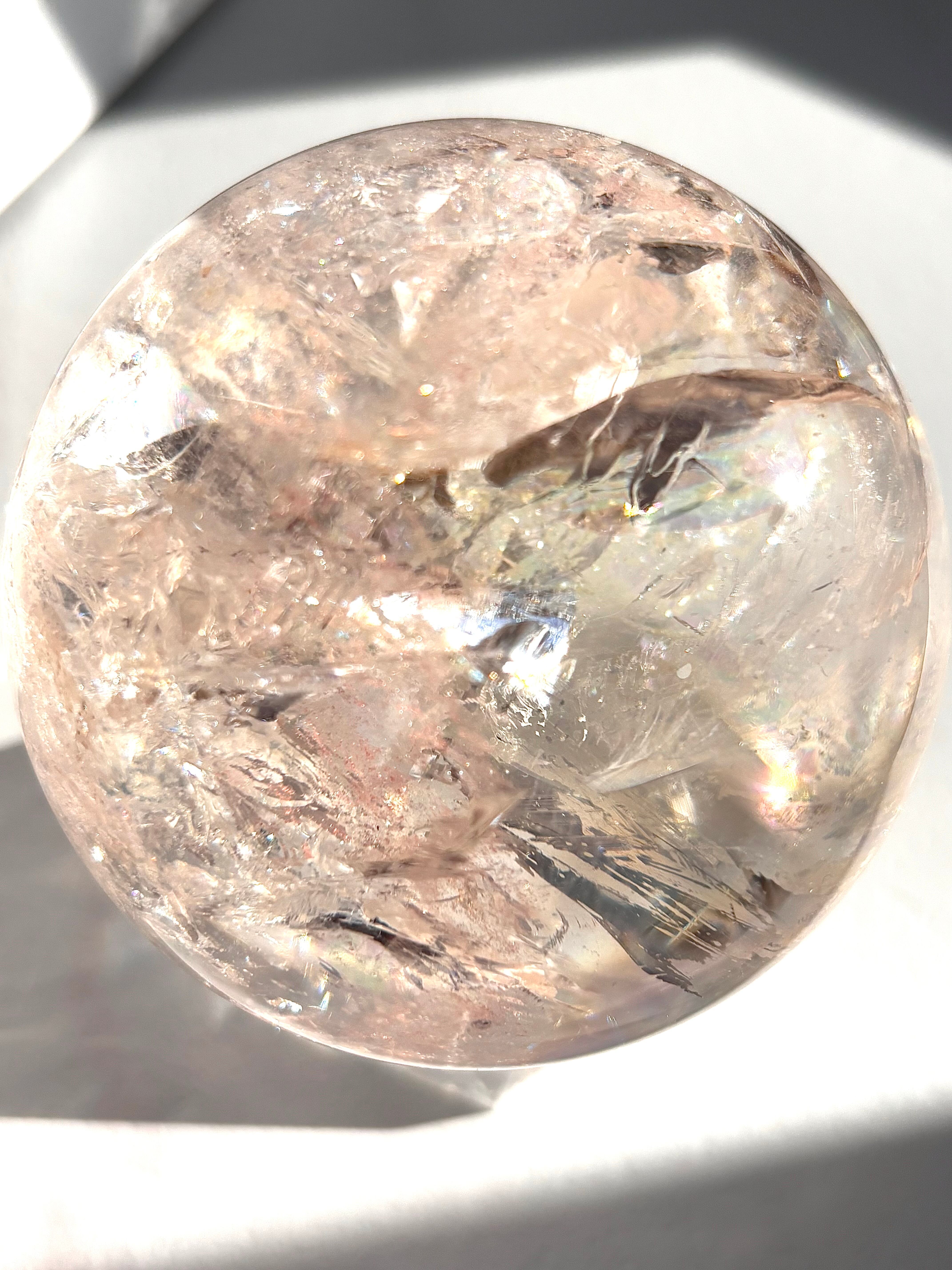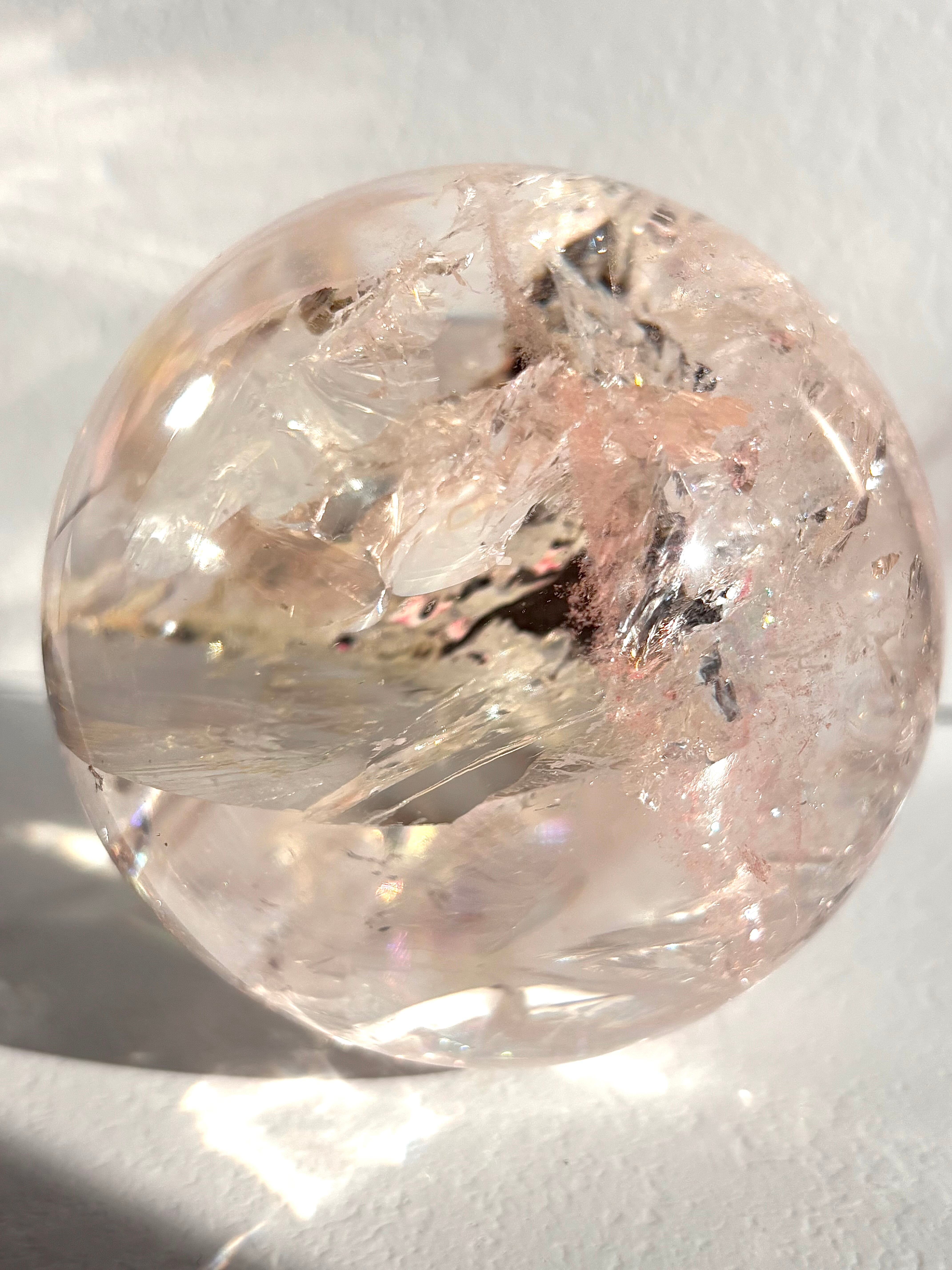 ピンククォーツなのですが陽の光を浴びるとピンクとレモンイエローに発光するマルチカラーな美しい球体。