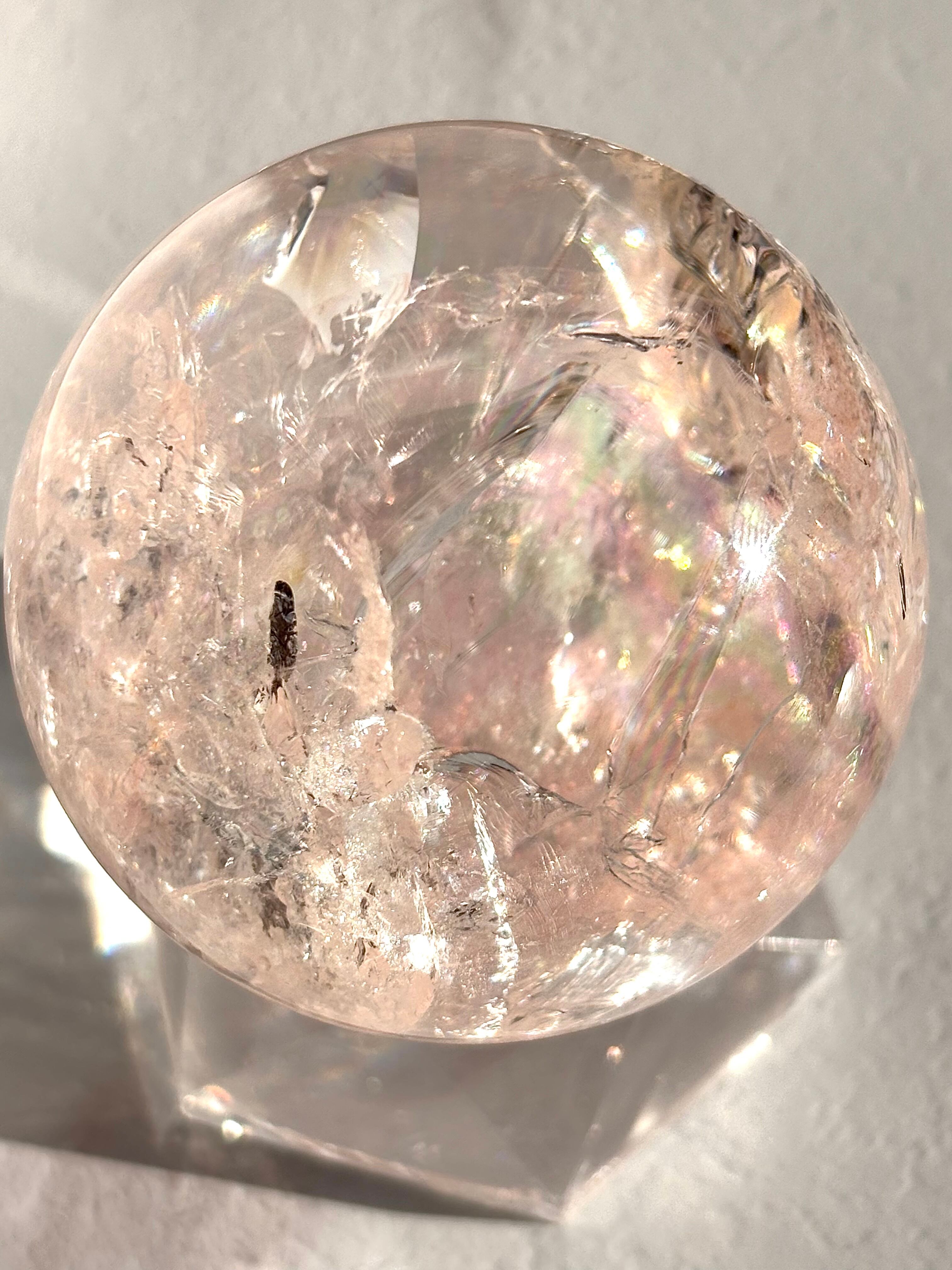 極上品質のマルチカラーピンククォーツ スフィア74㎜になります。