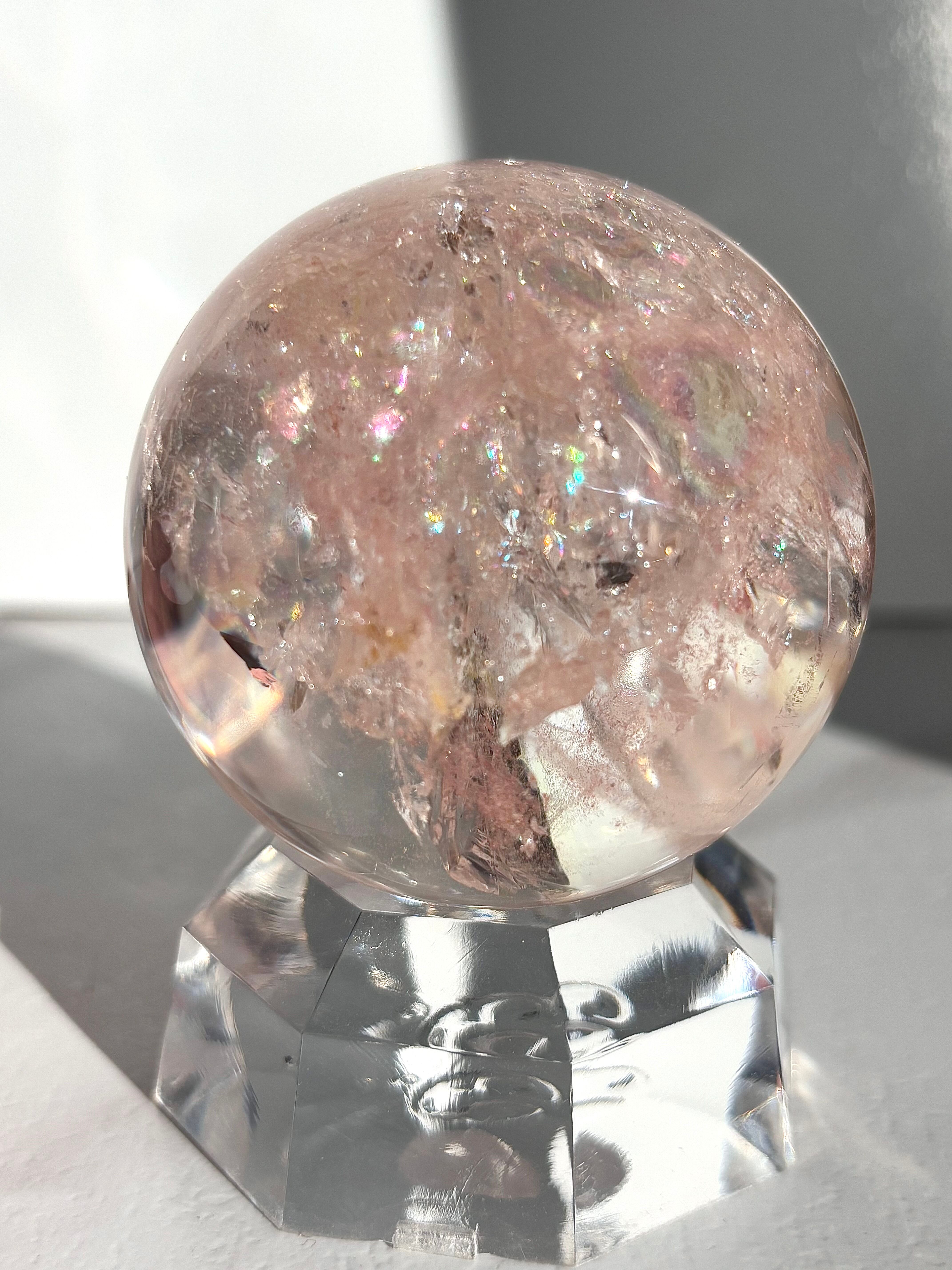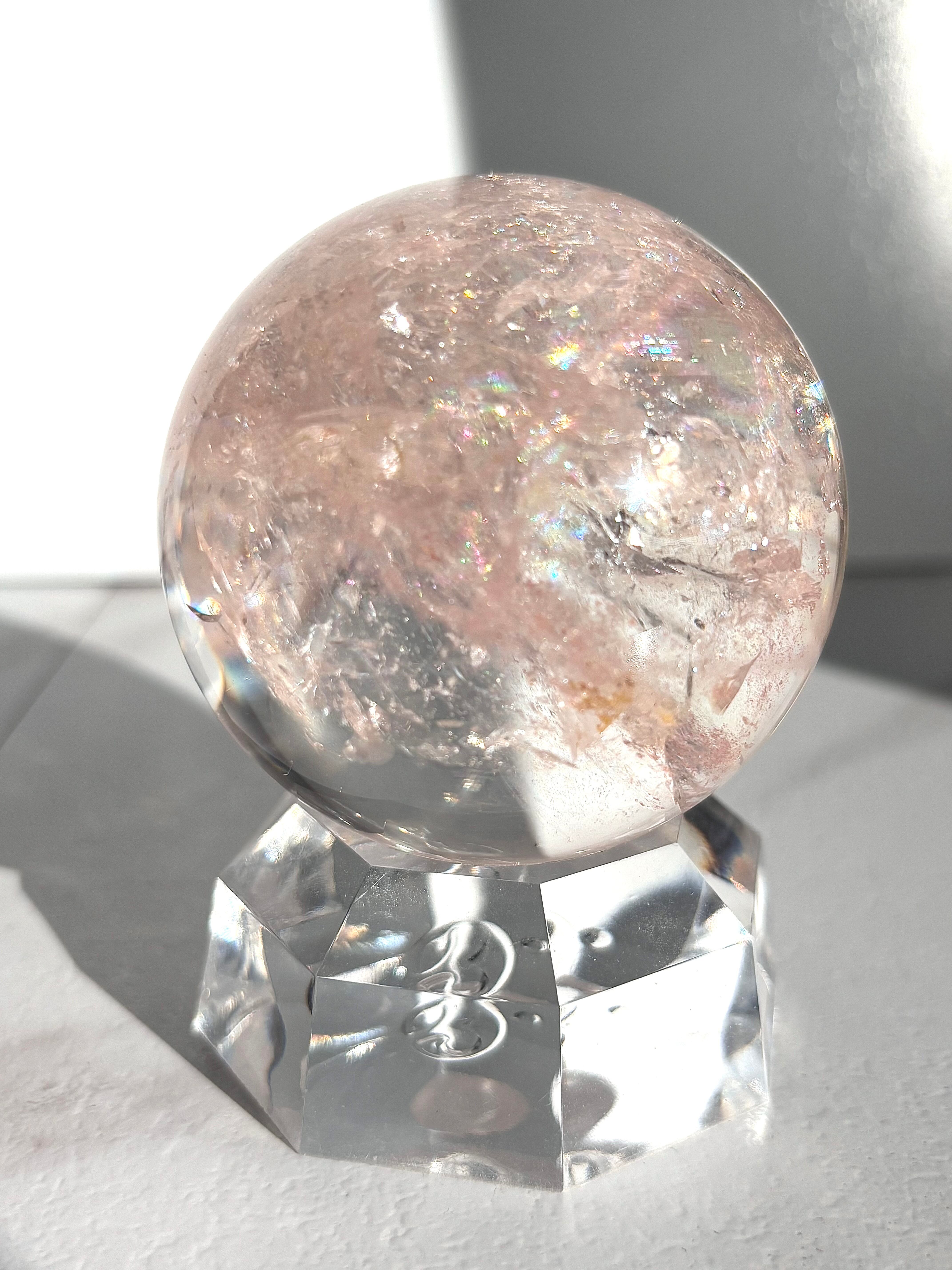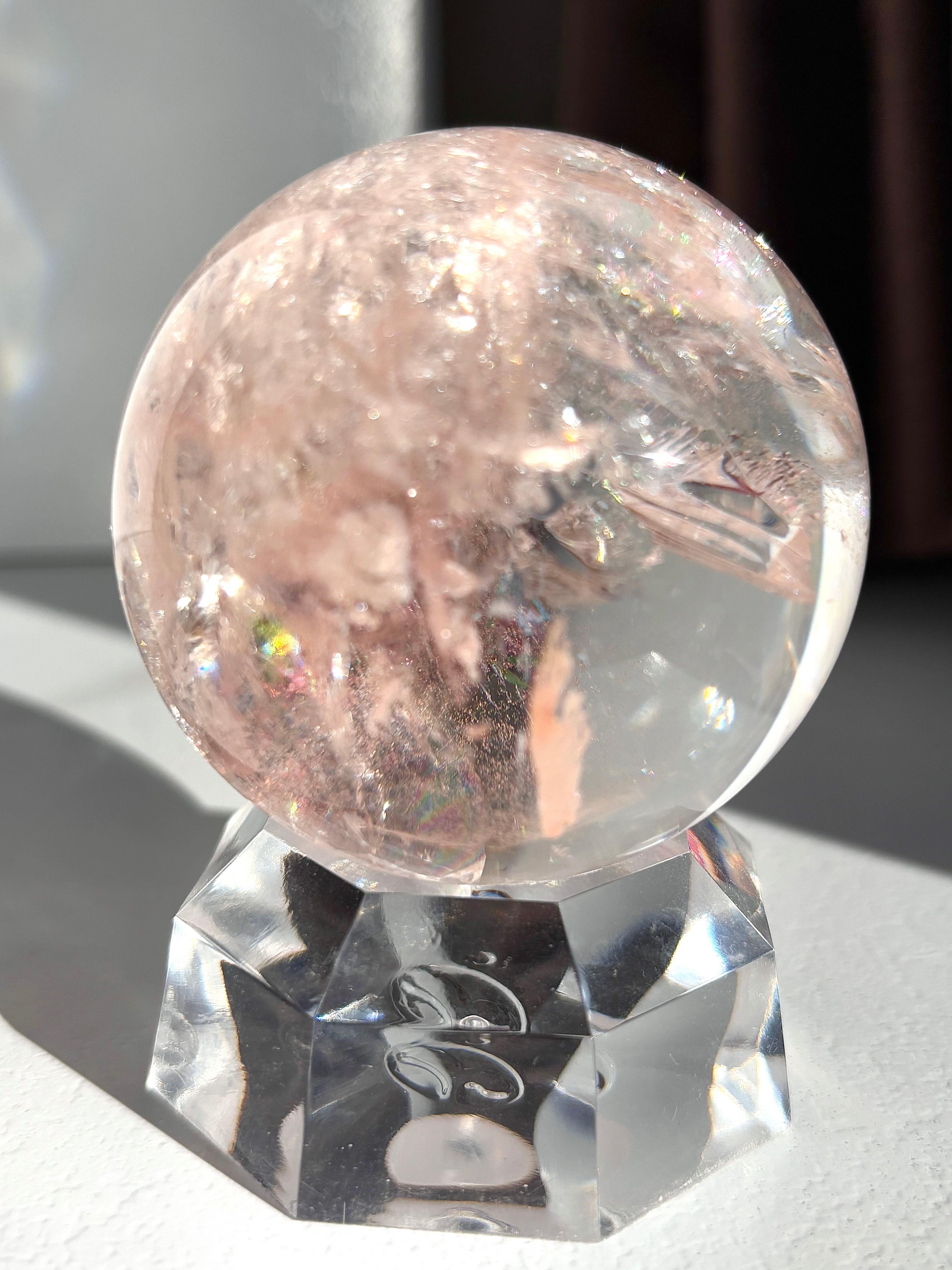 極上品質のレインボーピンククォーツ アゼツライトスフィア59㎜になります。