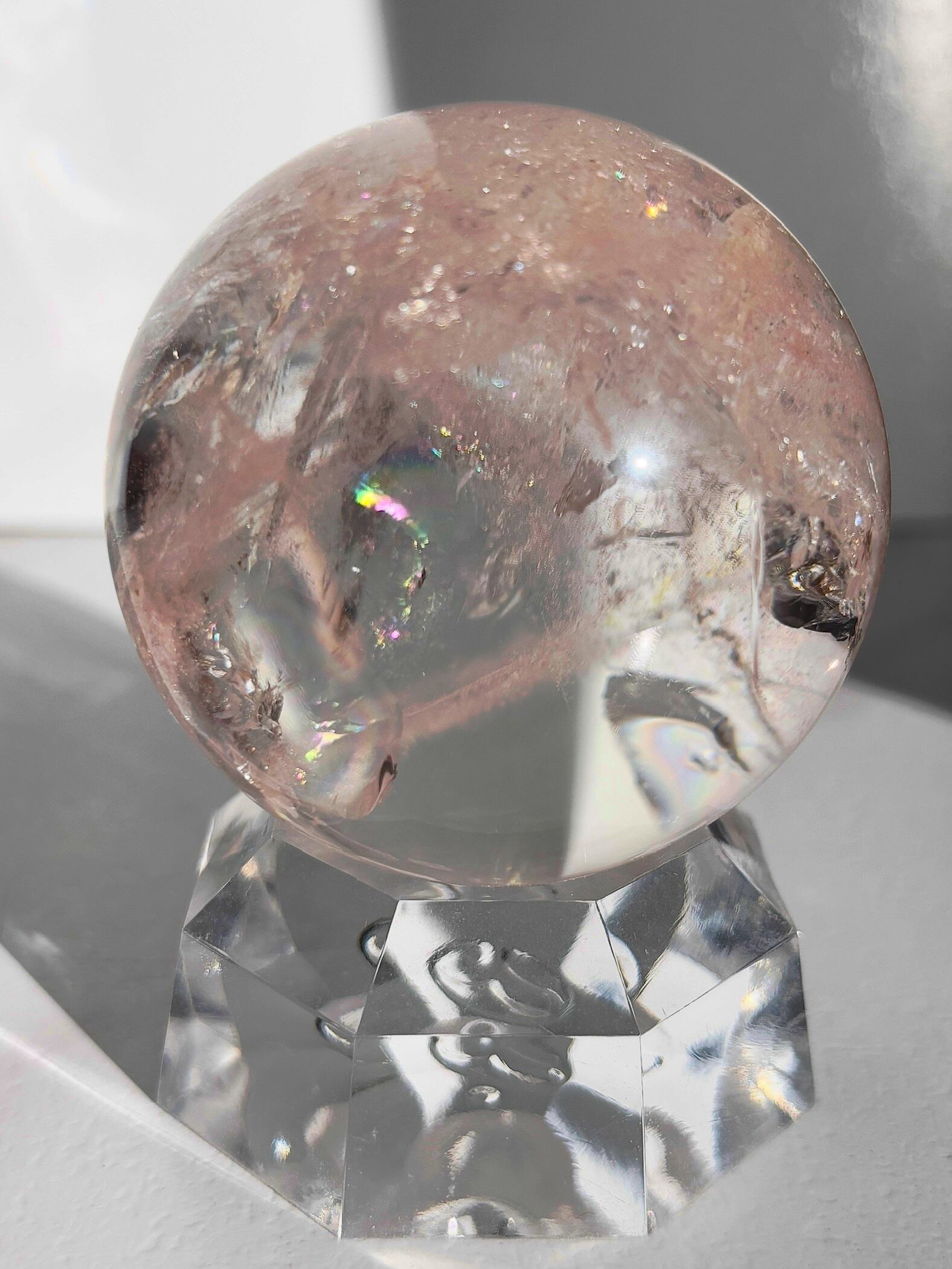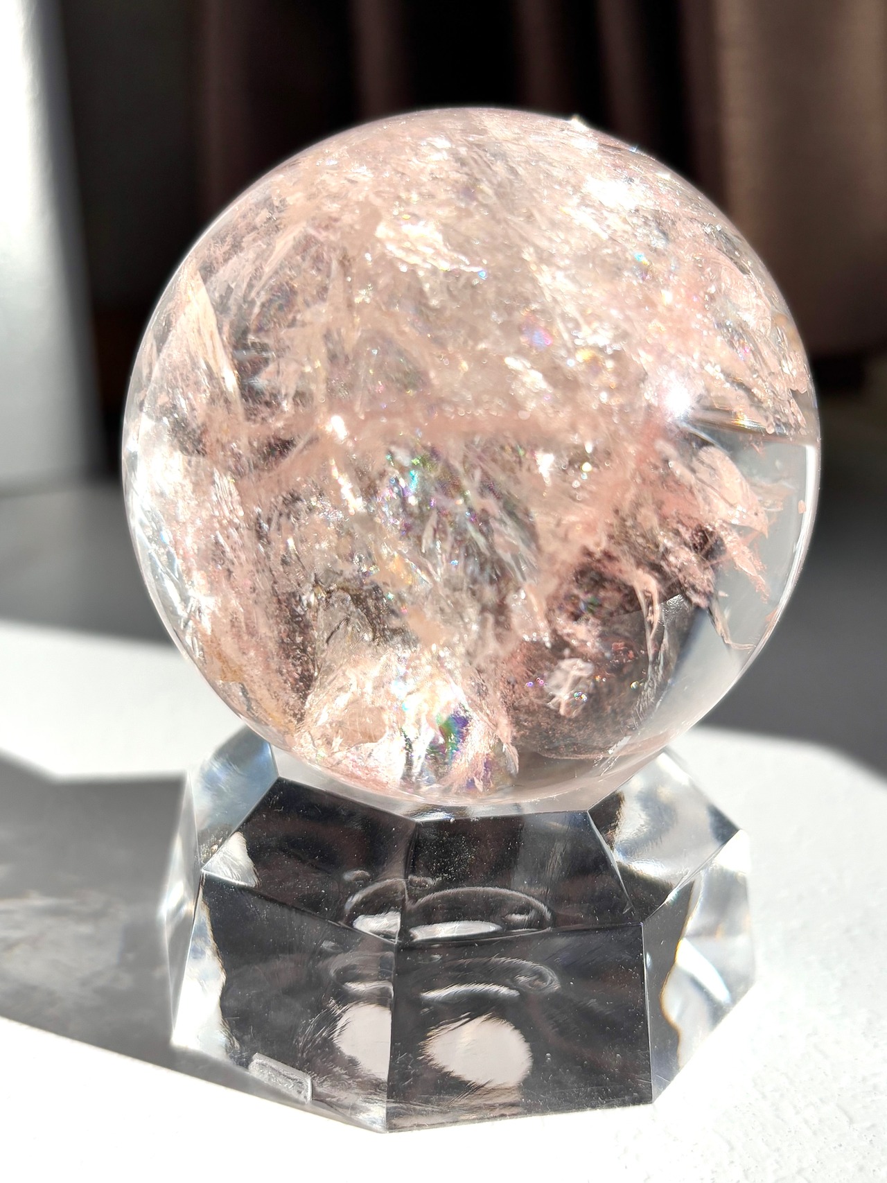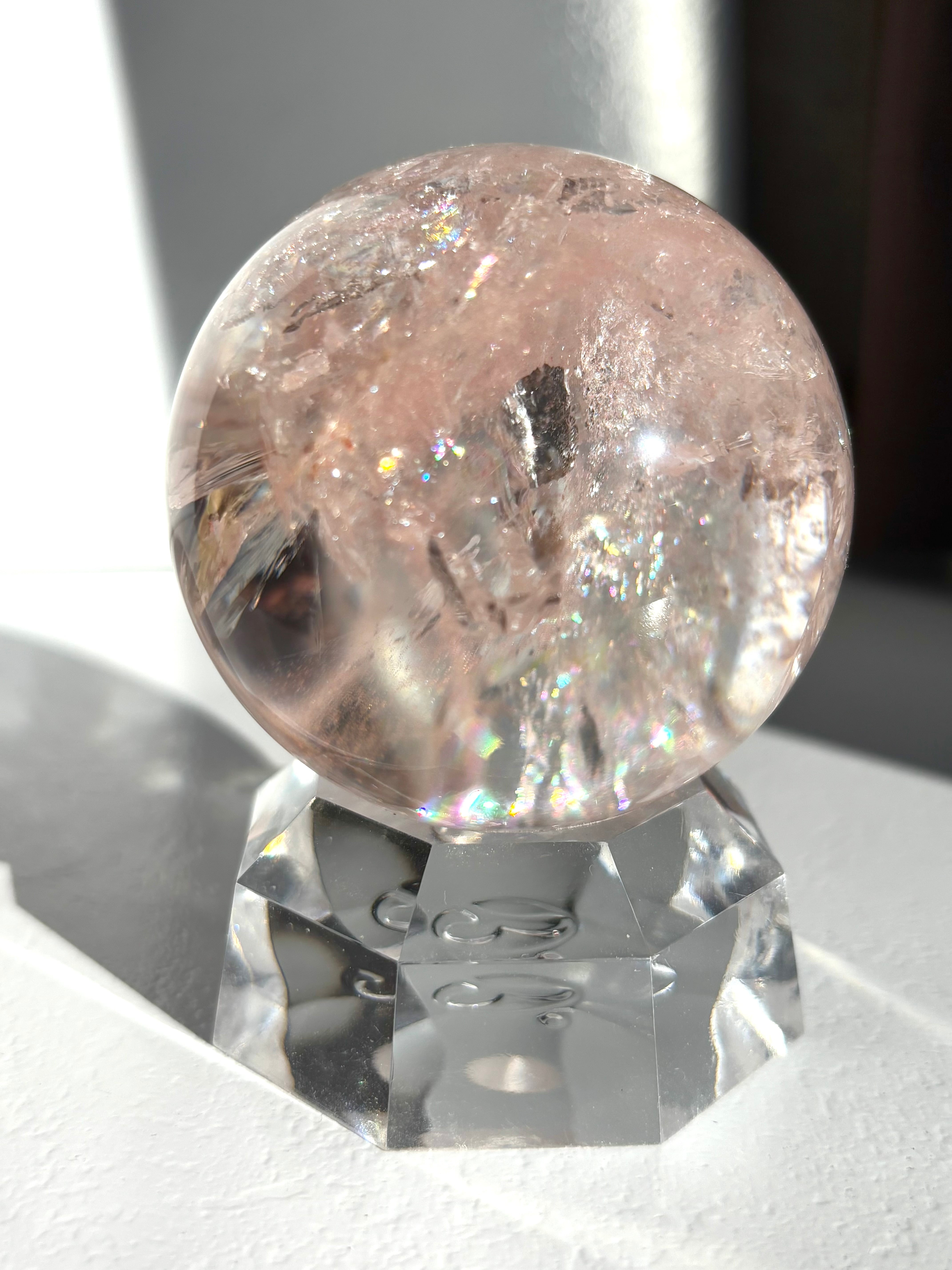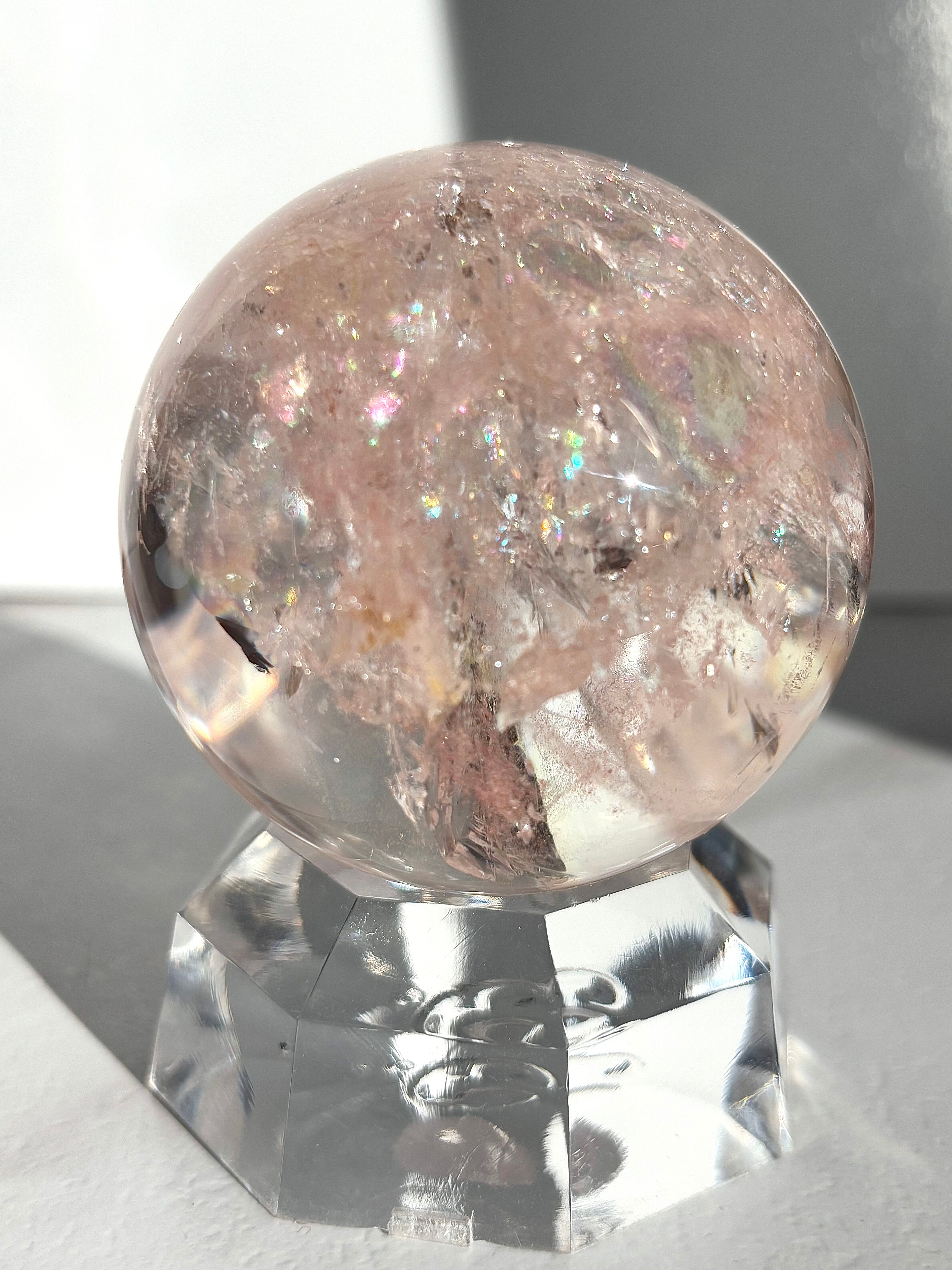 極上品質のレインボーピンククォーツ アゼツライトスフィア59㎜になります。