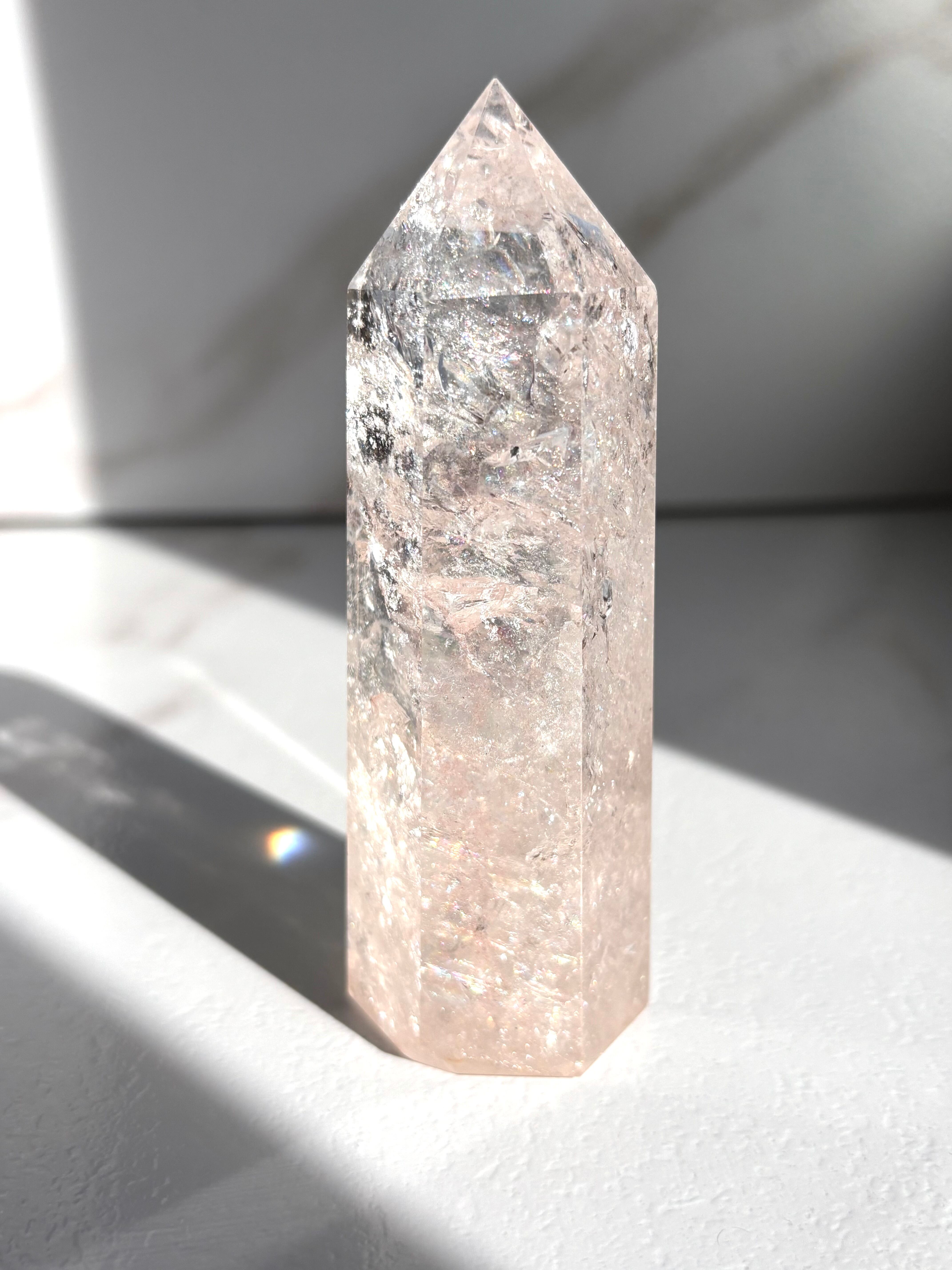 バランスの良いピンクカラーが魅力、素晴らしい透明度と虹が確認できる美しいピンククォーツポイント*
