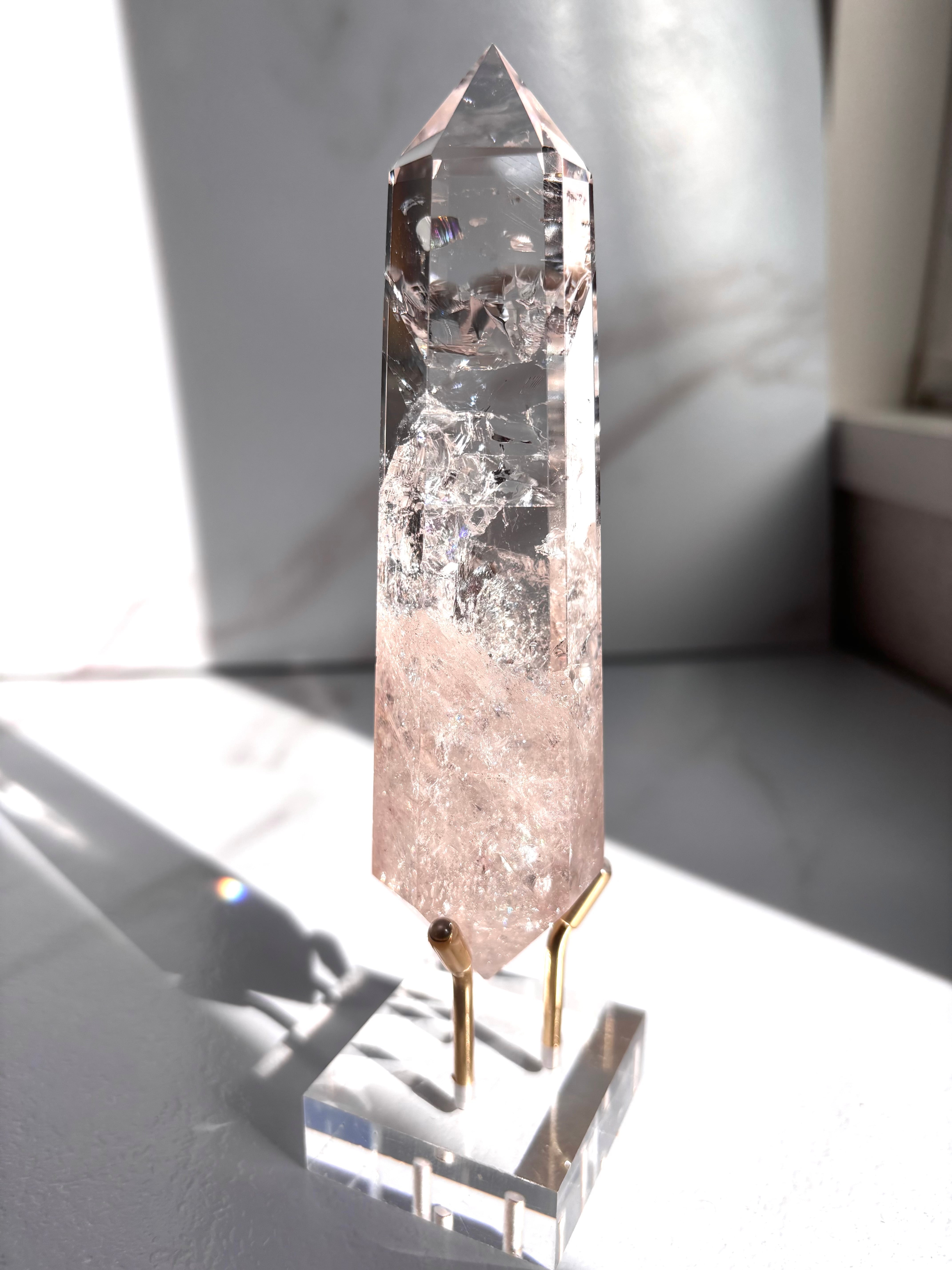 バランスの良いピンクカラーが魅力、素晴らしい透明度と虹が確認できる美しいピンククォーツポイント*