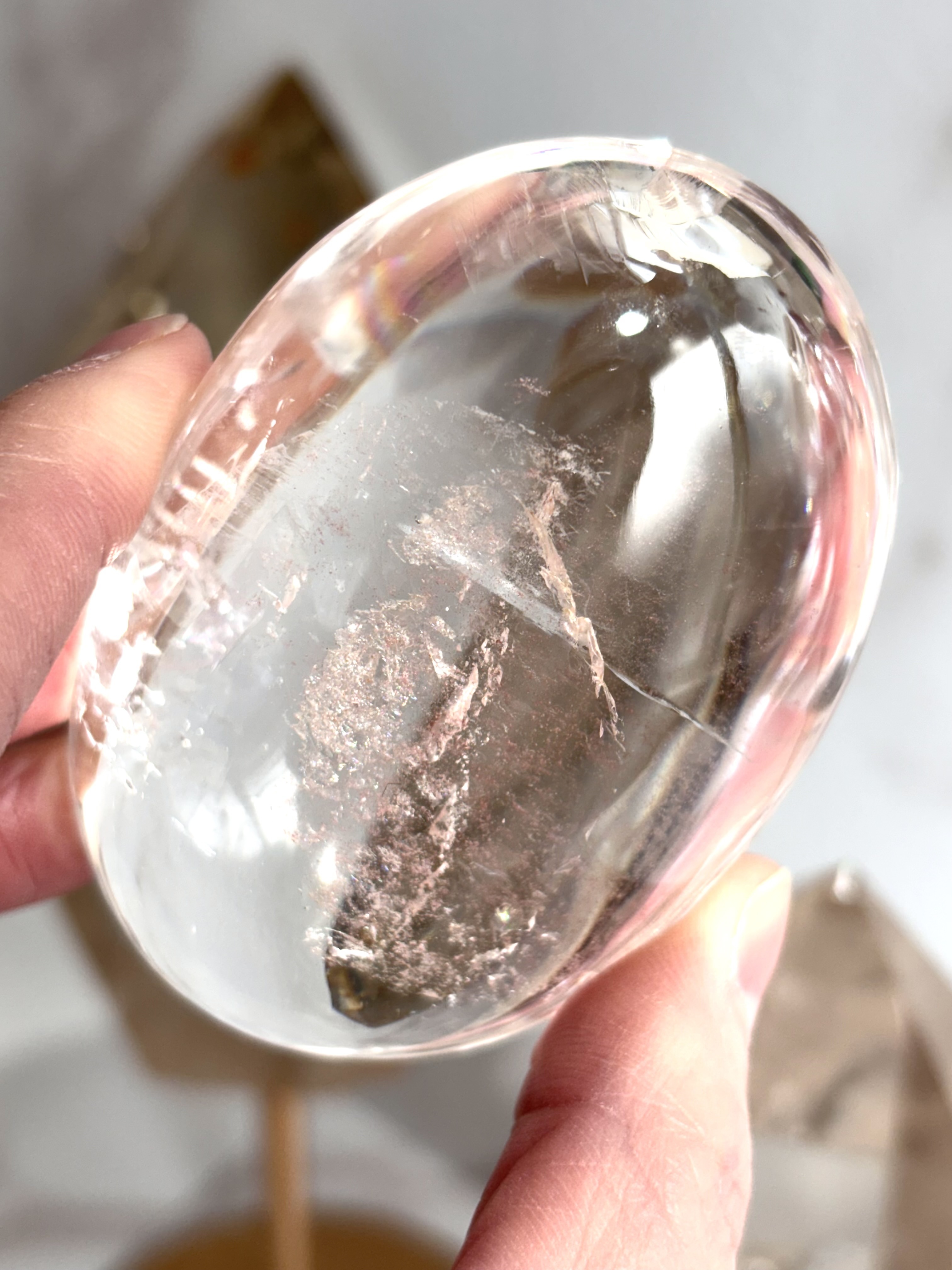 極上品質のピンククォーツ アゼツライトのパームになります。