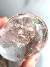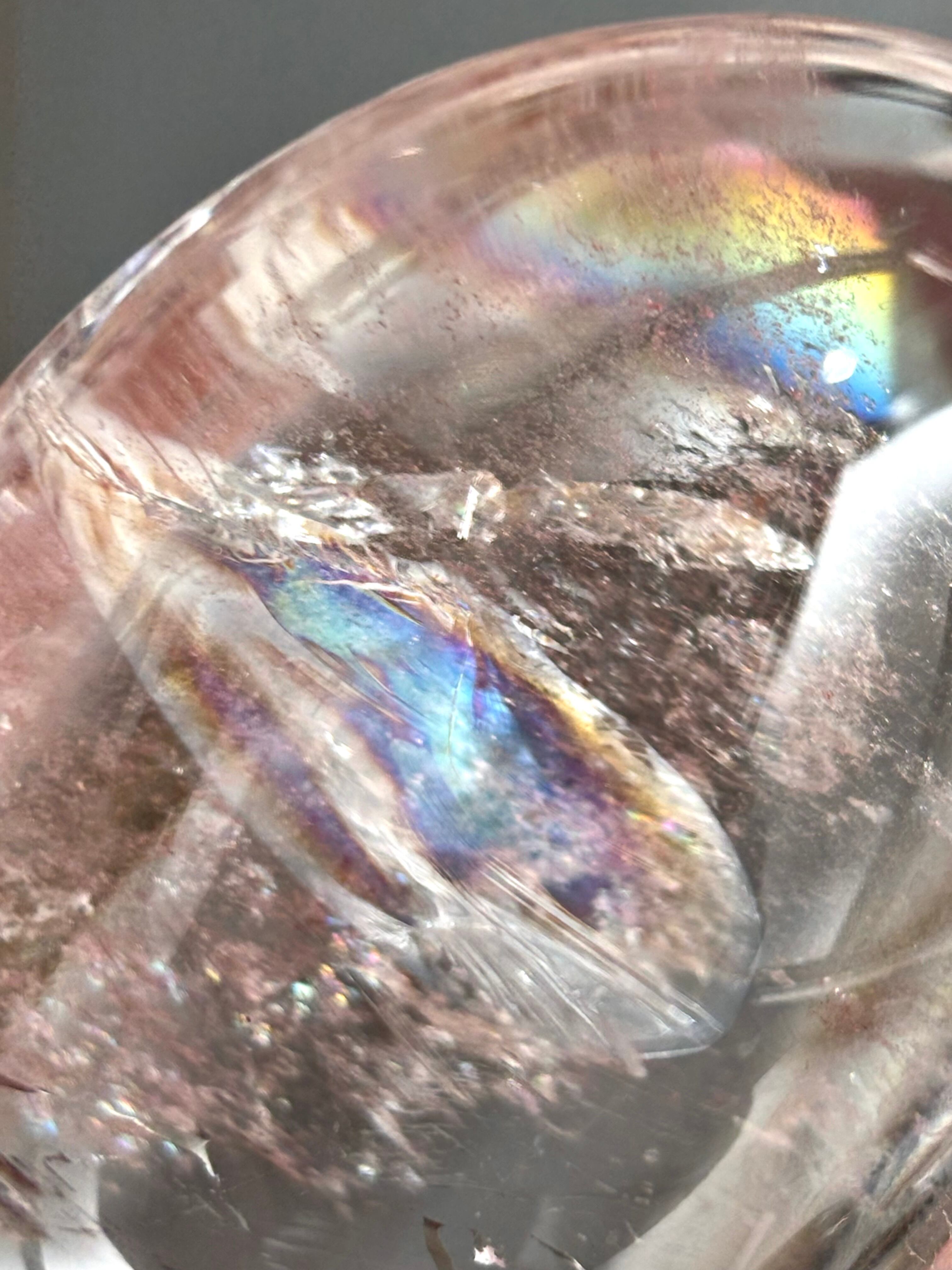 キャンディのようなら可愛らしいピンクカラーにはうっすら虹が浮かび上がりまた水のようにクリア品質。