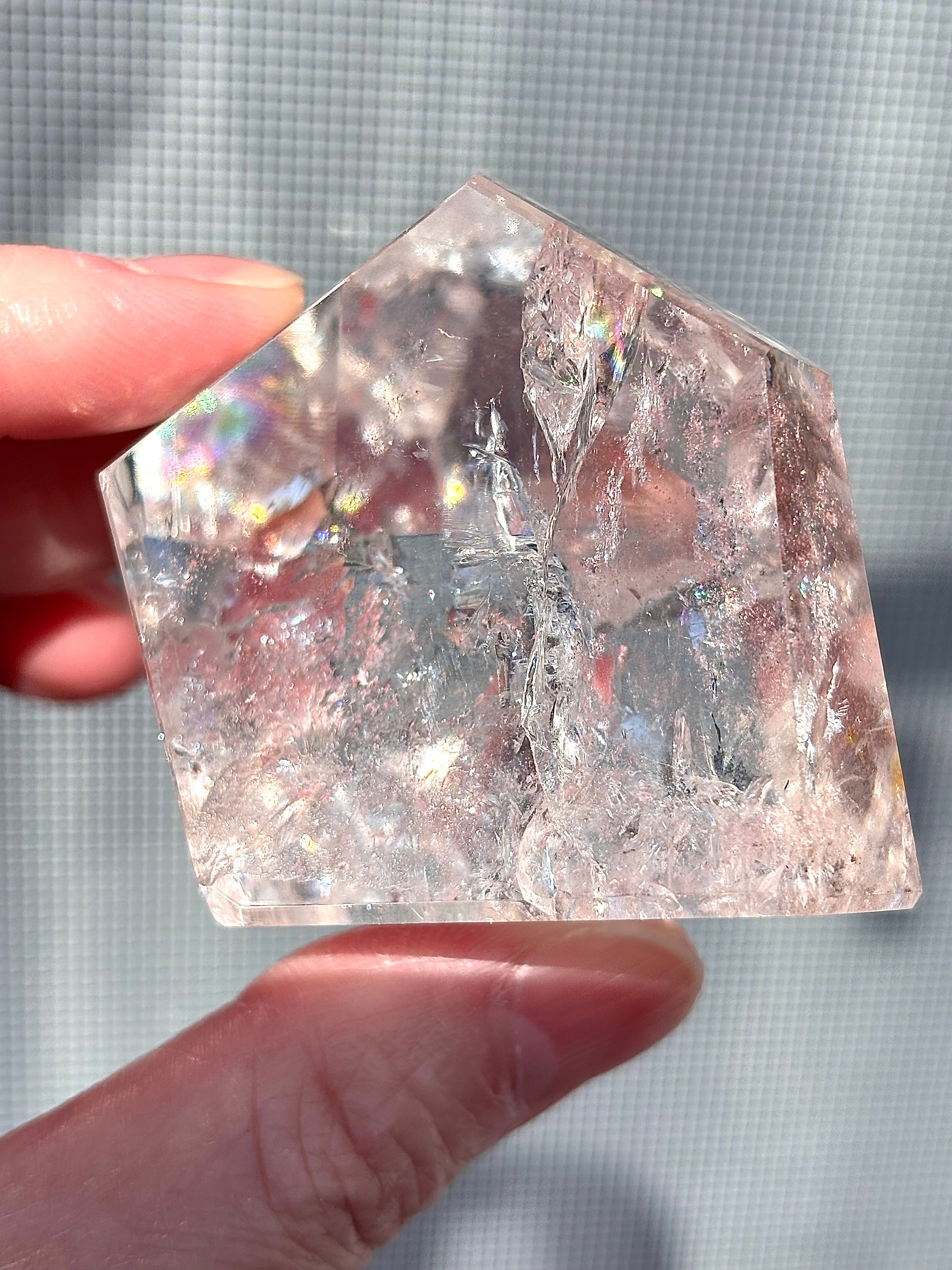 ここまで透明度が高くきらめくレインボーのピンククォーツは希少です☆
