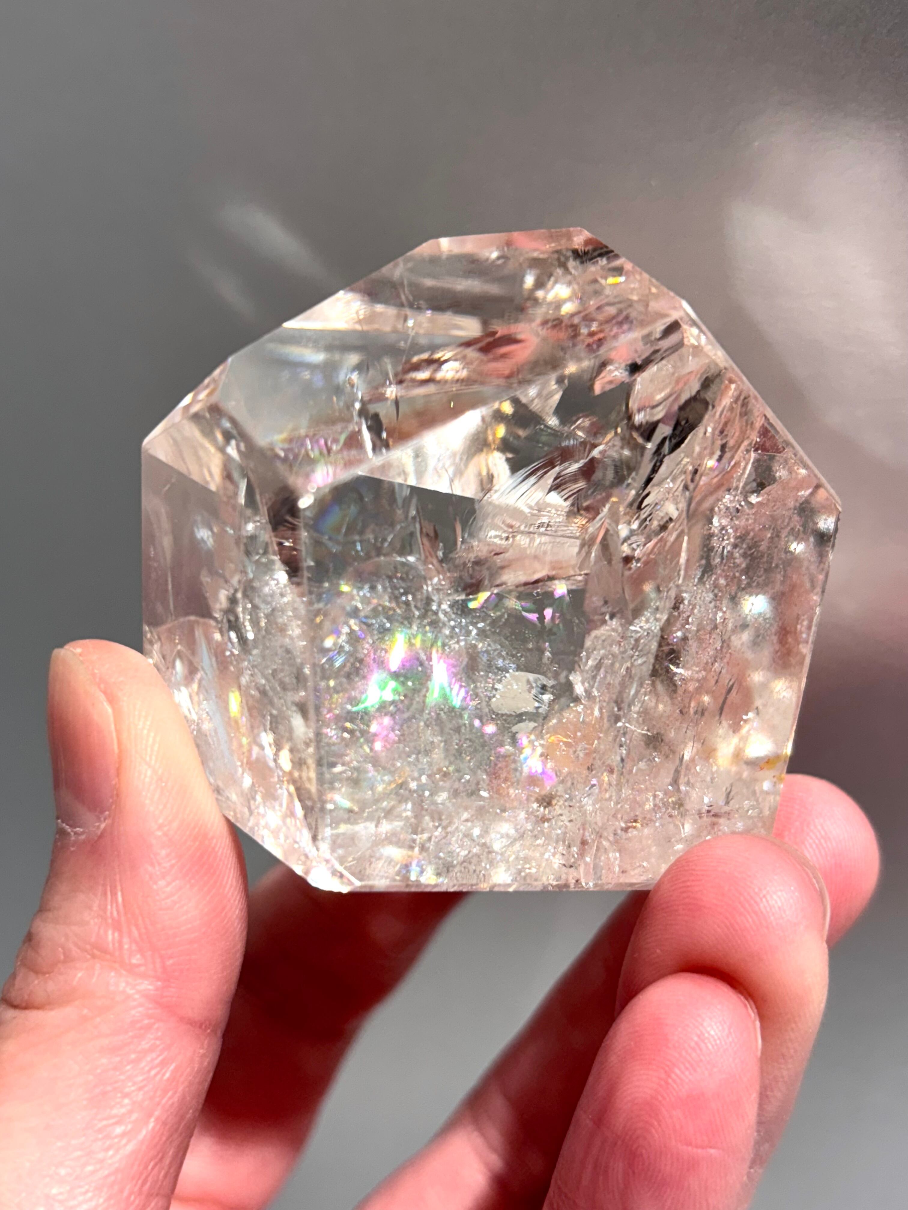 ほんのり優しい桜色のその姿から言葉では表現することが難しいほどの煌めく美しいレインボーの光を放ちます。