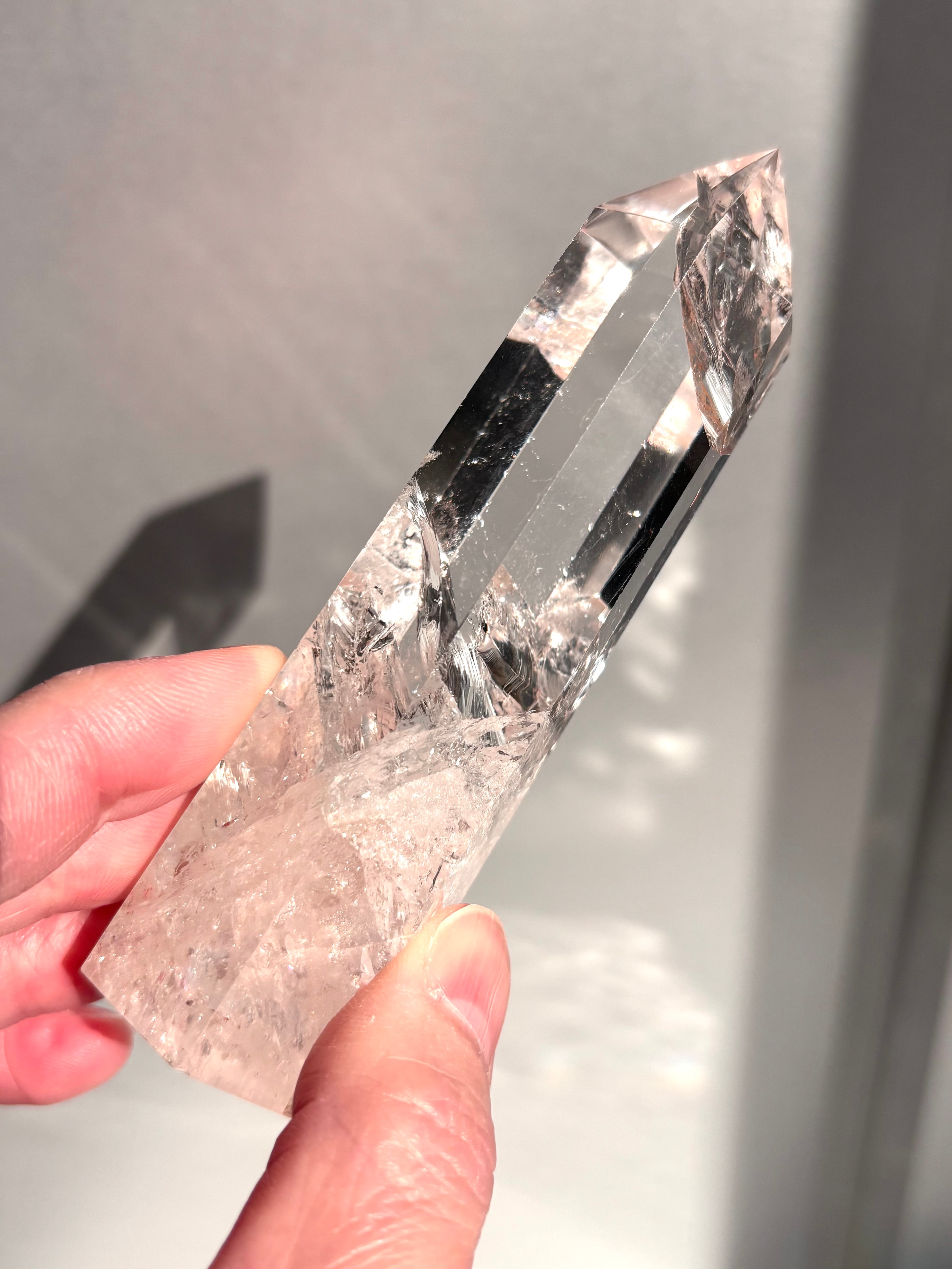 バランスの良いピンクカラーが魅力、素晴らしい透明度と虹が確認できる美しいピンククォーツポイント*