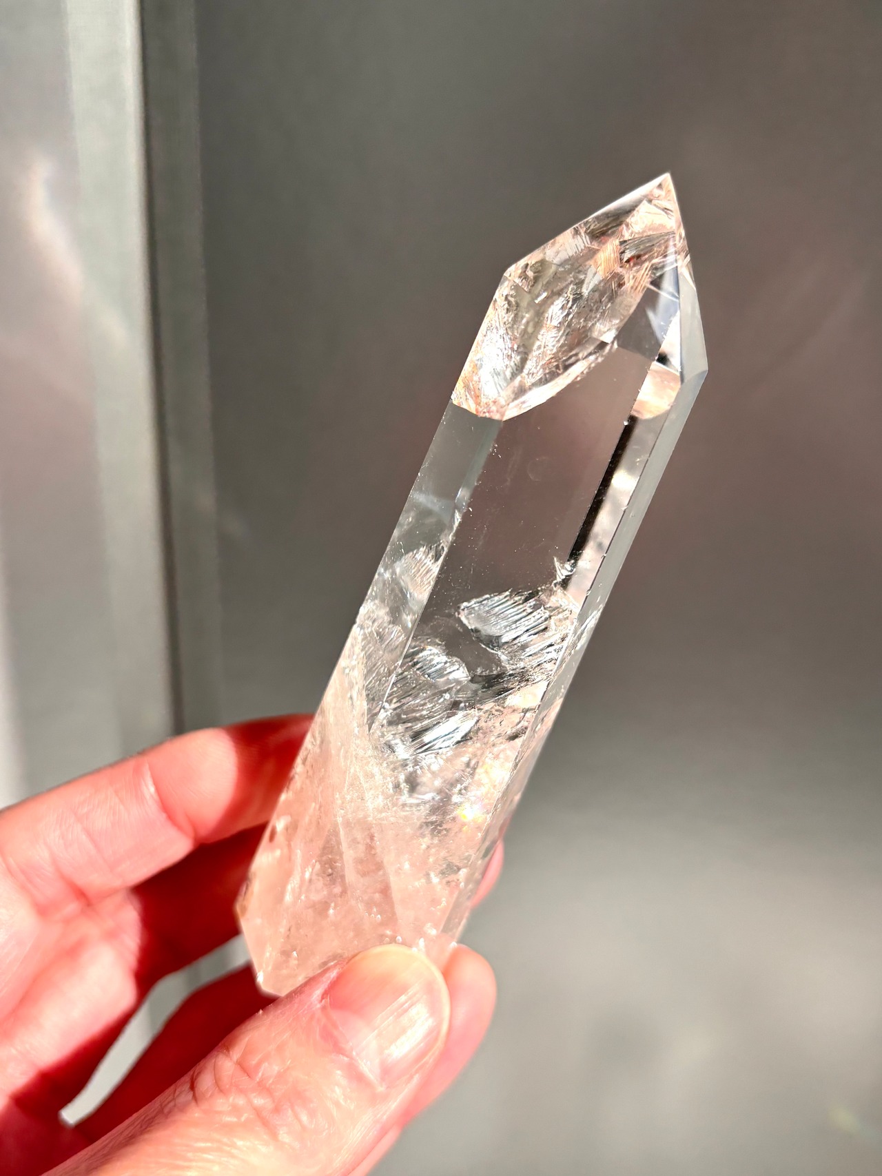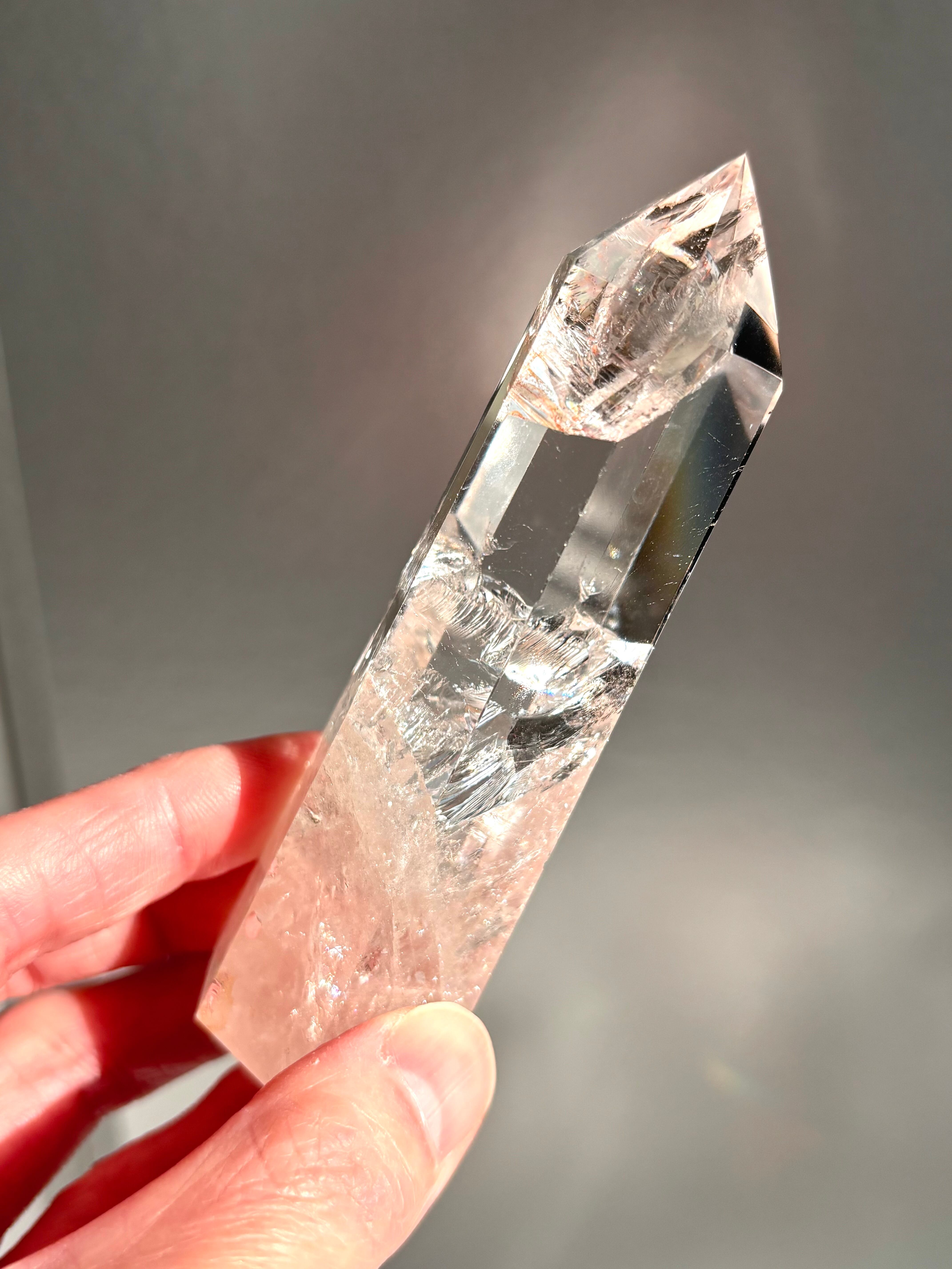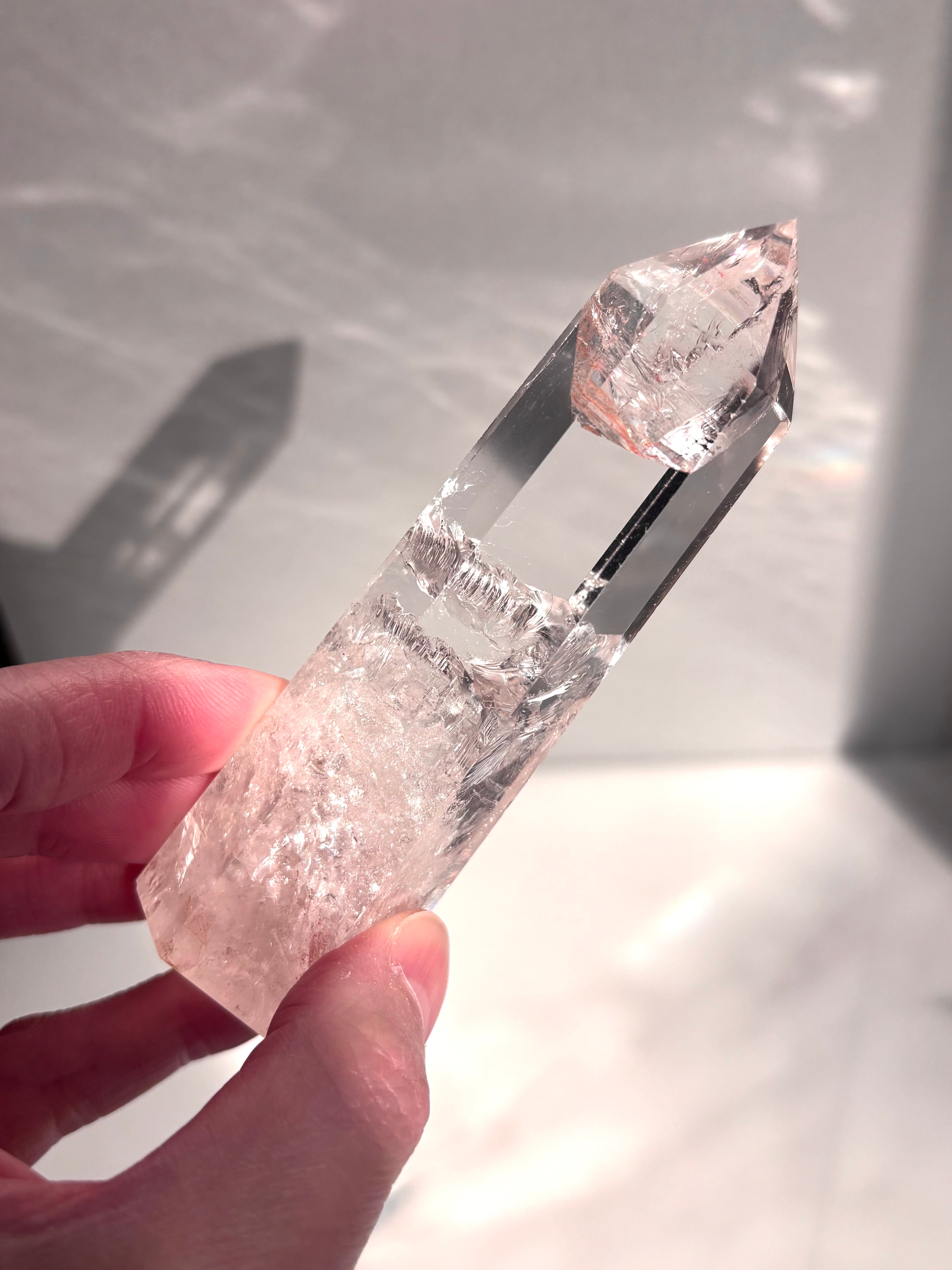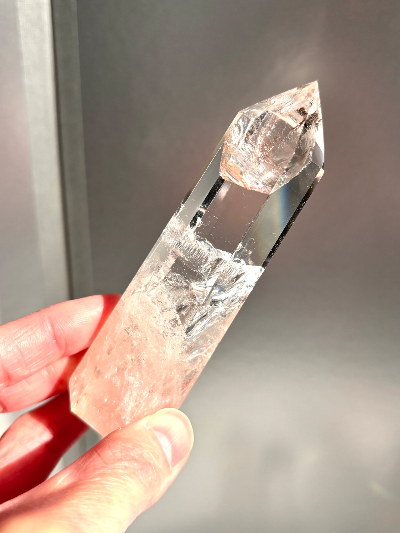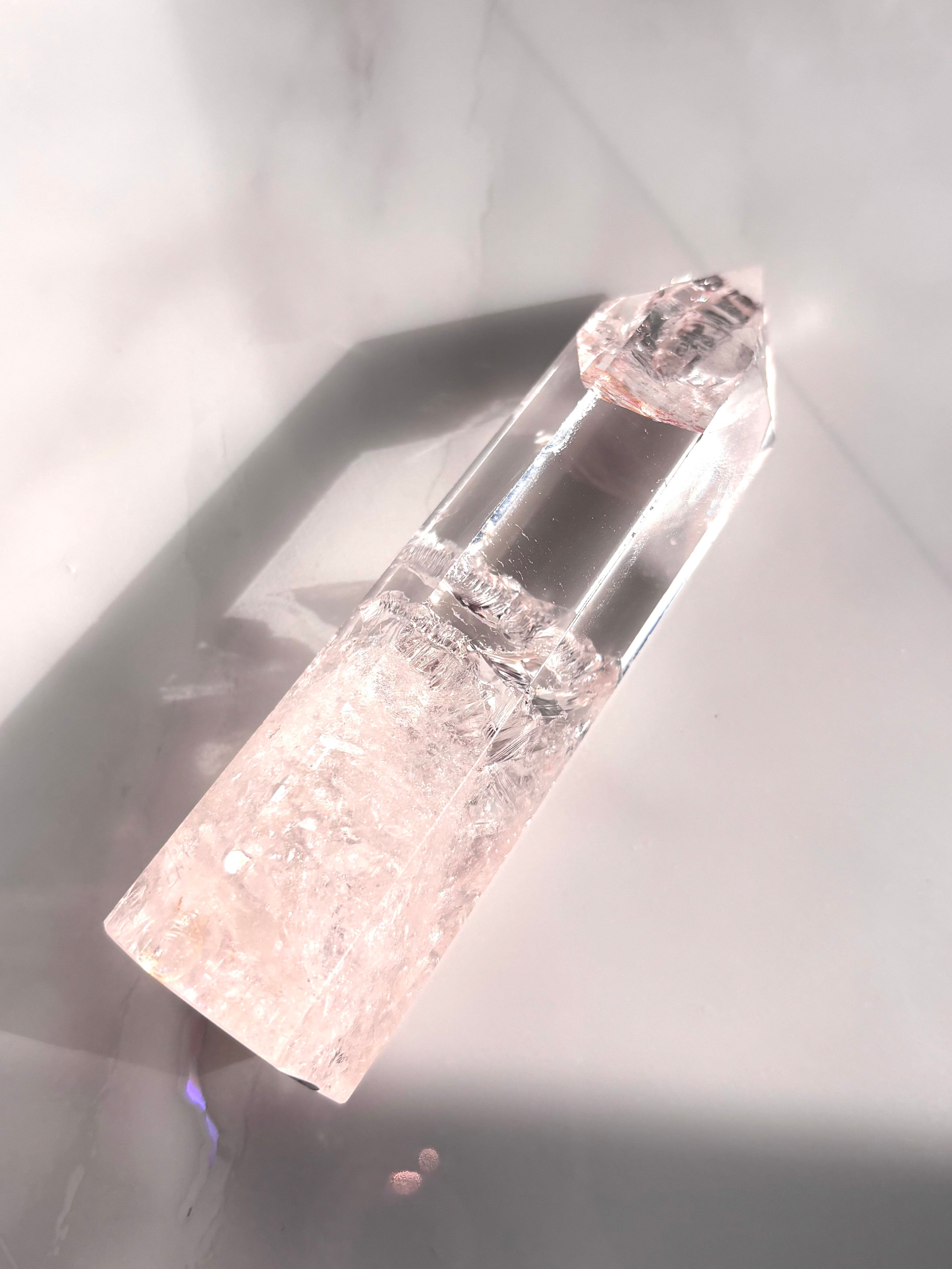 虹キラキラ、極上品質のピンククォーツポイントになります。