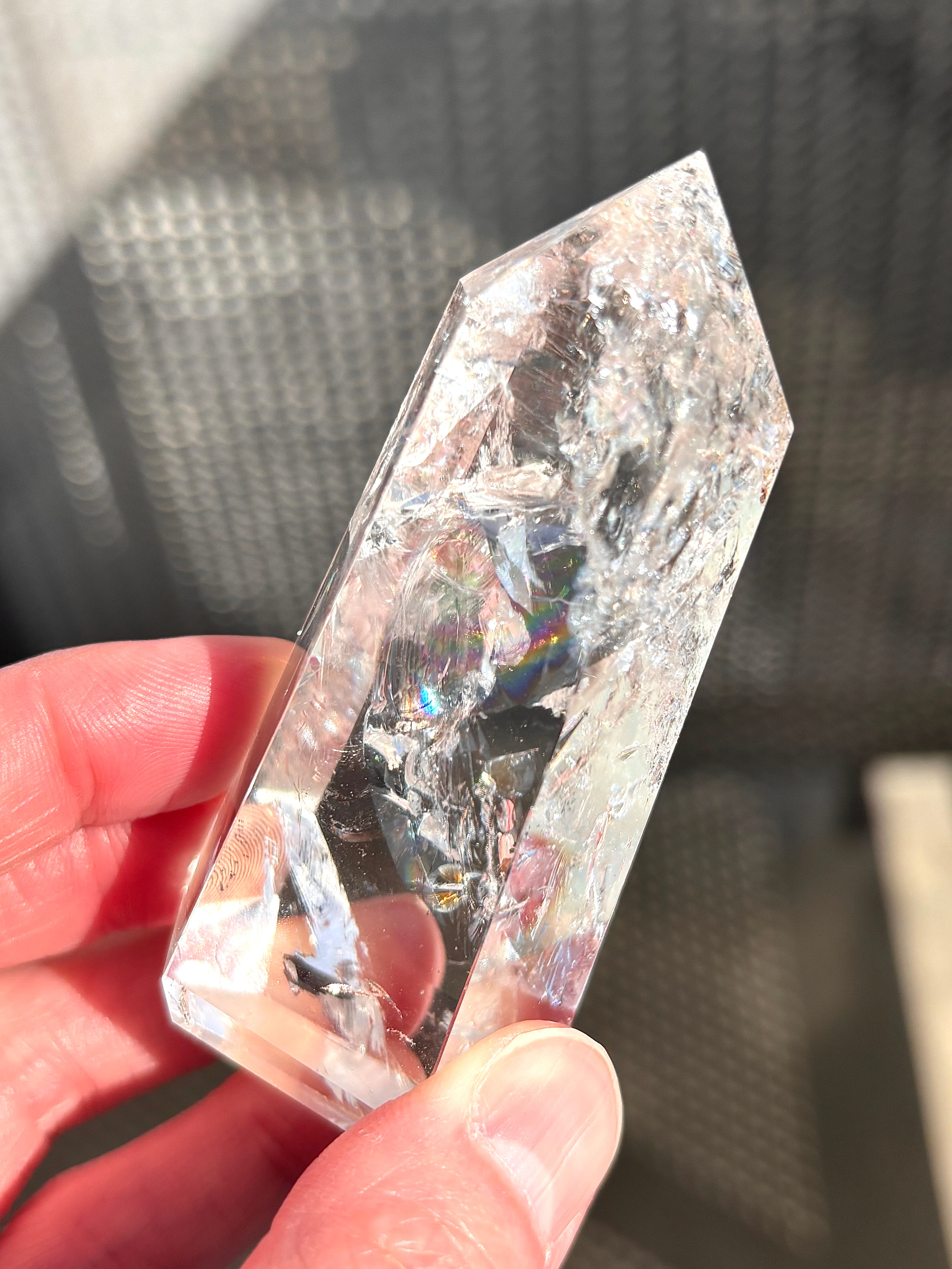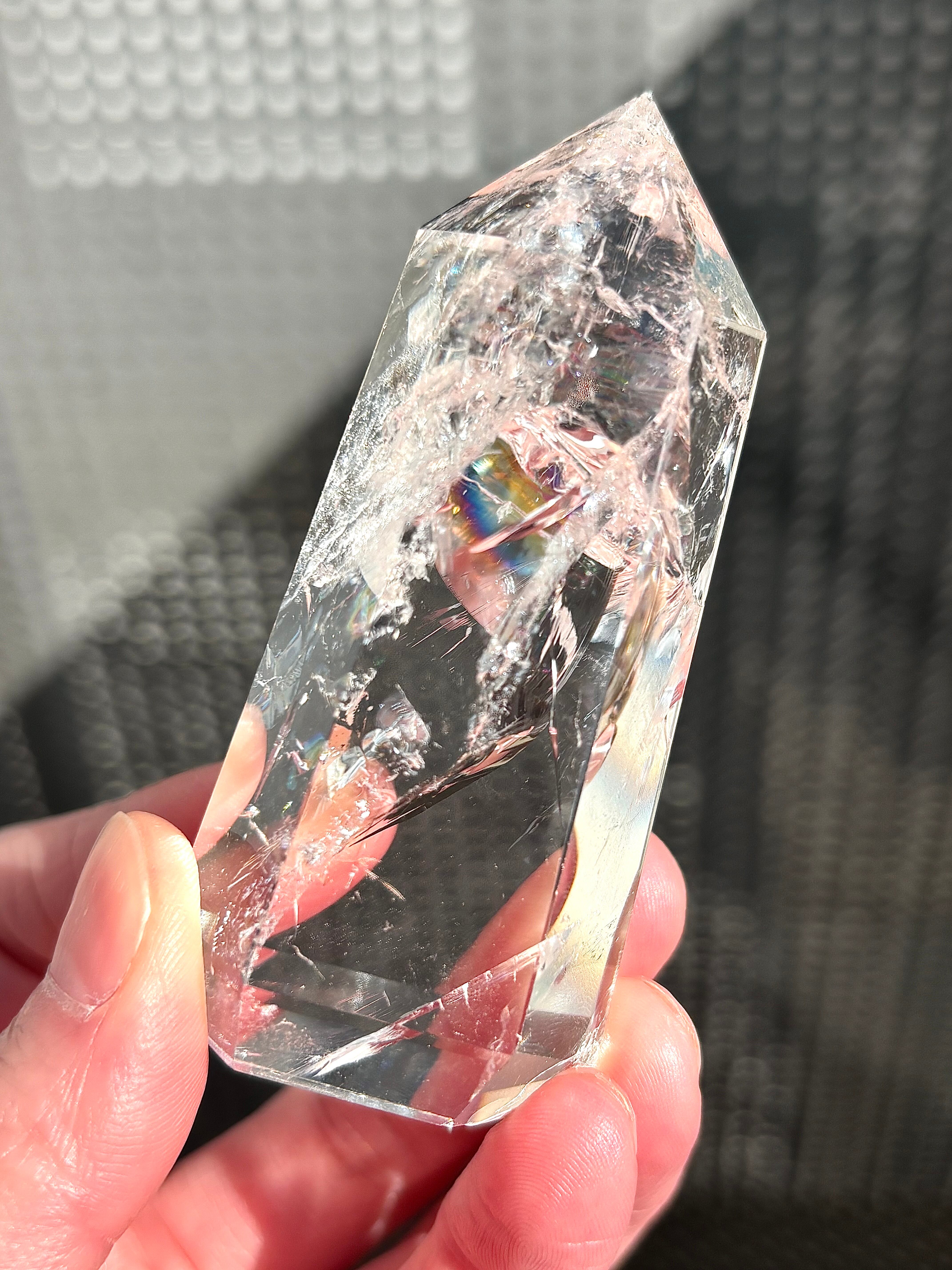 虹キラキラ、極上品質のピンククォーツポイントになります。