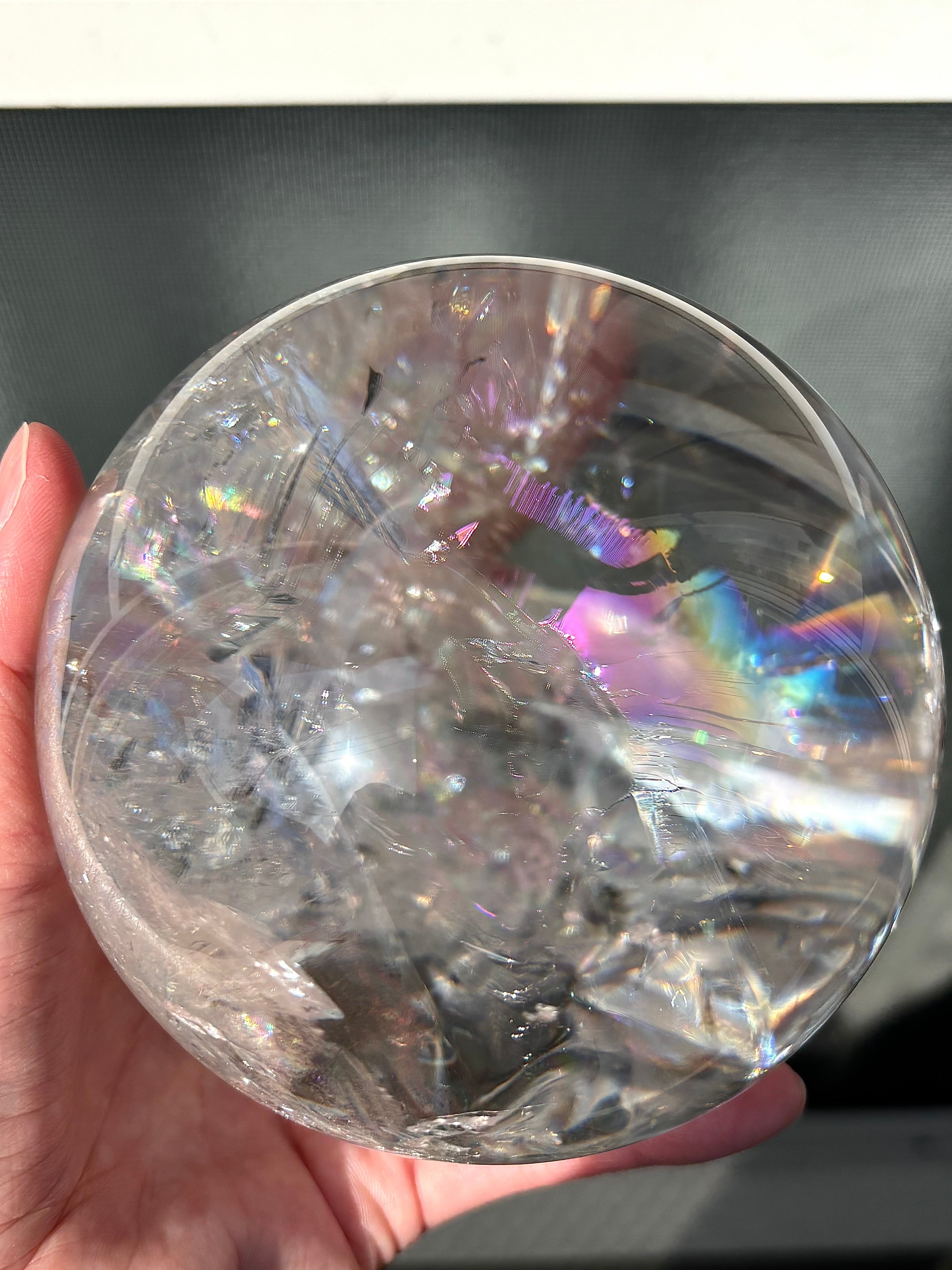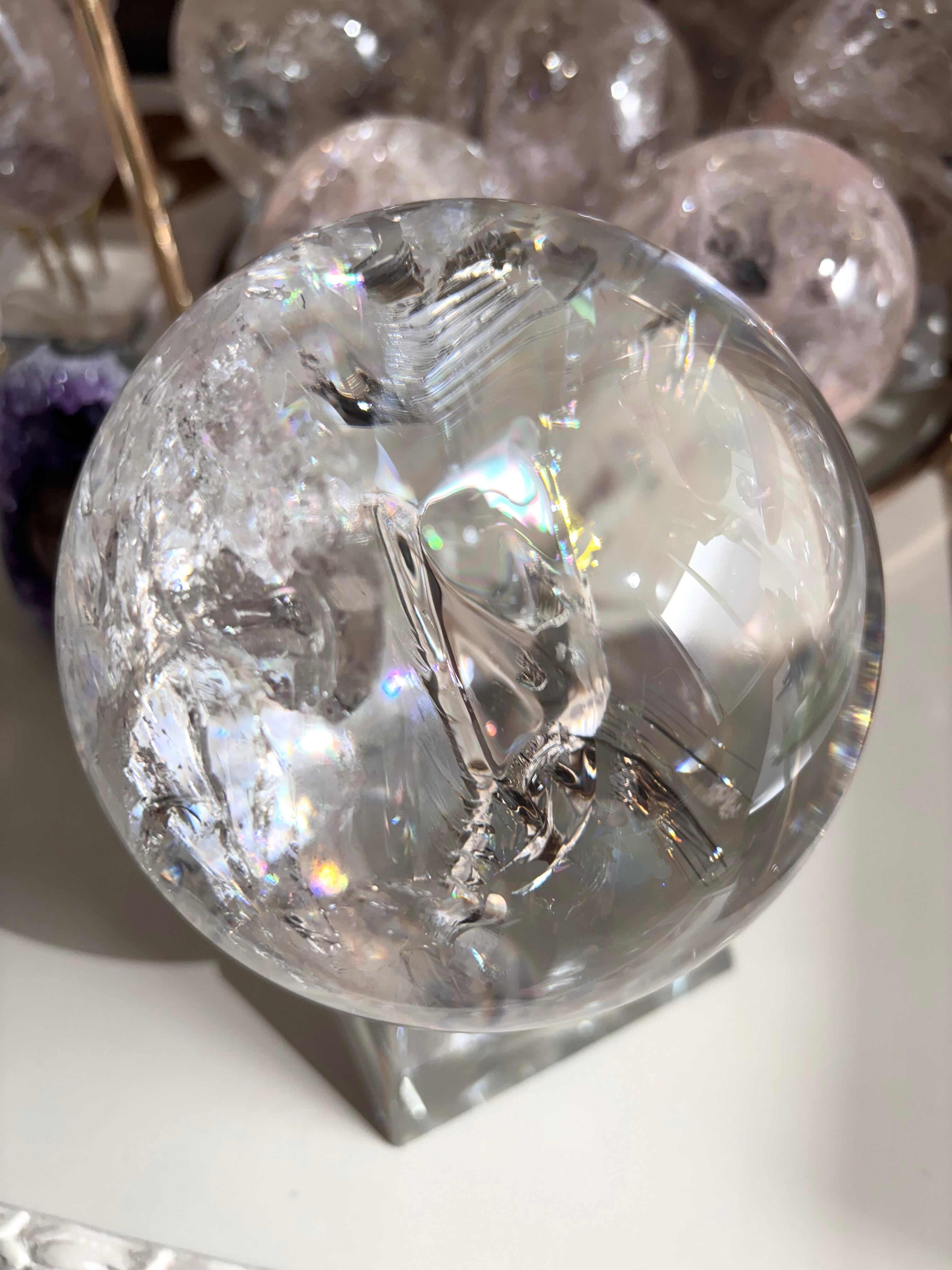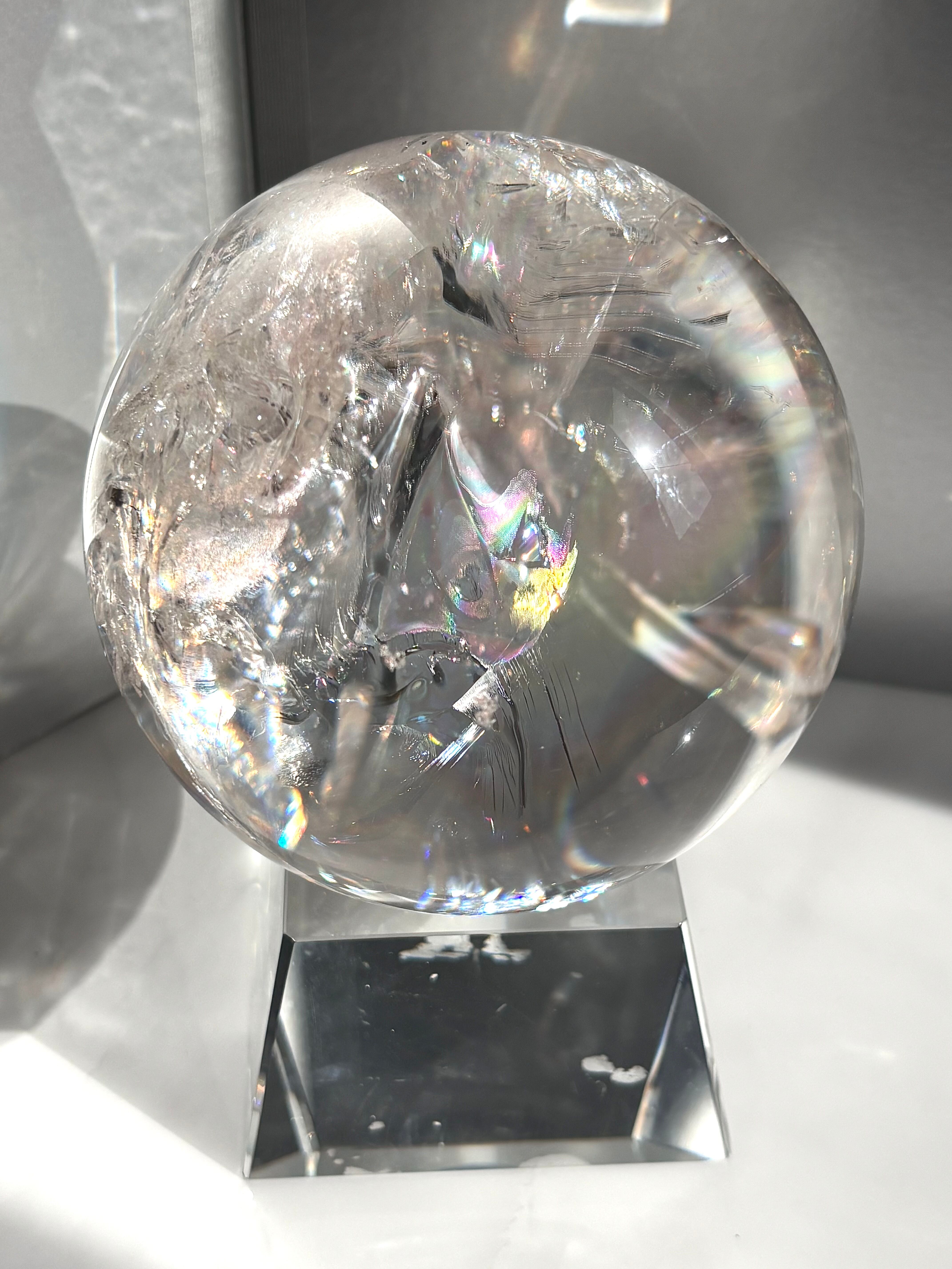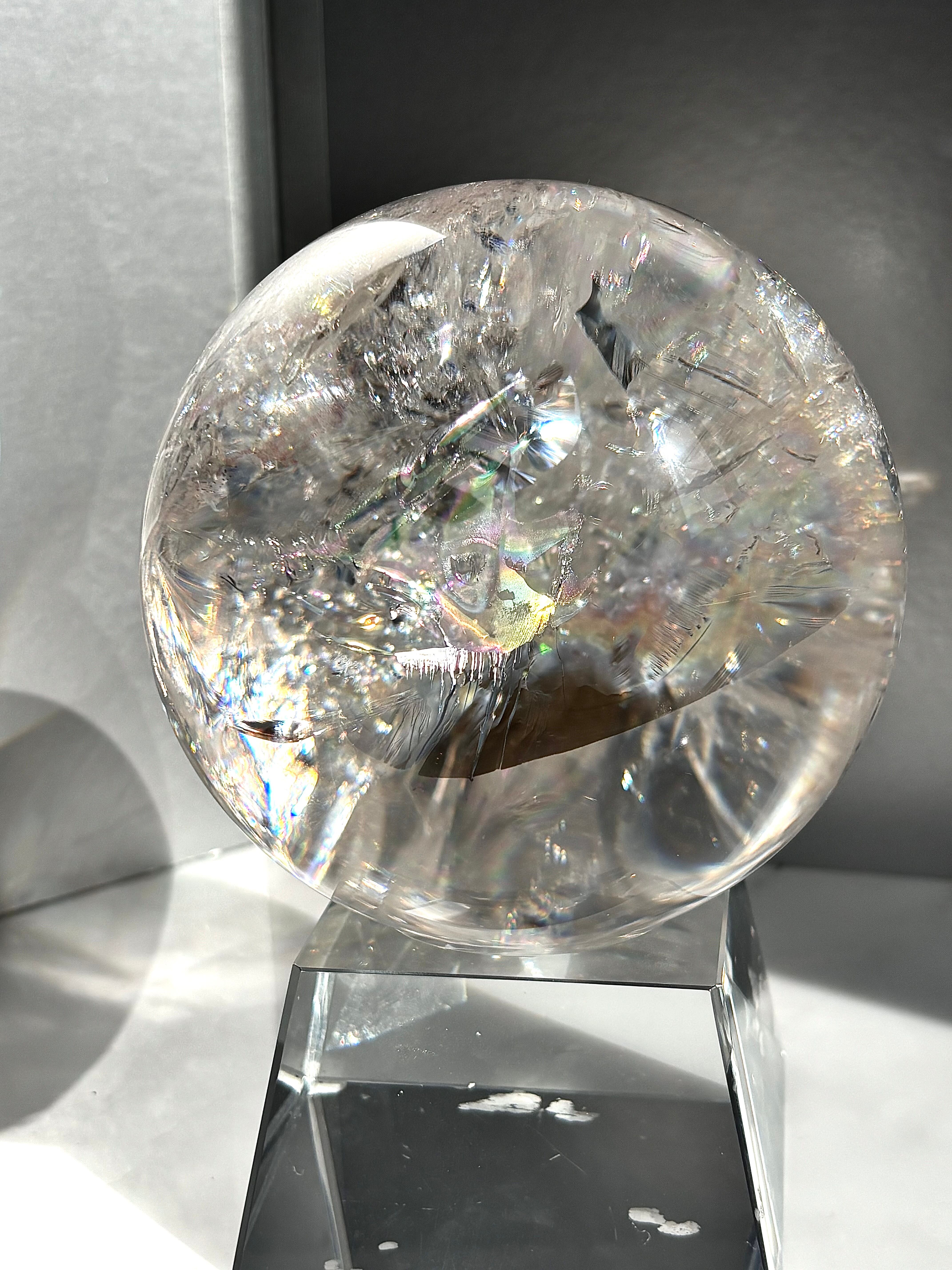 水そのものと言っても過言ではないほどのスーパークリア品質。うるうるとした質感に球体から浮かぶ大胆なアイリスレインボーが迫力の