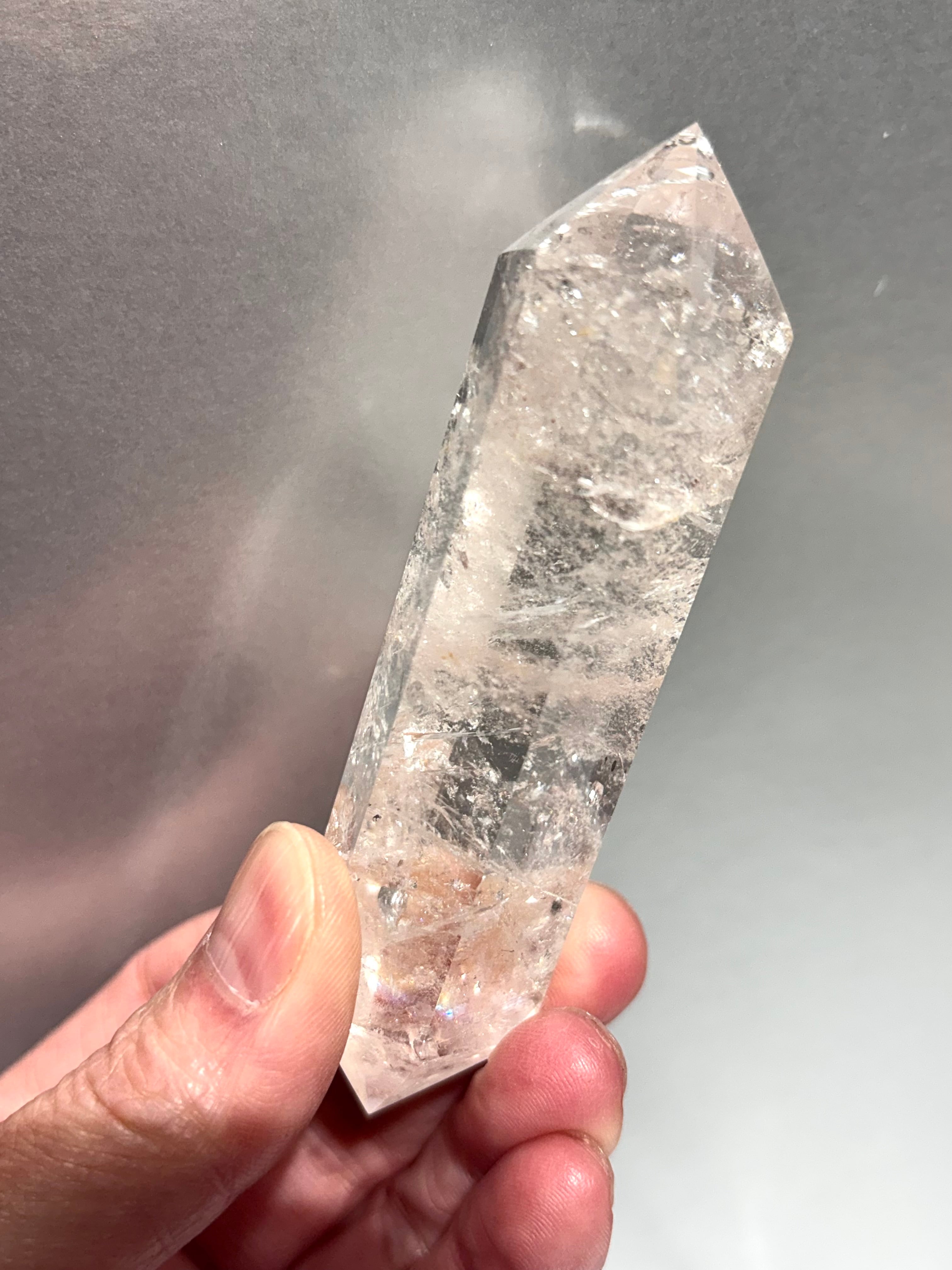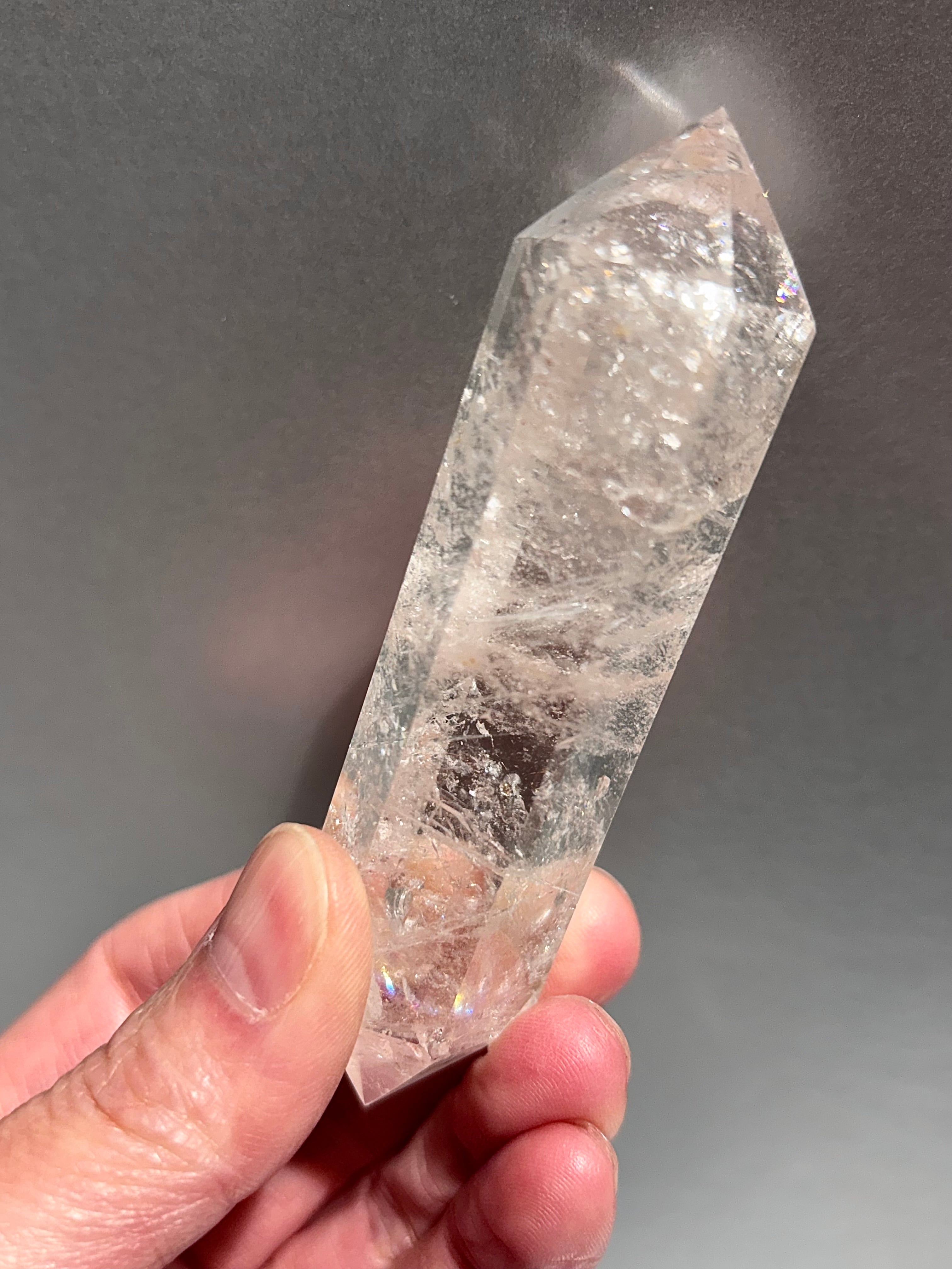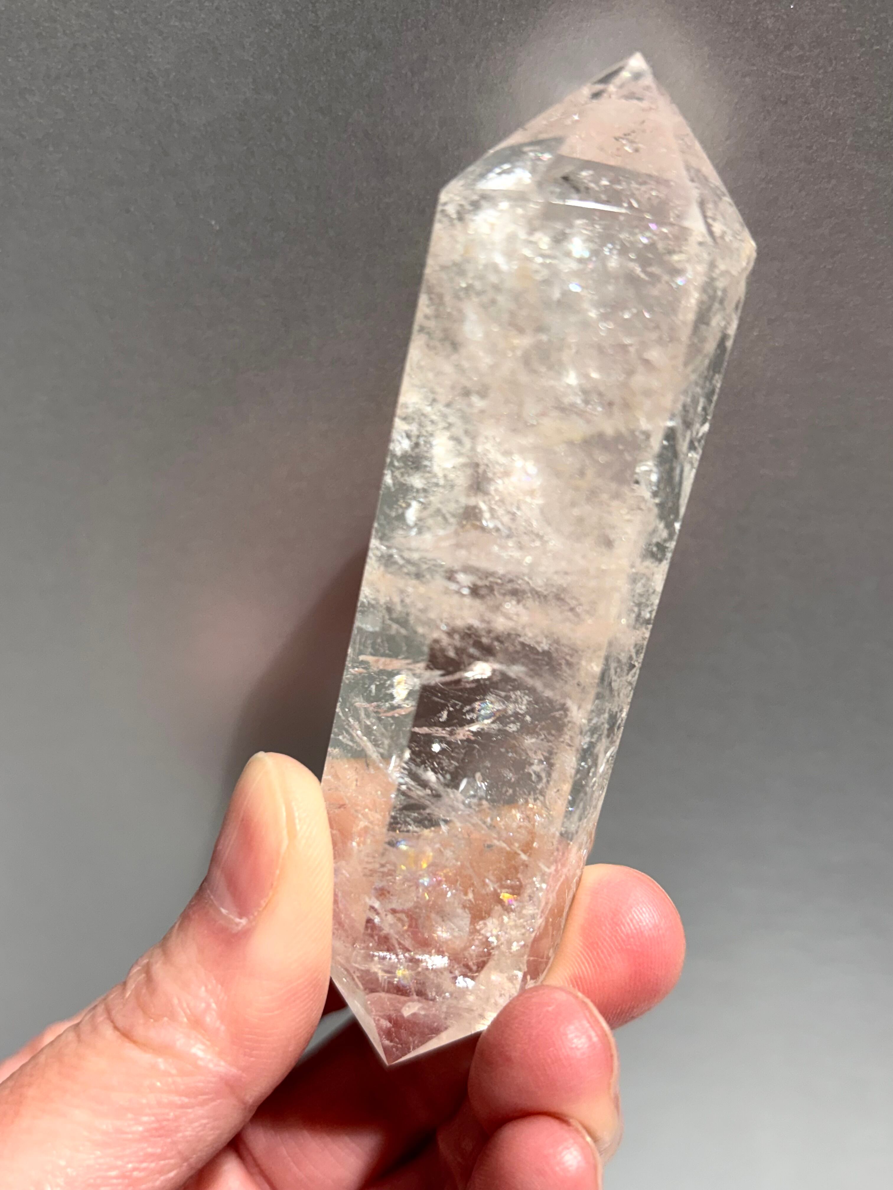 濃いめピンクカラーが魅力、キラキラとした虹が確認できる美しいピンククォーツポイント*