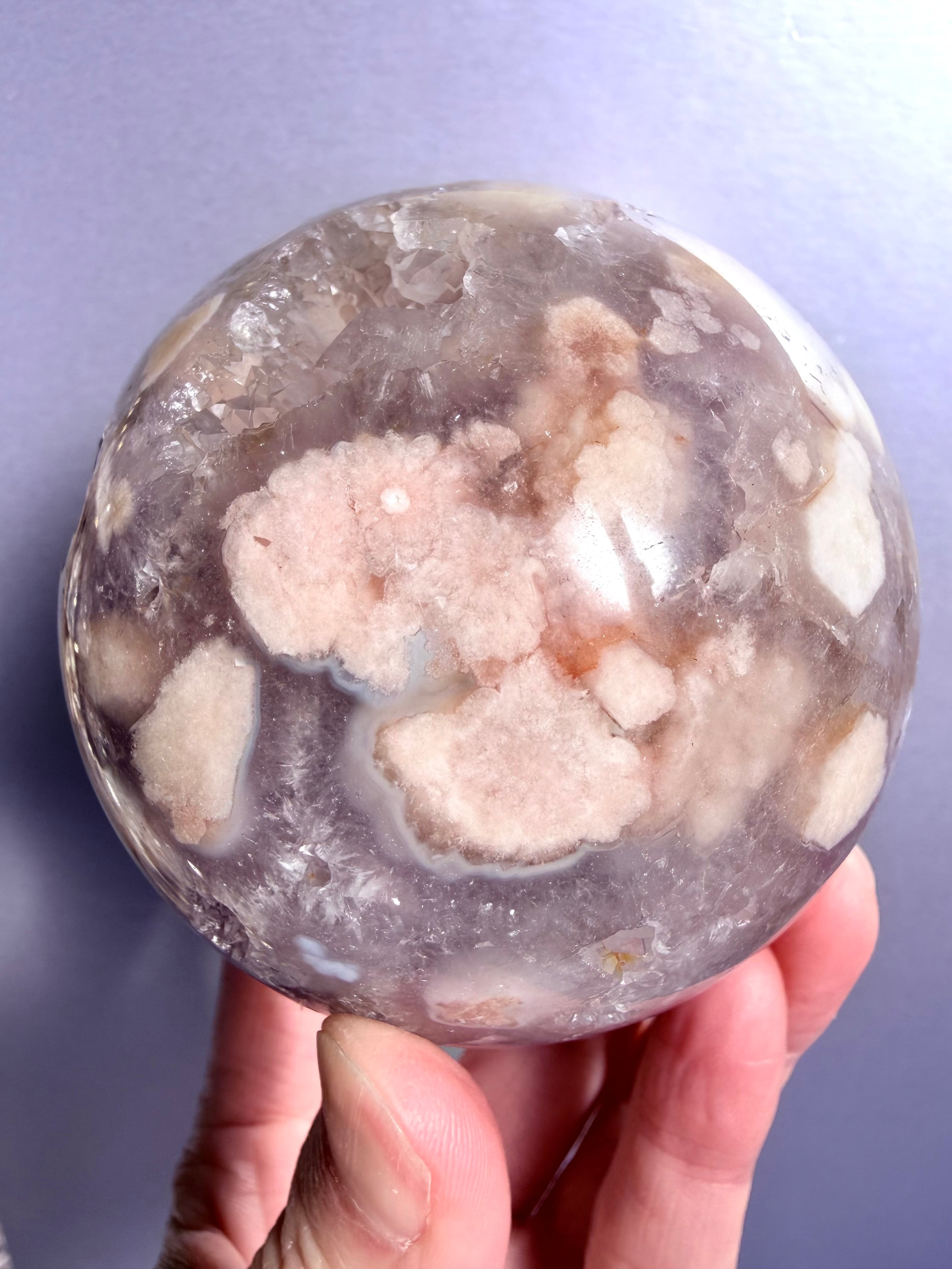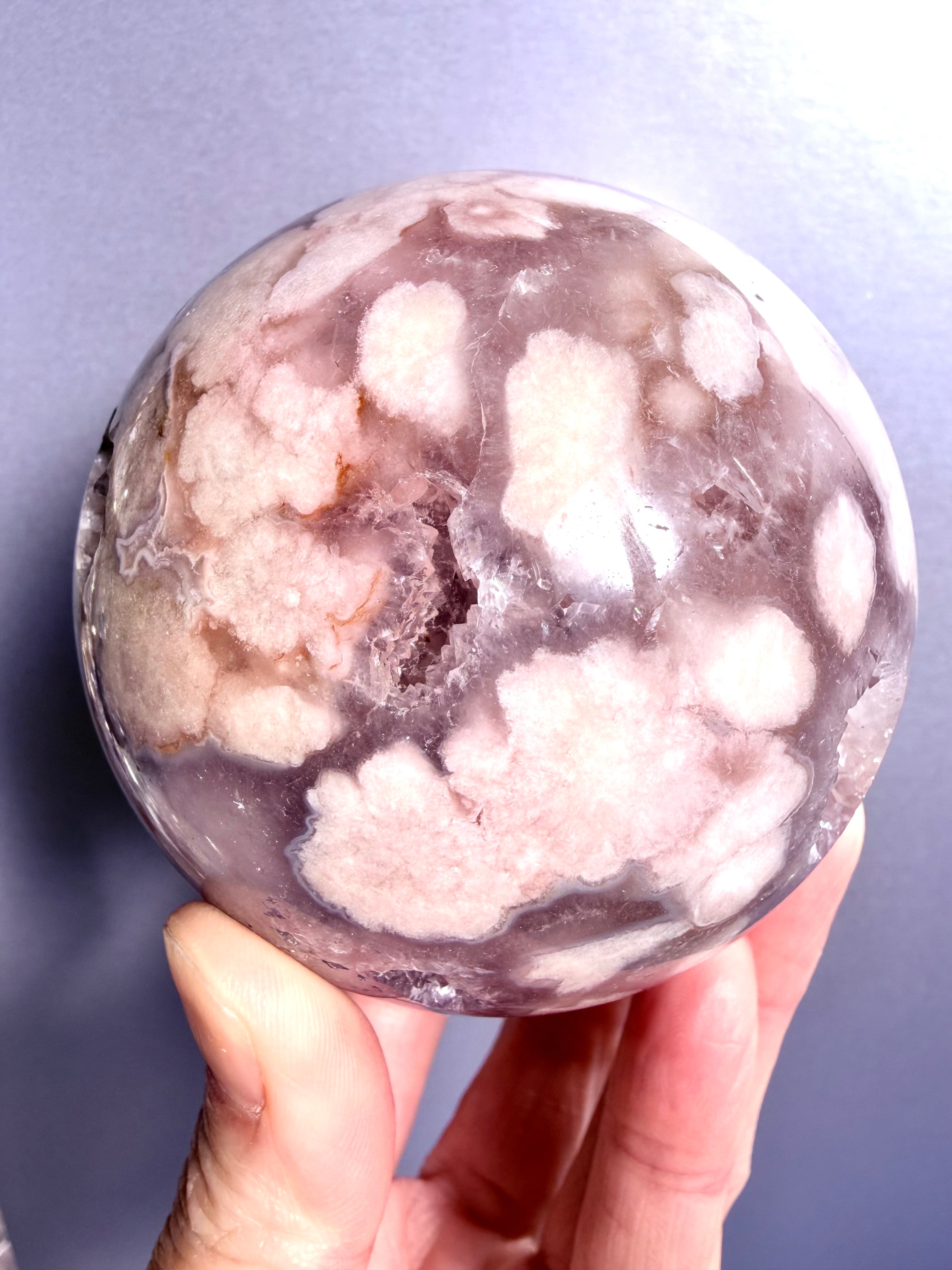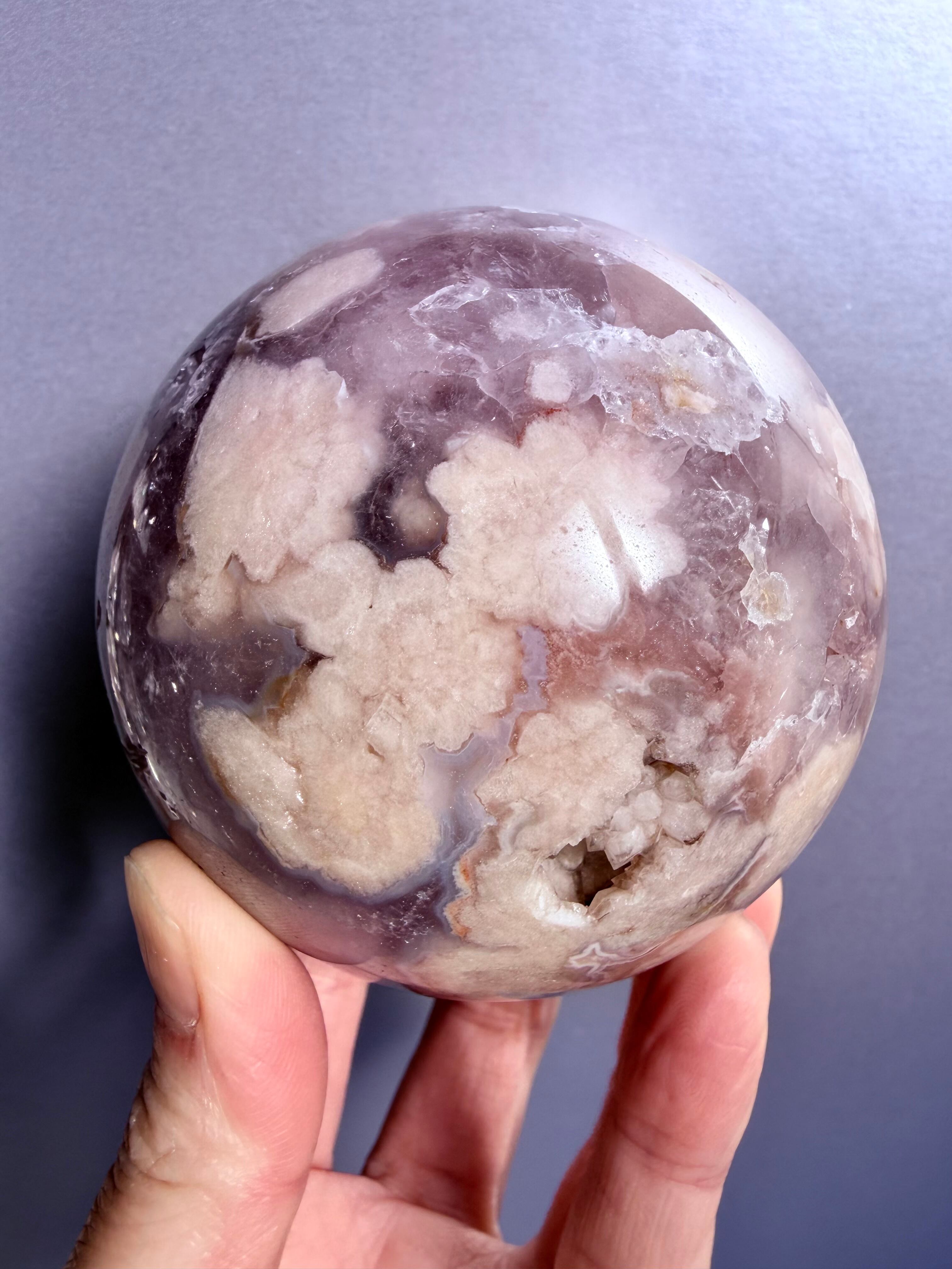 極上品質の桜瑪瑙アメジストスフィア77㎜になります。
