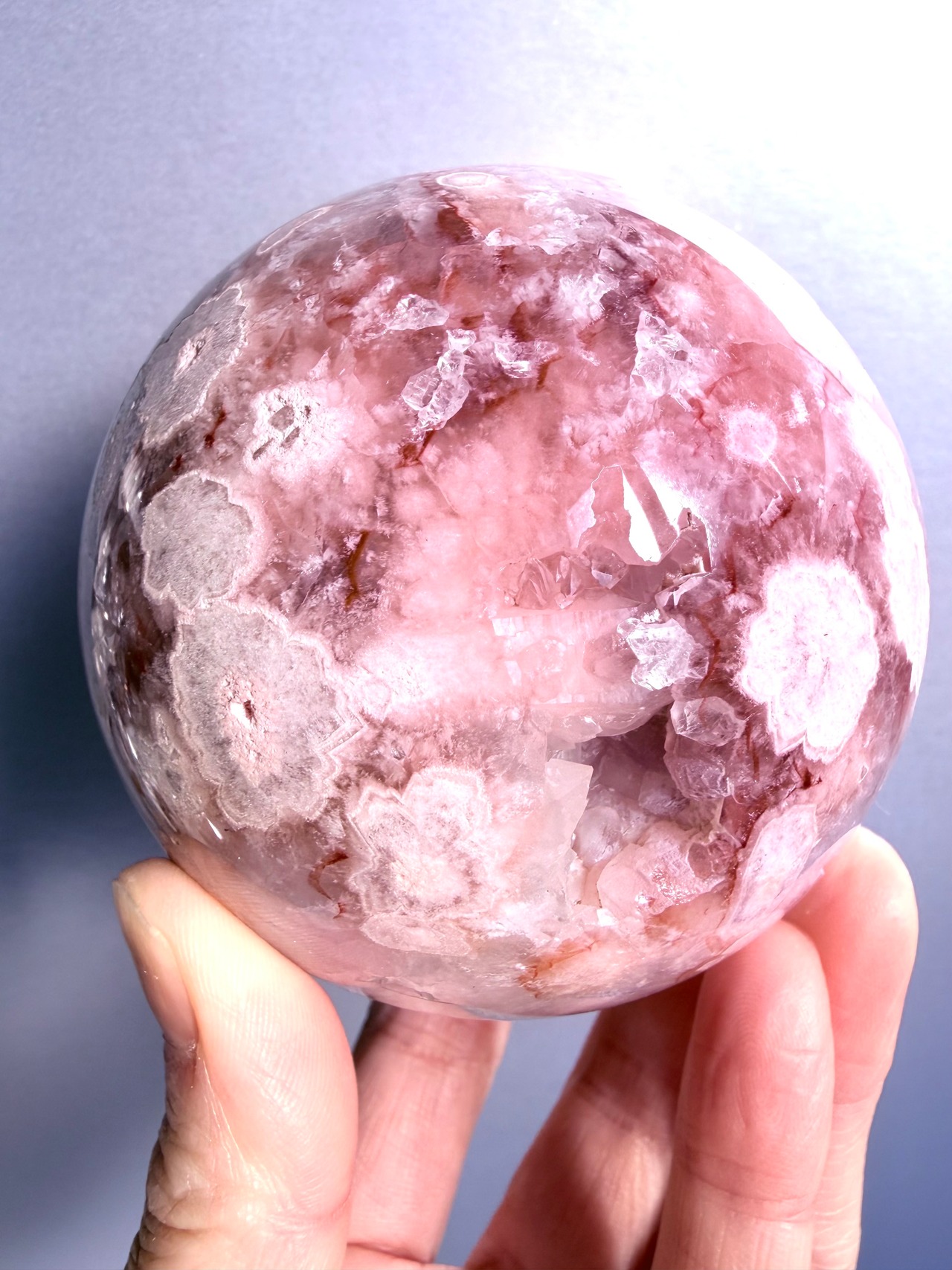 極上品質の桜瑪瑙アメジストスフィア80㎜になります。