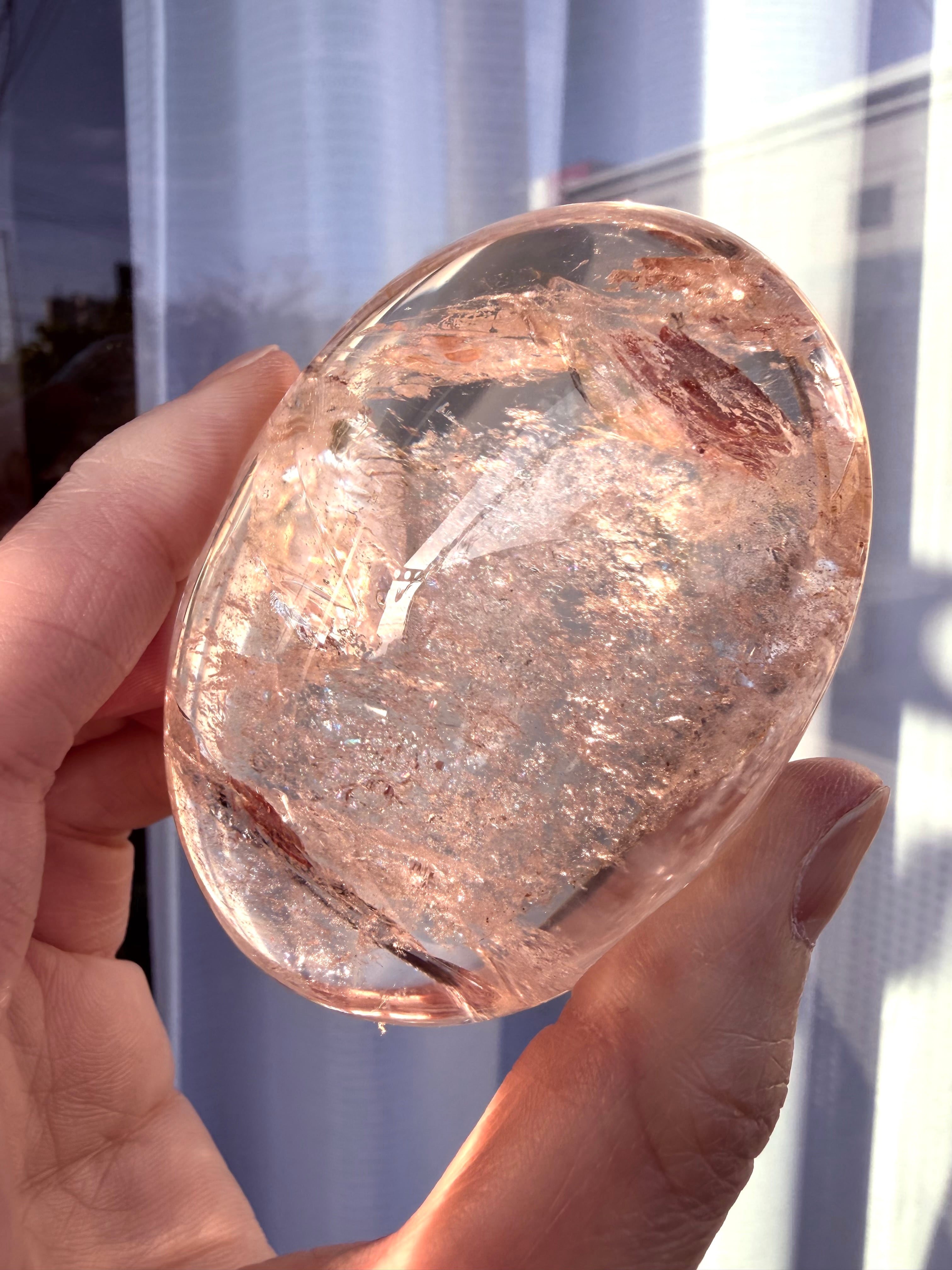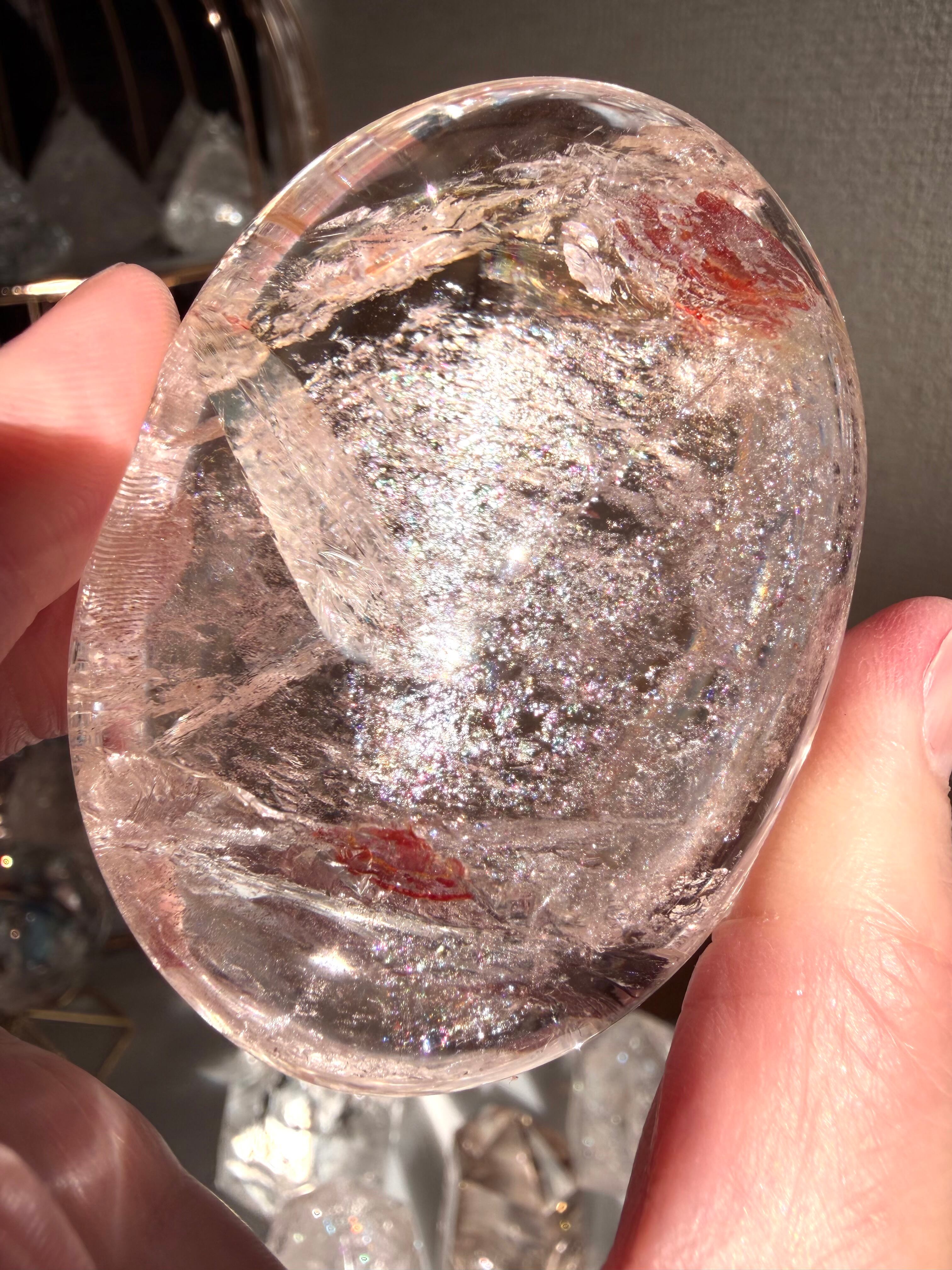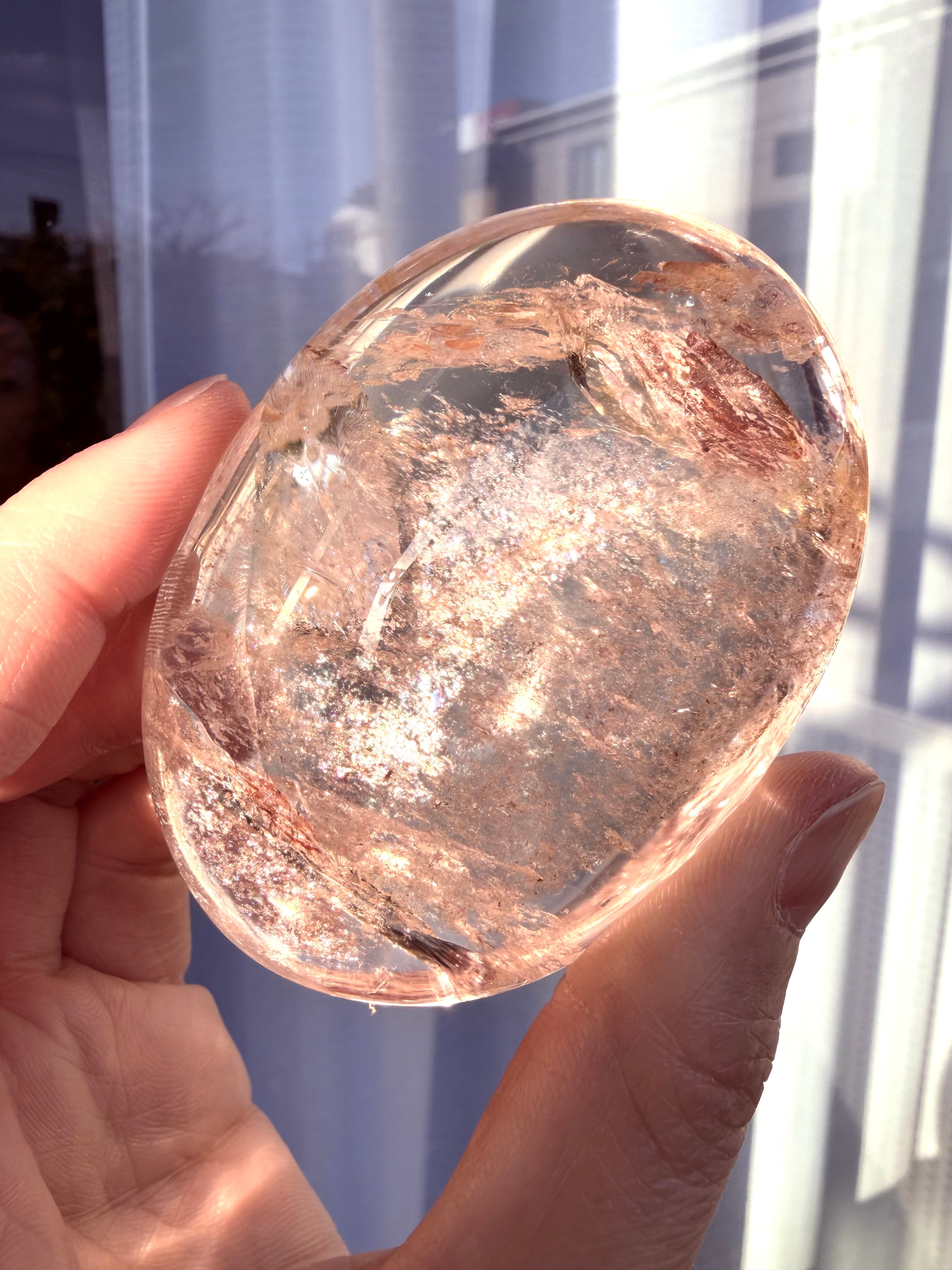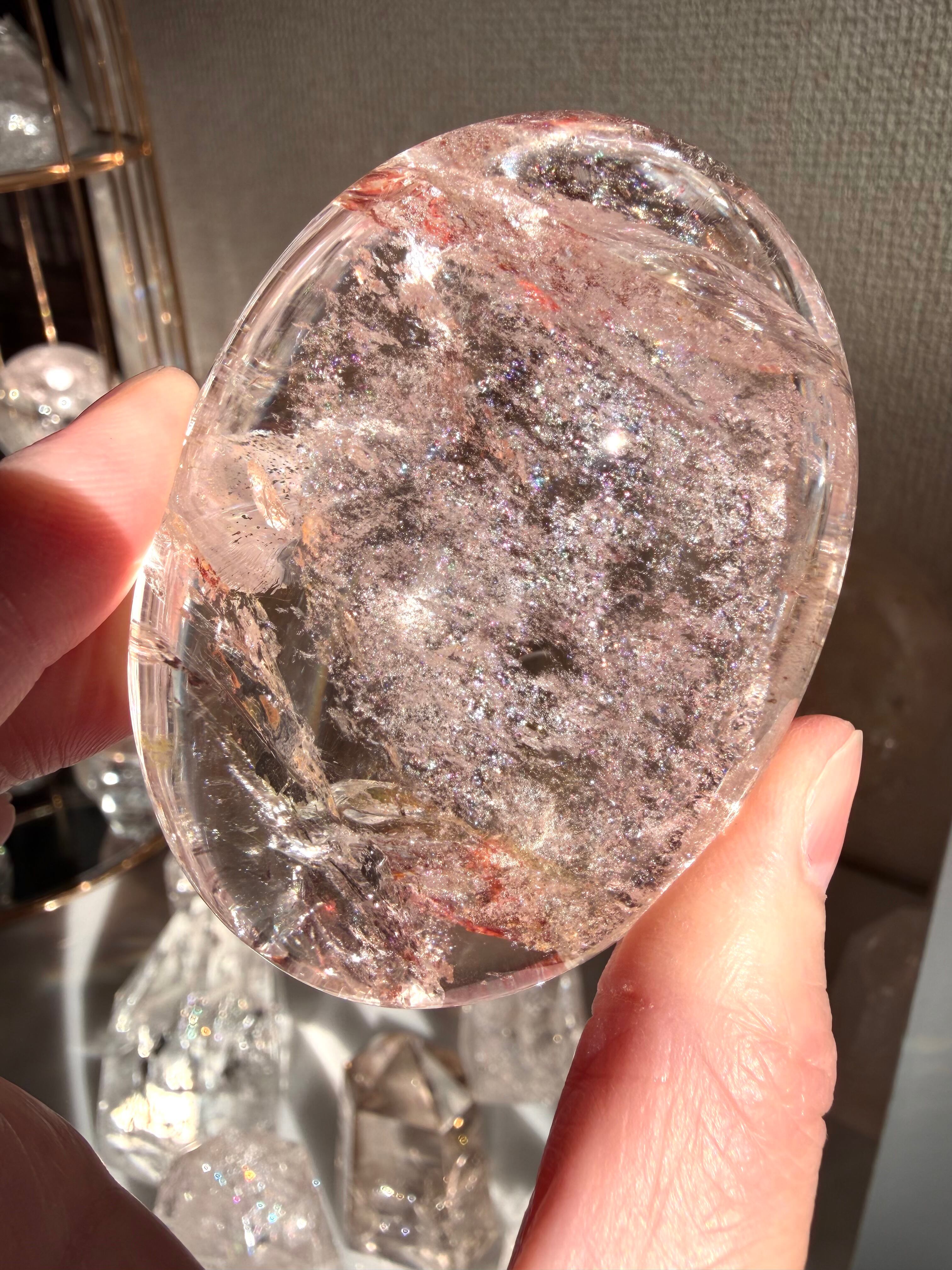 珍しいローズピンククォーツパームの登場です*ローズピンクの個体から放たれる微細なラメラメアイリスが大変華やかで美しくハッピーandお色気オーラ全開のパームさんです。