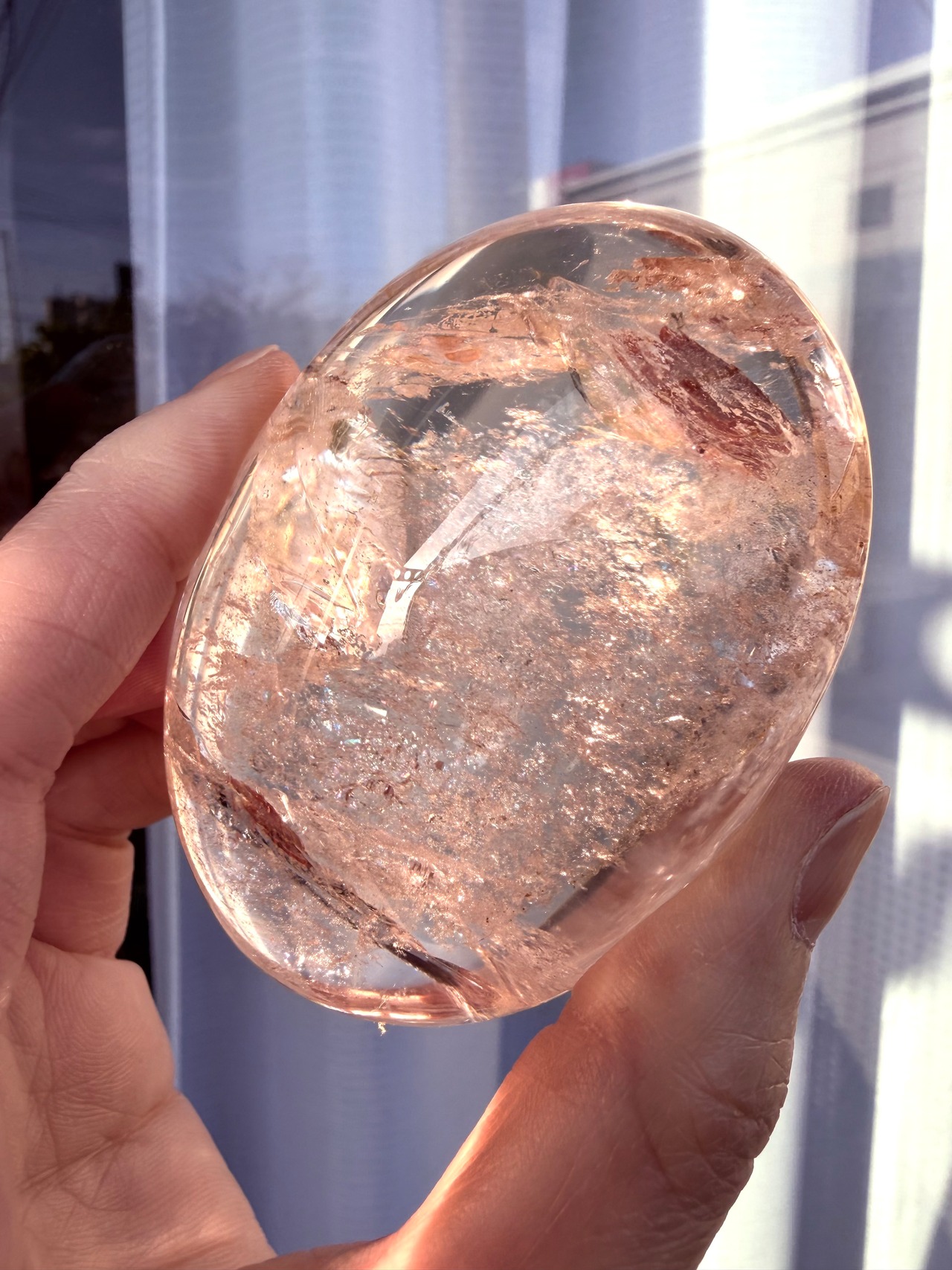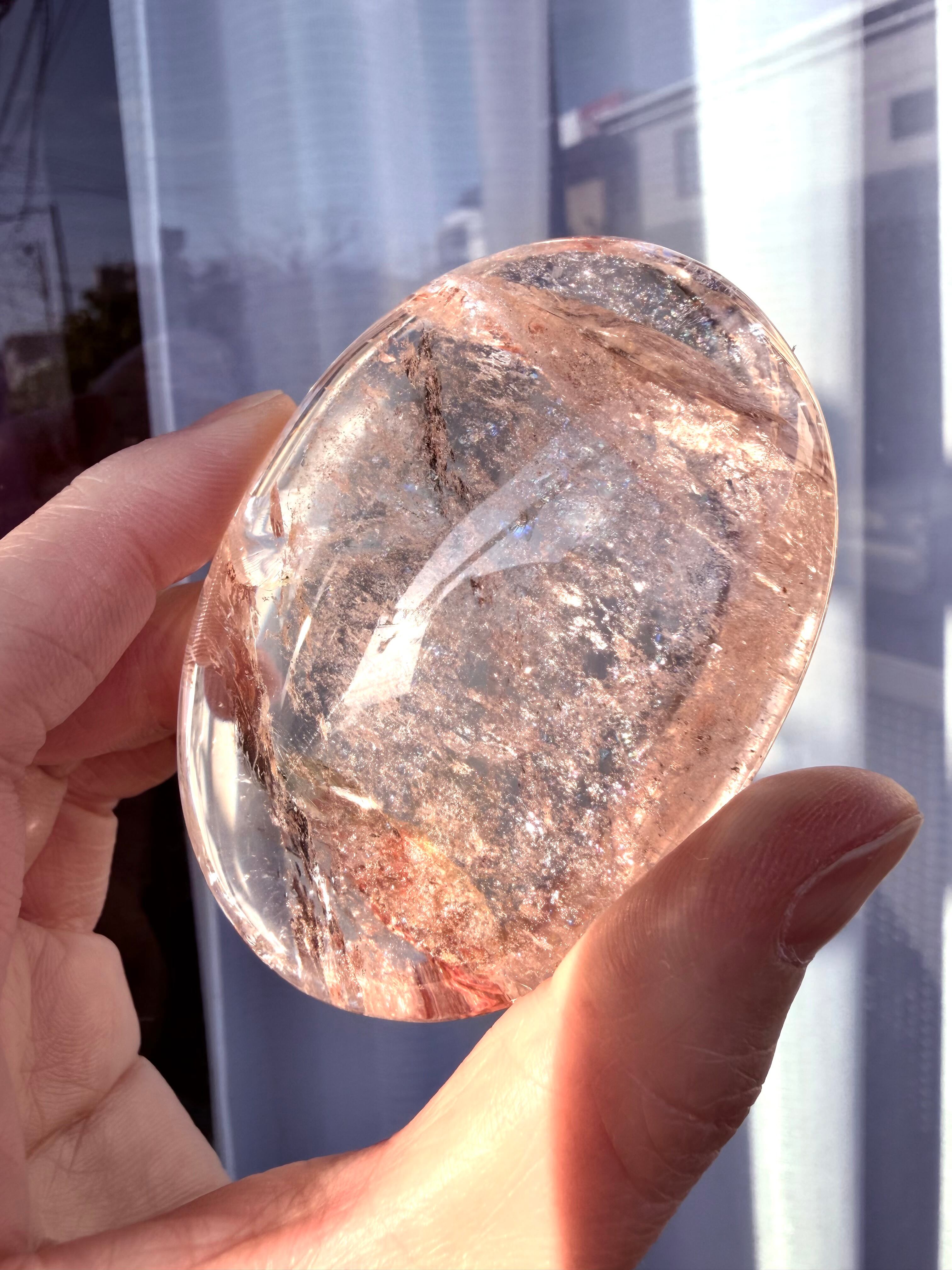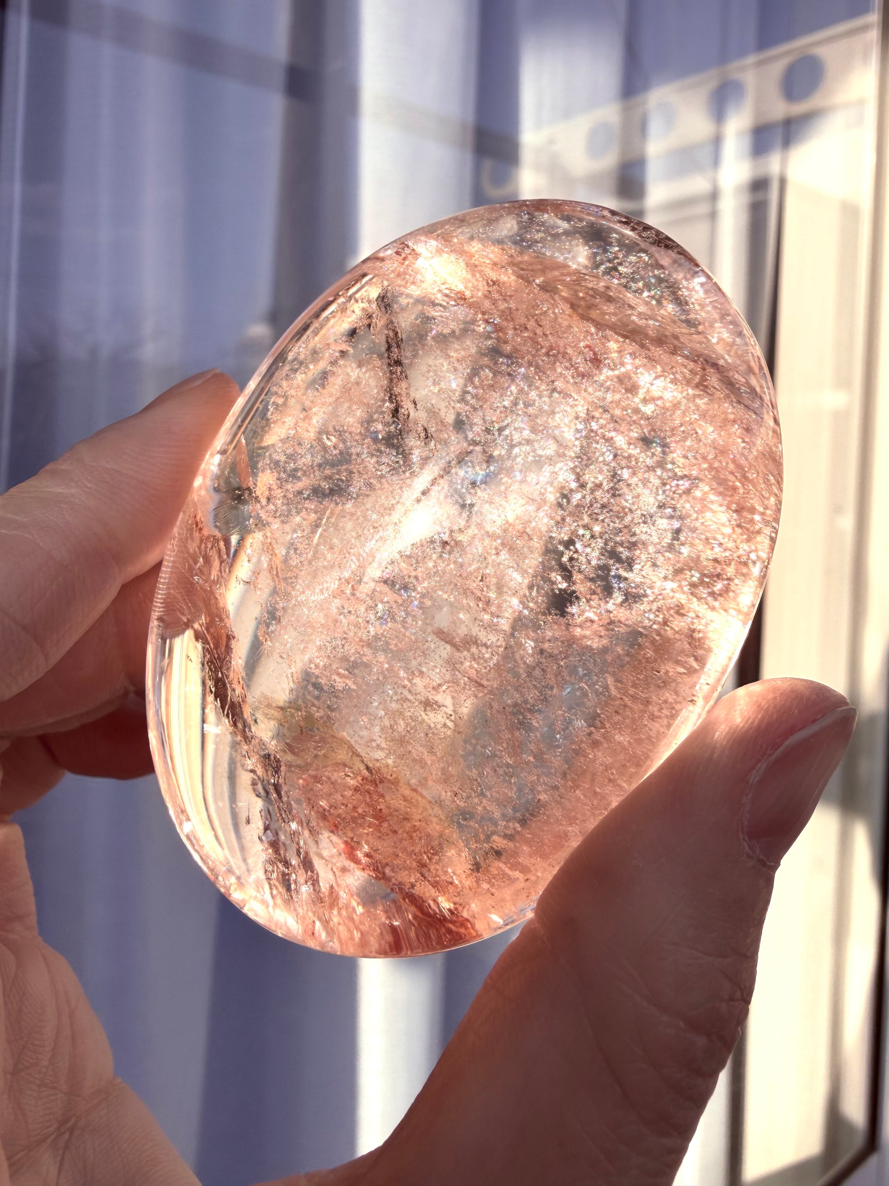 極上品質のローズアイリスレインボーピンククォーツパームになります。