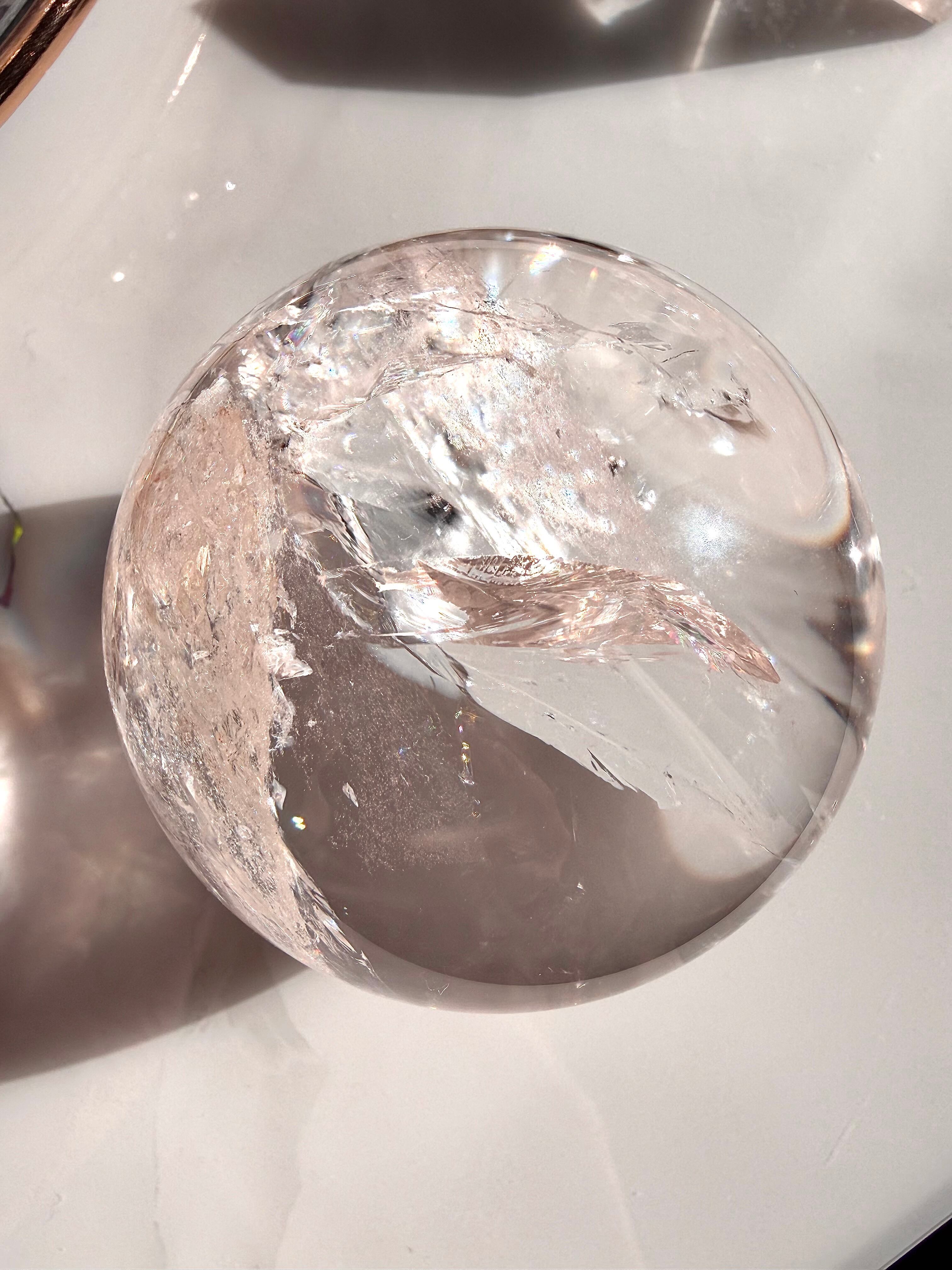 極上品質のアイリスピンククォーツ アゼツライトスフィア65㎜になります。