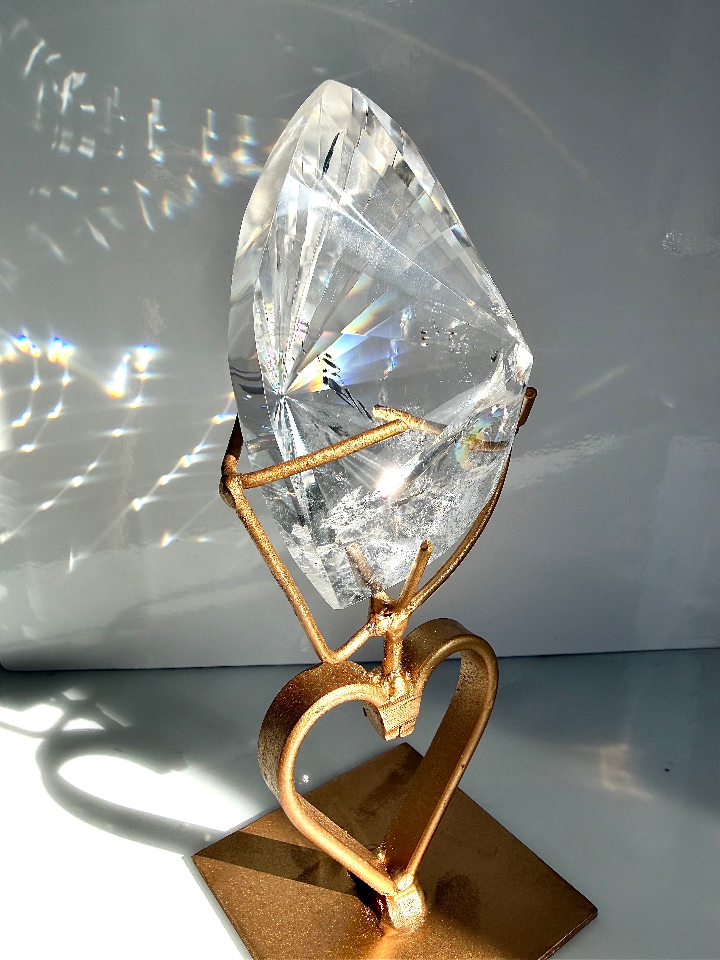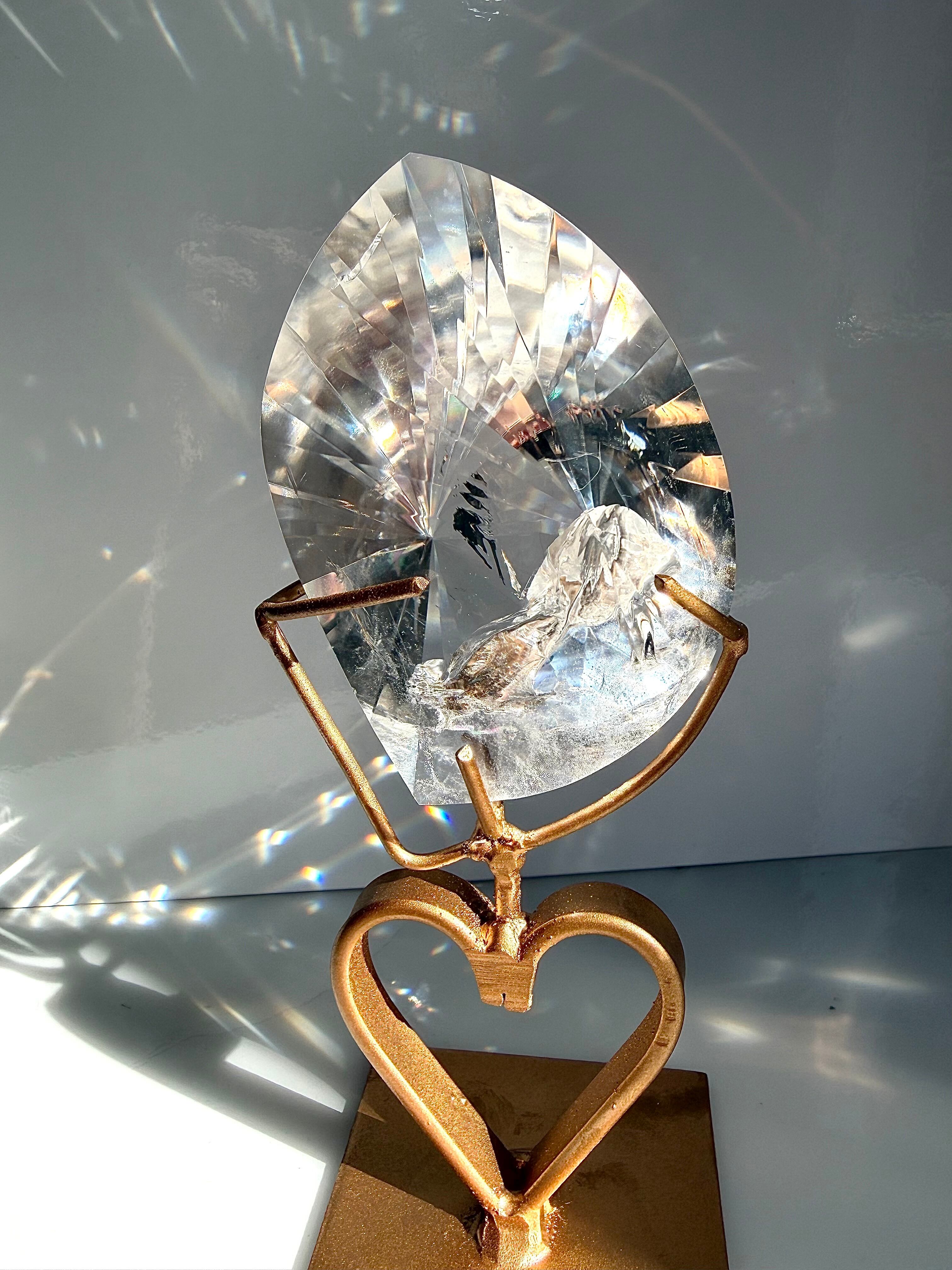 こちらは磨きのレムリアンクォーツですので原石のような条線は確認できませんがレムリアンシード特有の輝きを限界まで際立たせたまさに職人さんの匠と言えるカッティング。