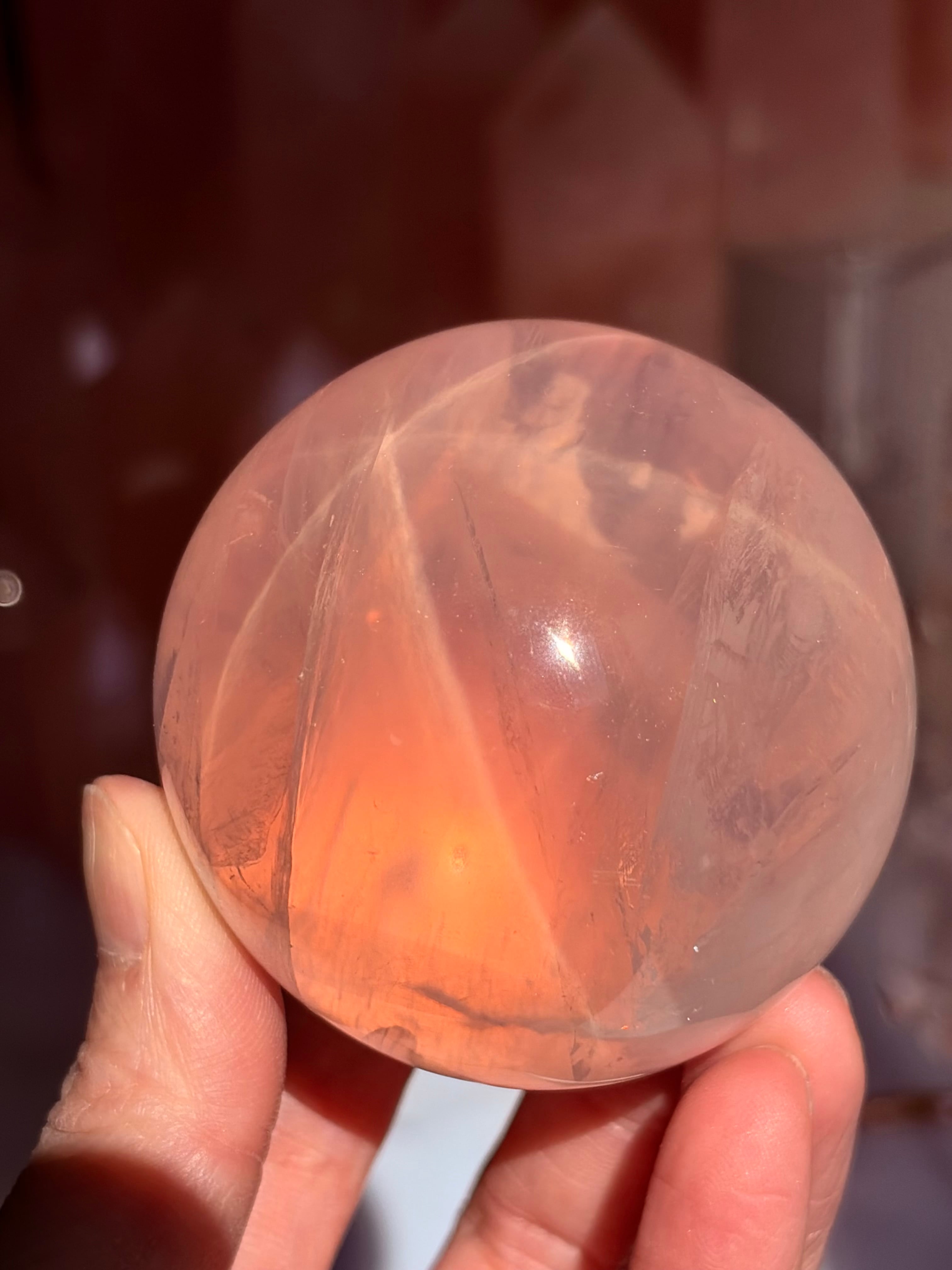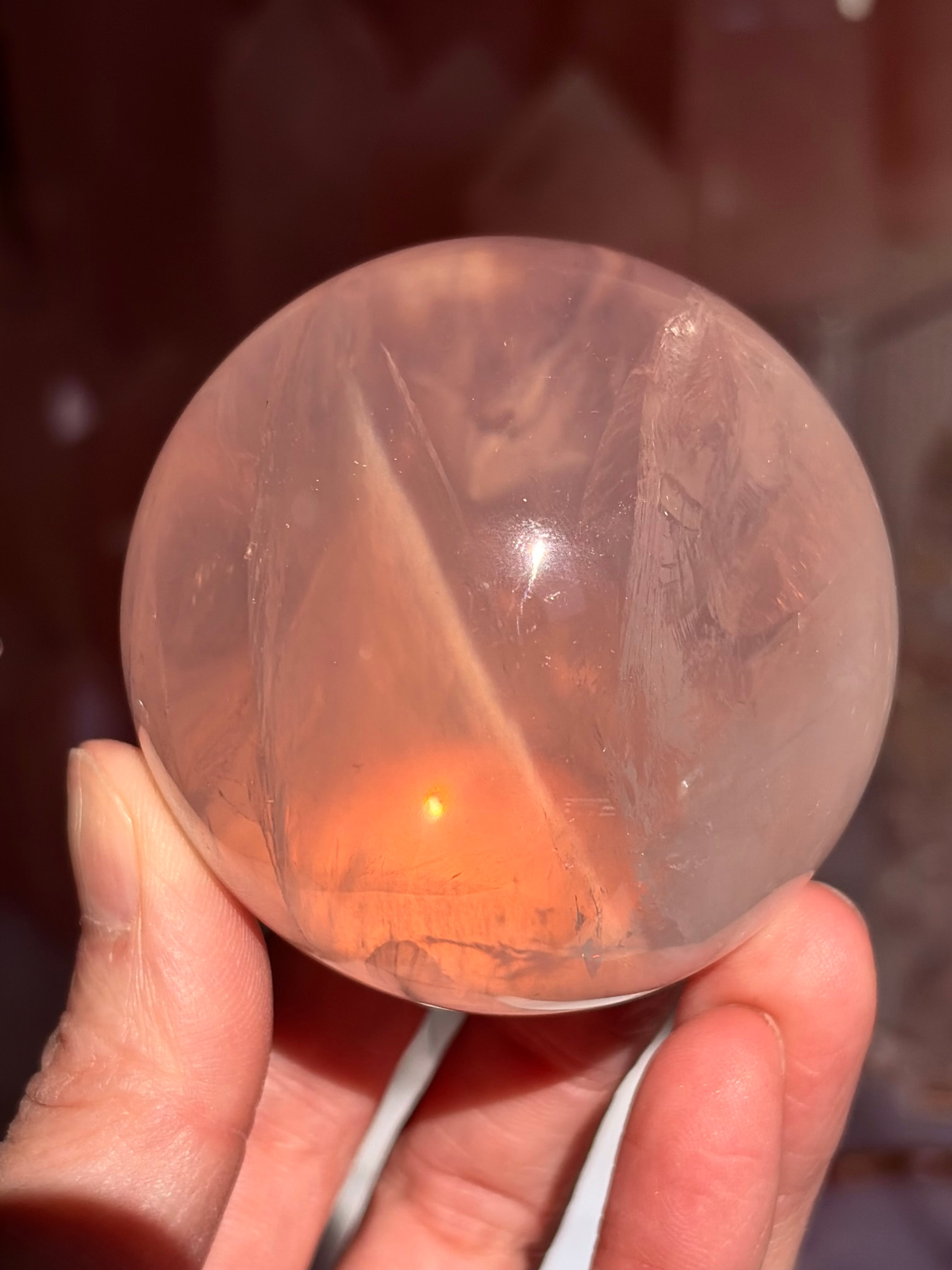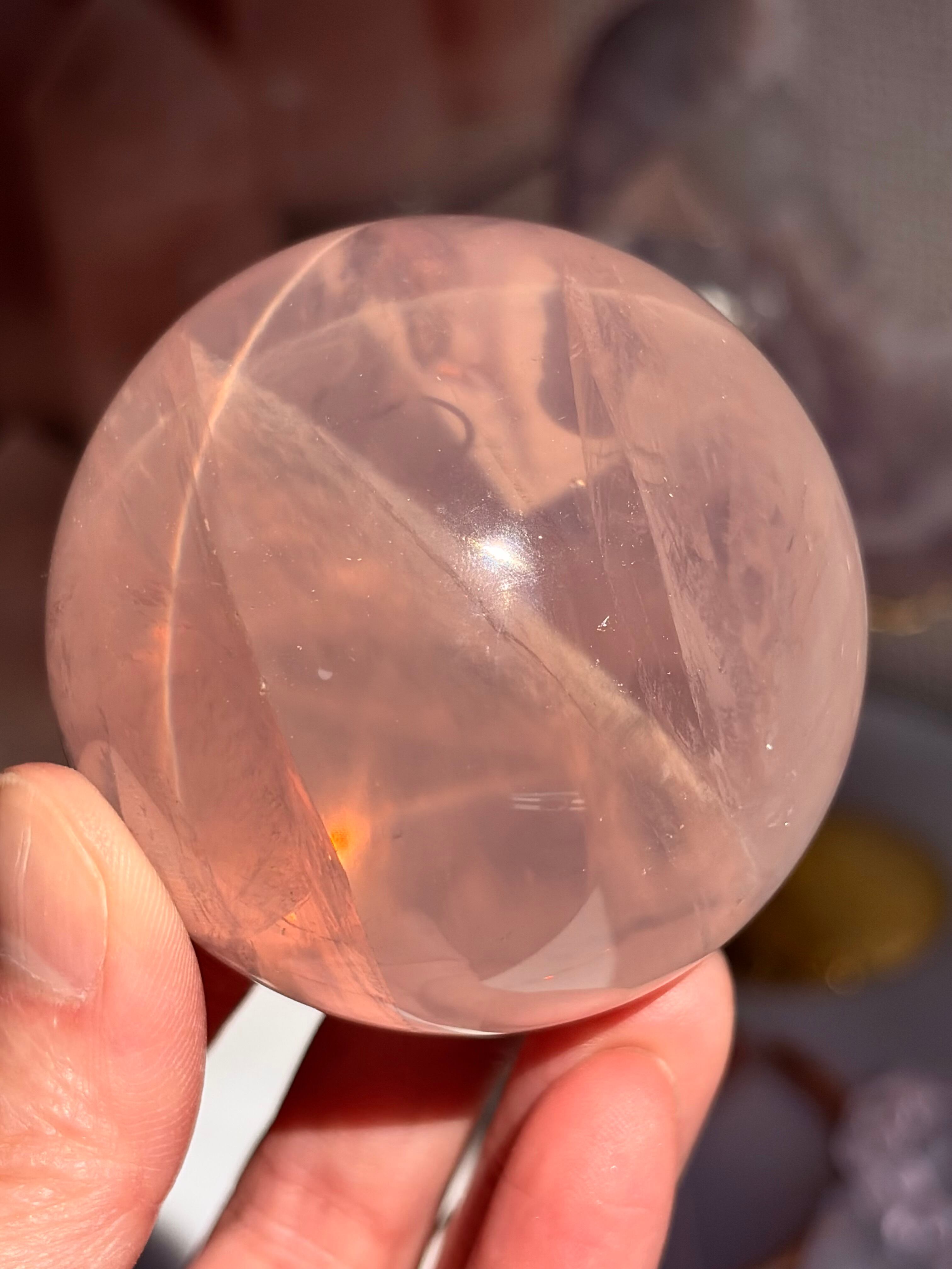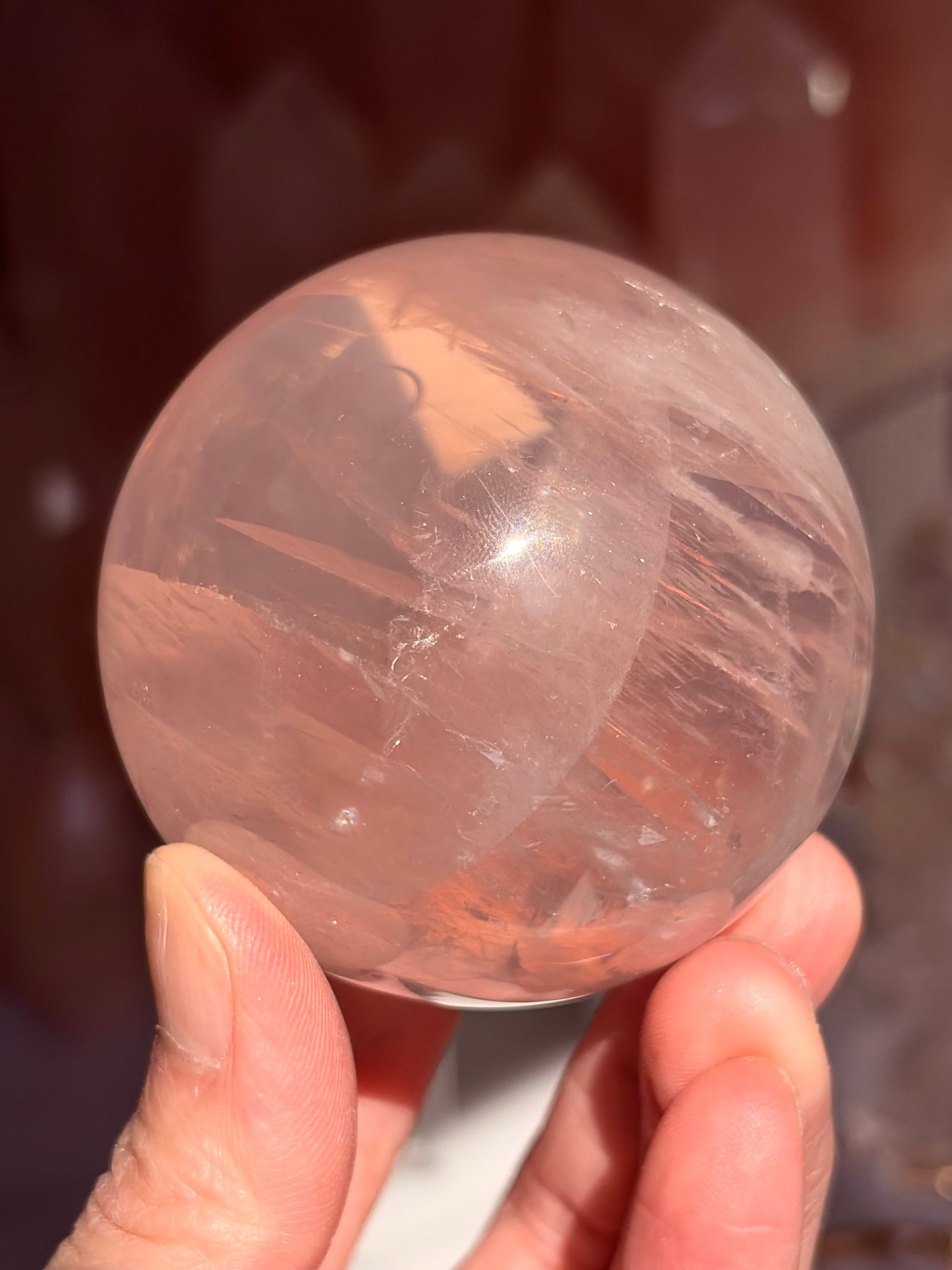 マダガスカル産、極上品質のローズクォーツクォーツスフィア57㎜になります。