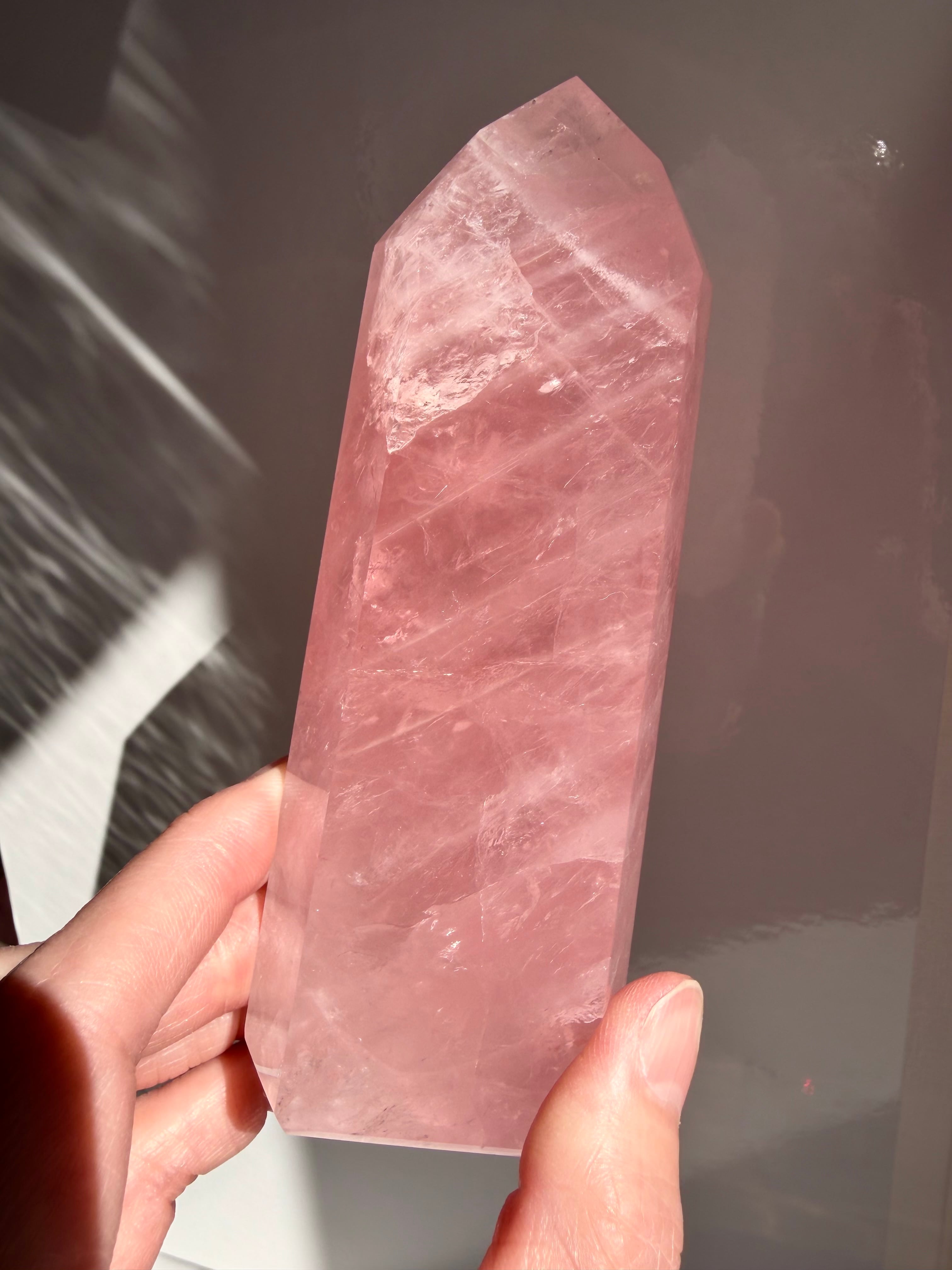 オーナー自身が個人コレクションにしたいと思うほどの驚くほど美しいローズクォーツポイントをお届けいたします。