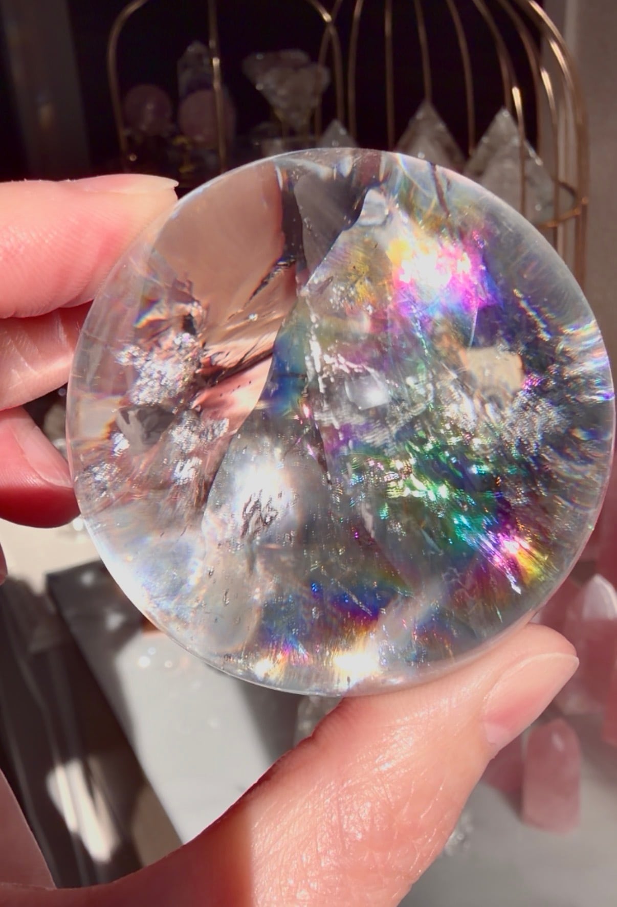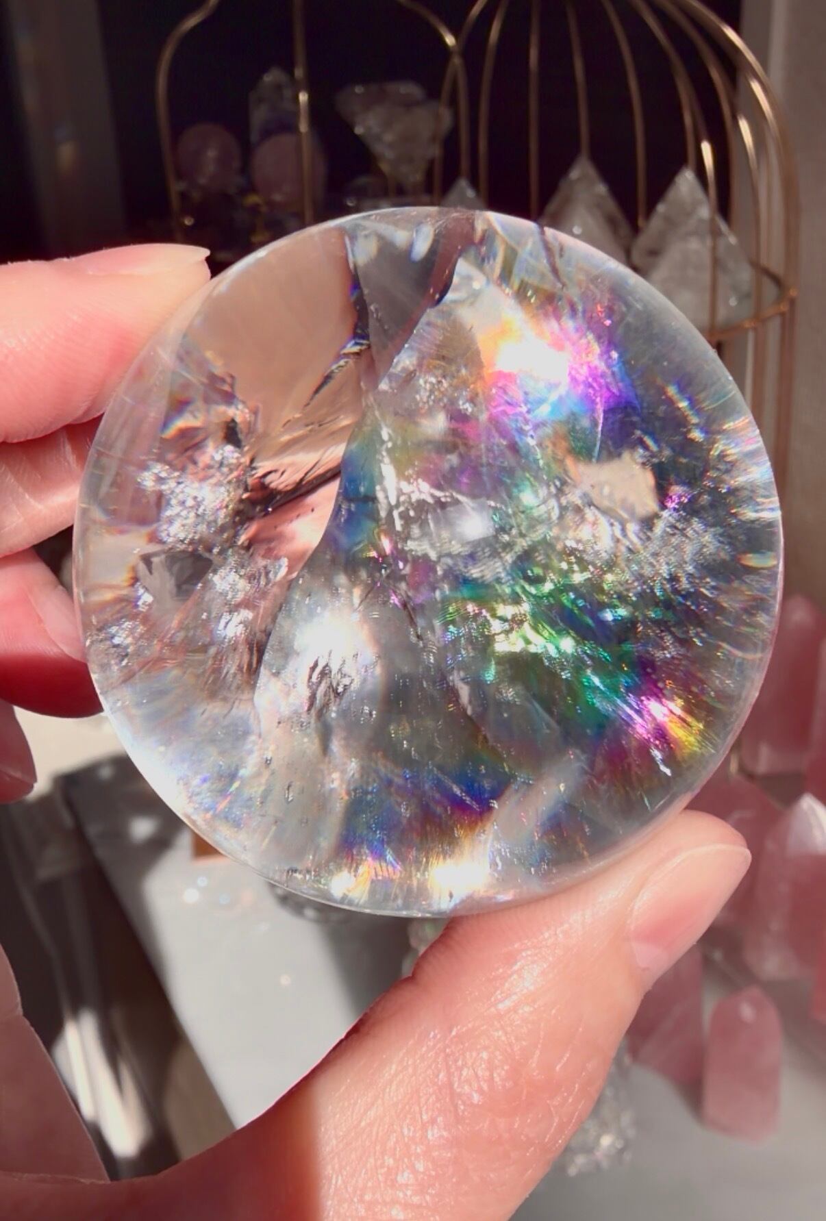 ここまで透明度が高くきらめくレインボーの水晶は希少です☆