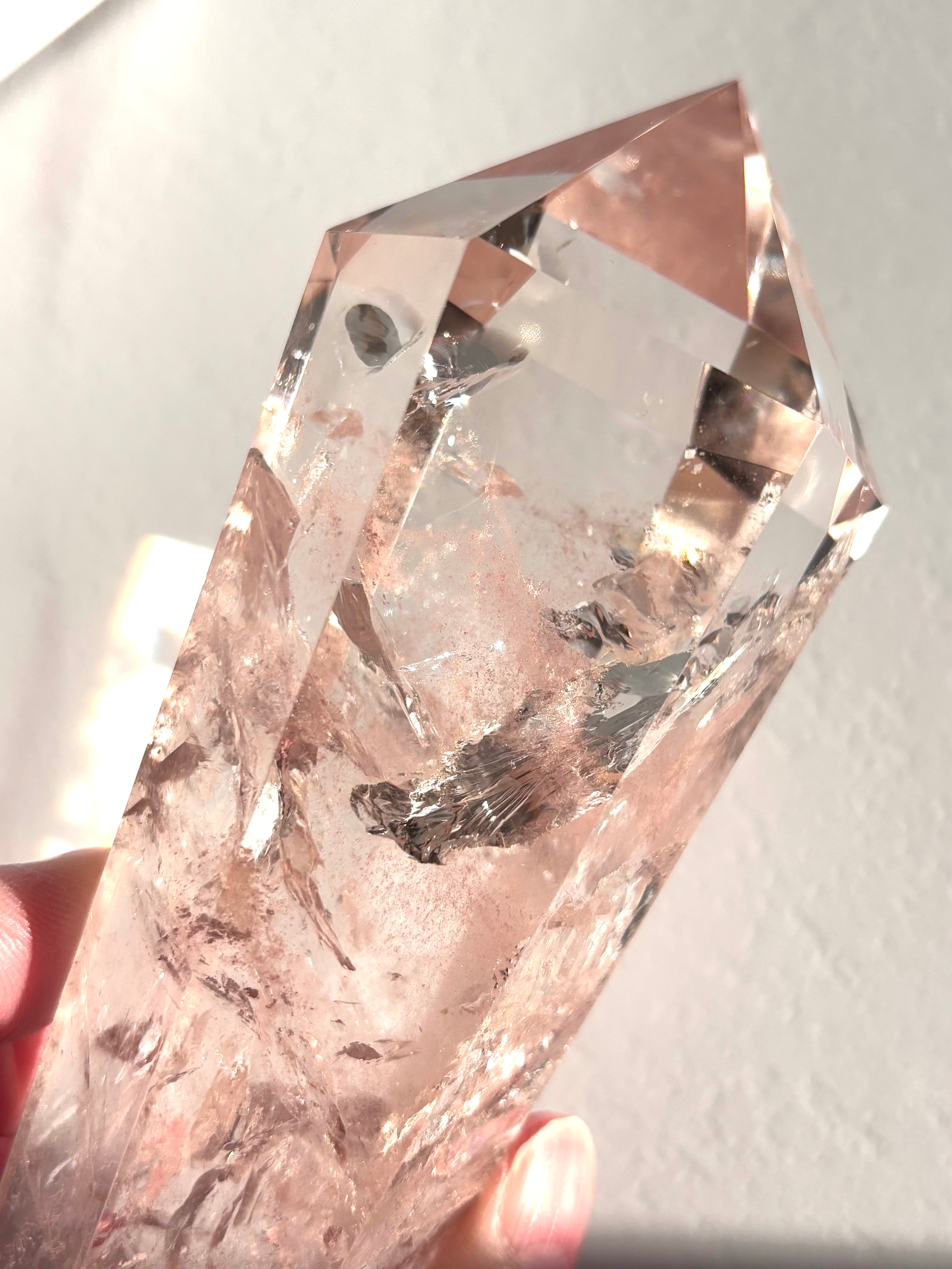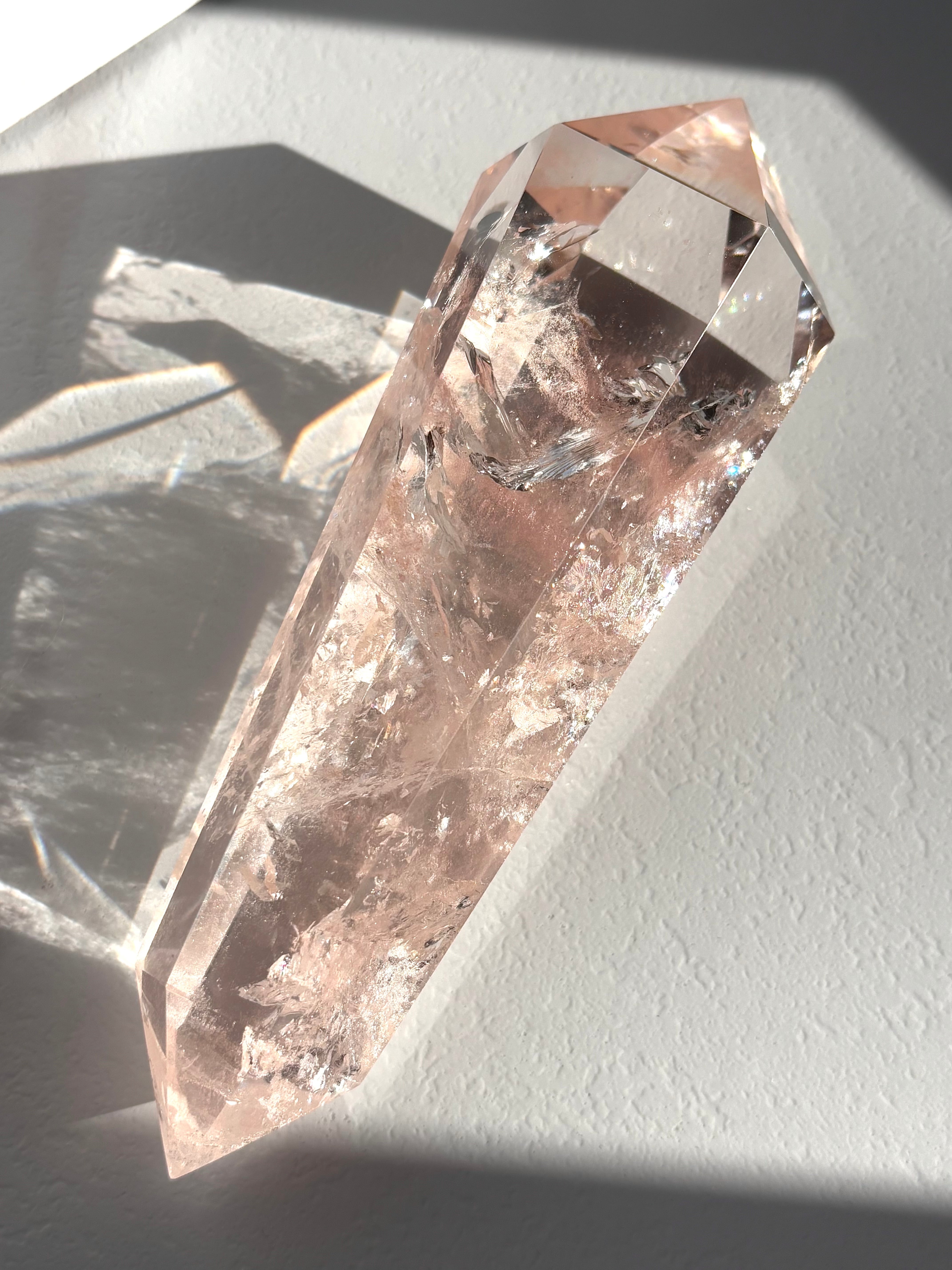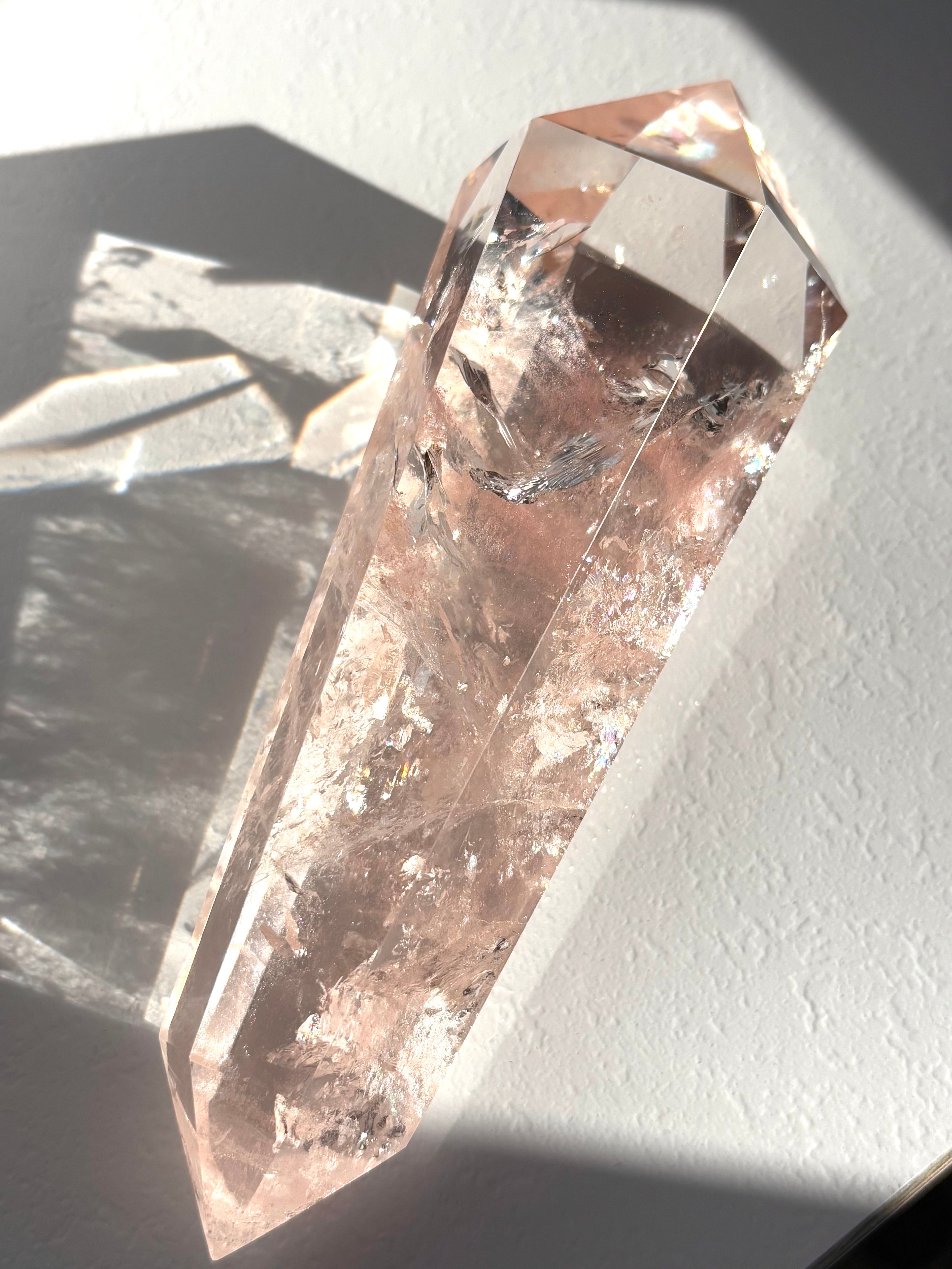虹キラキラ、極上品質のピンククォーツポイントになります。