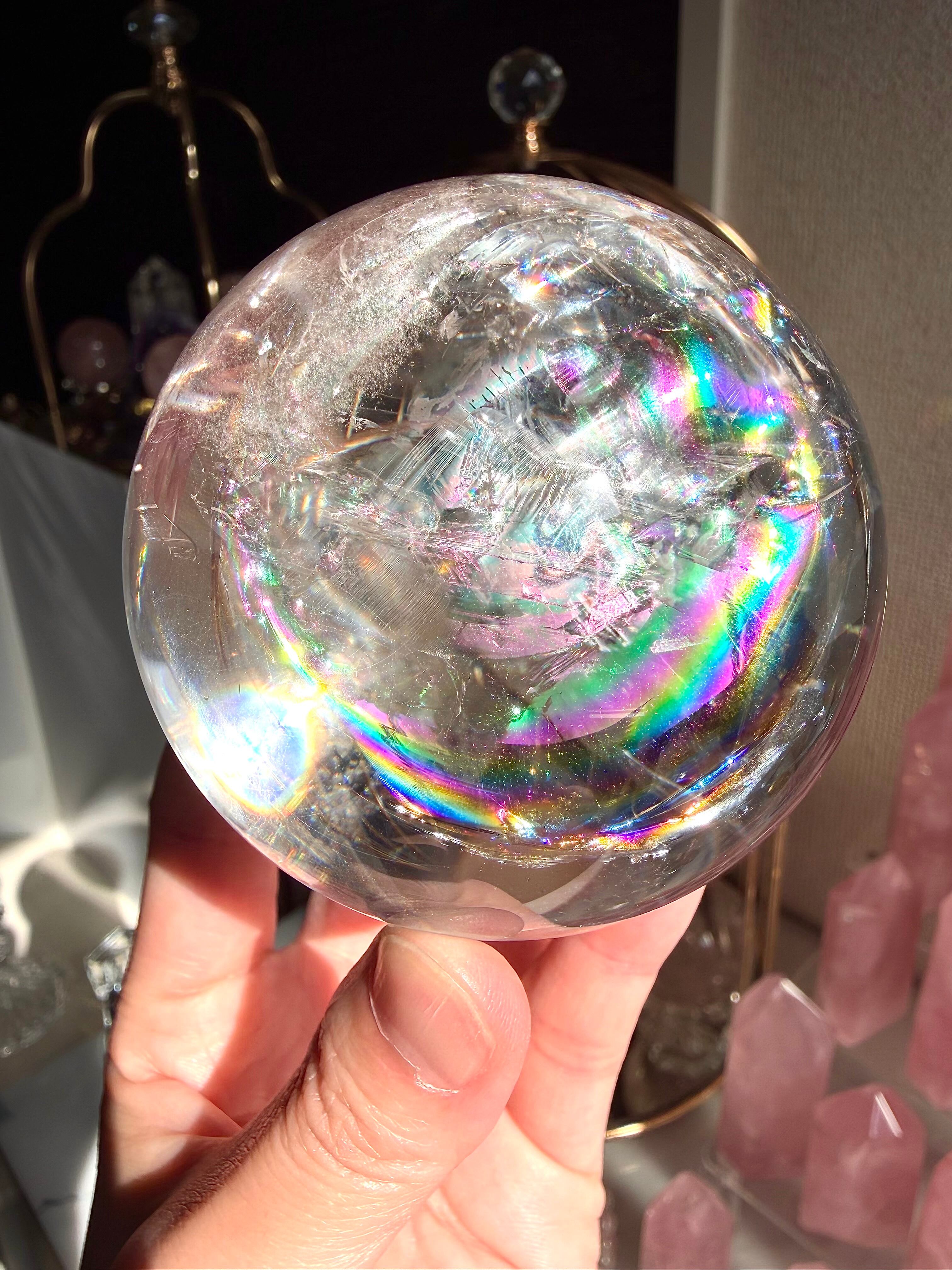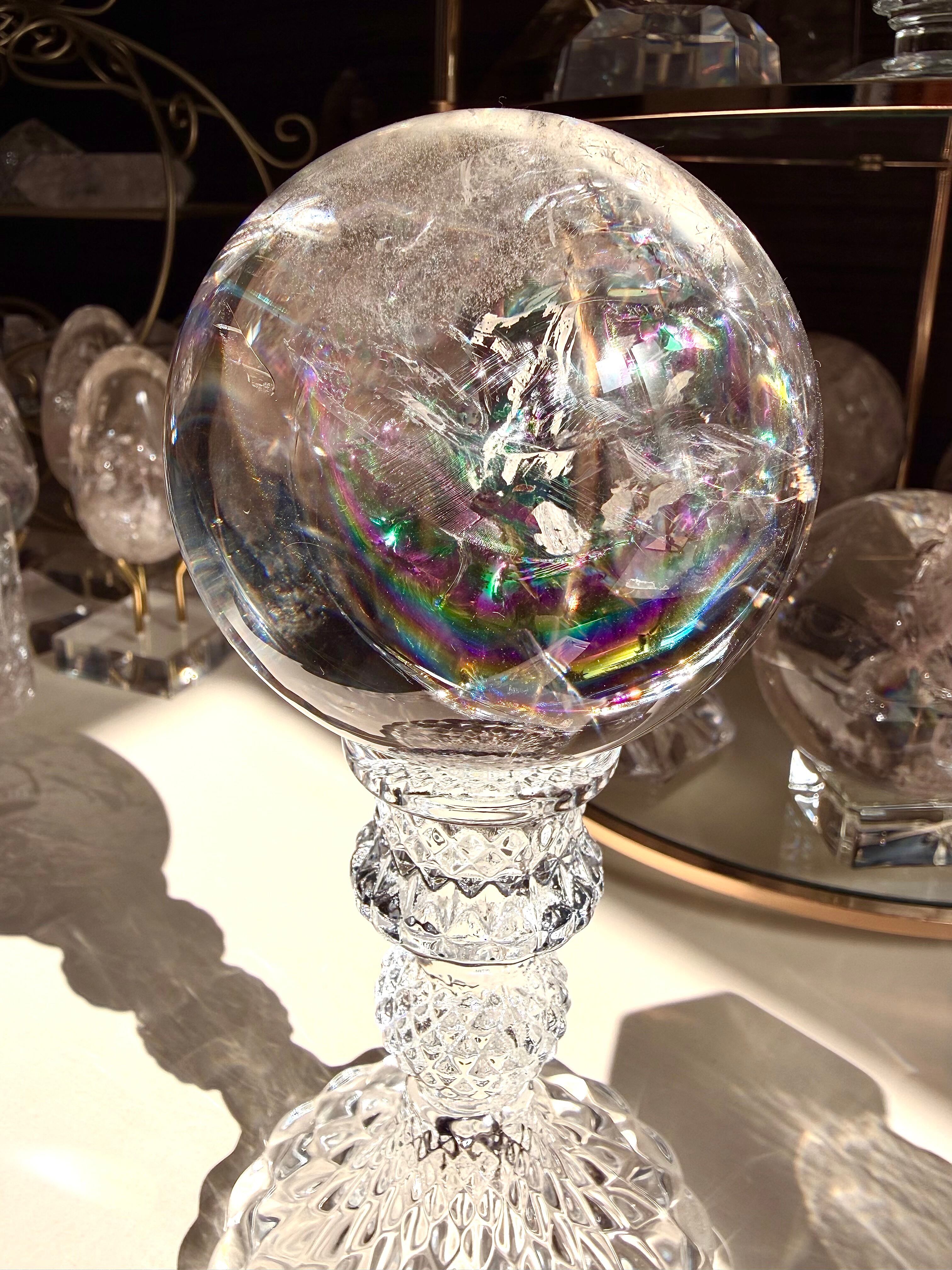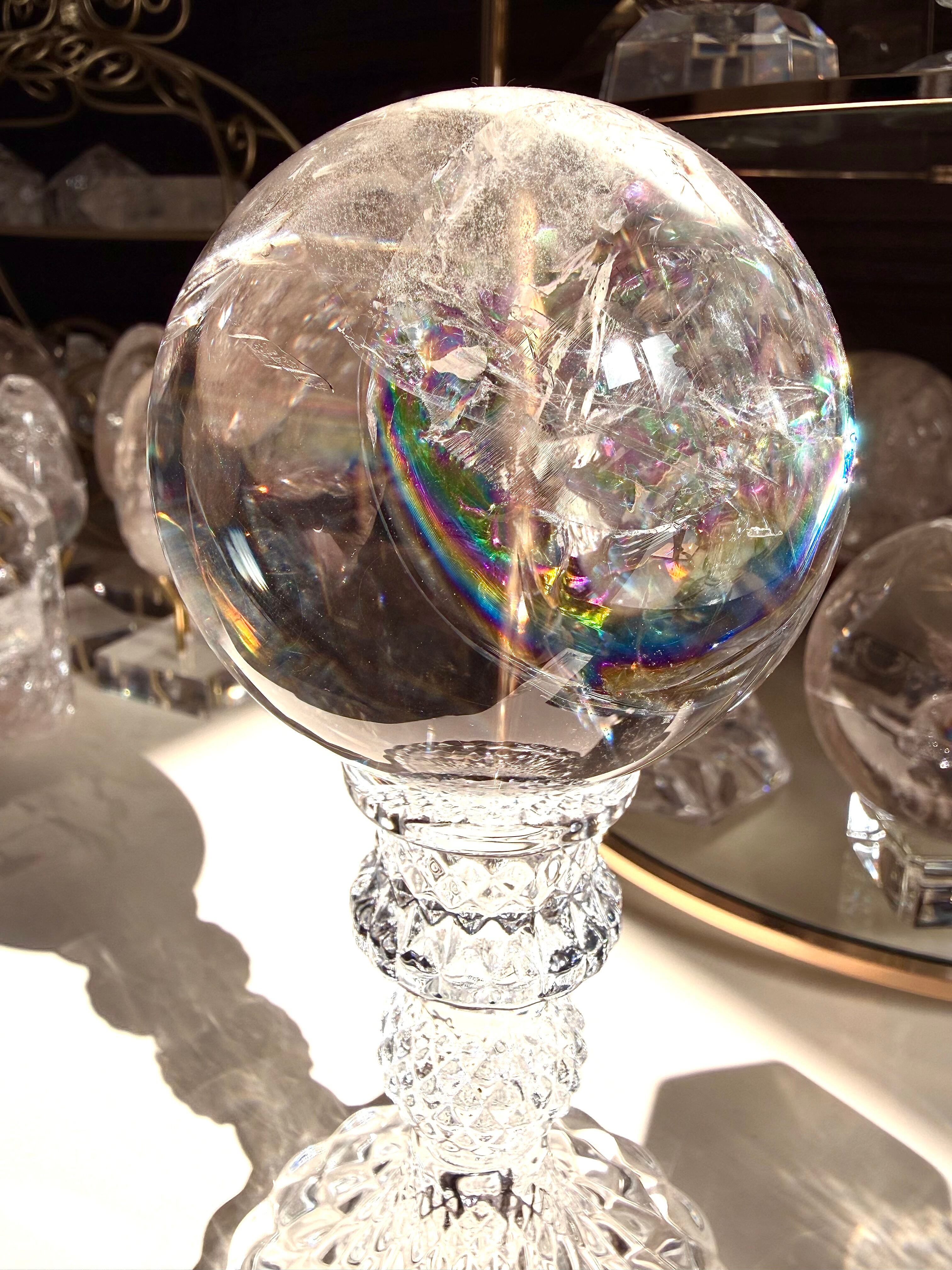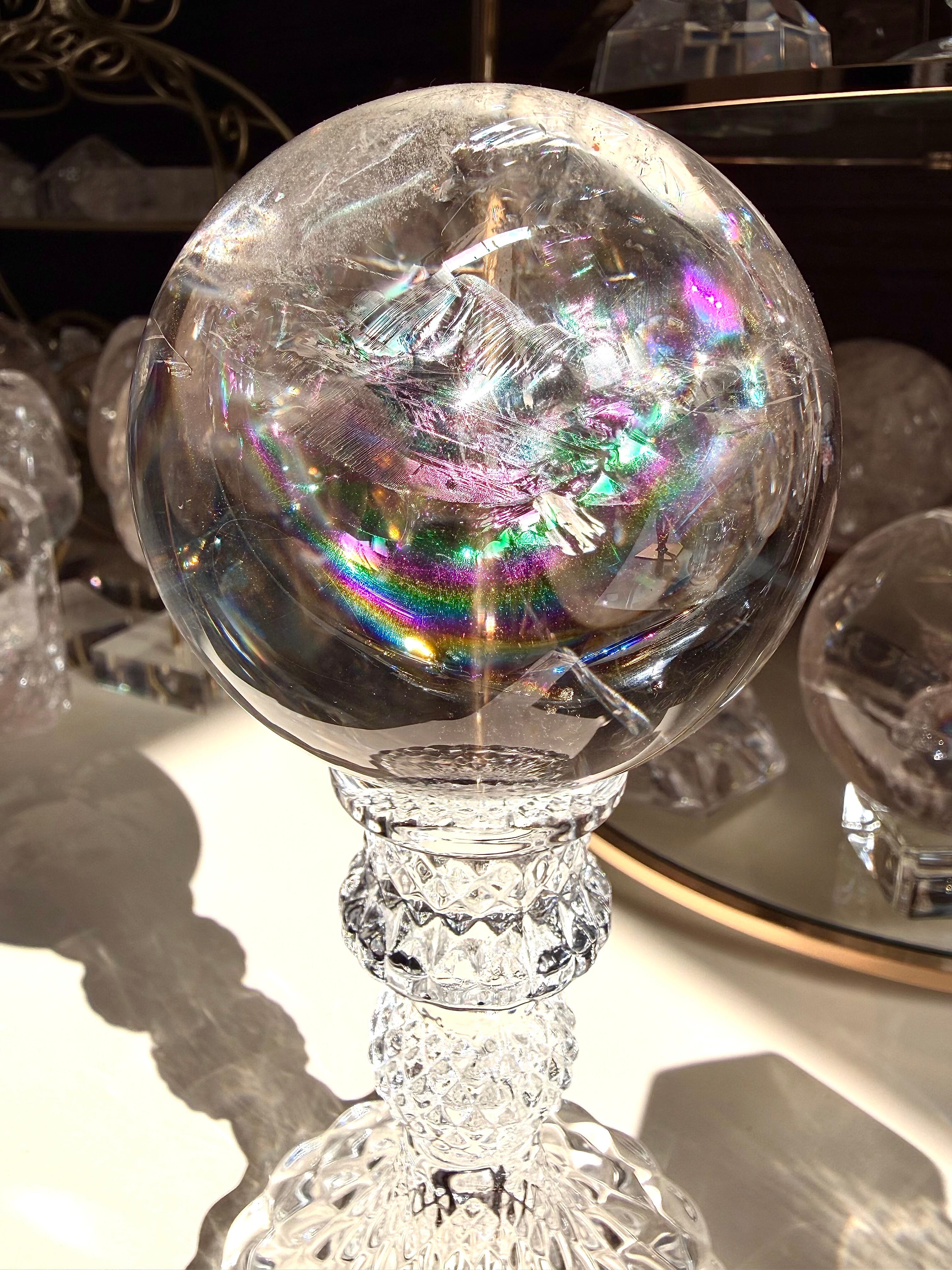 とんでもないレムリアンシードスフィアを入荷いたしました。とにかくクリアで大きな虹が際立ち素晴らしい輝きを放ちます。