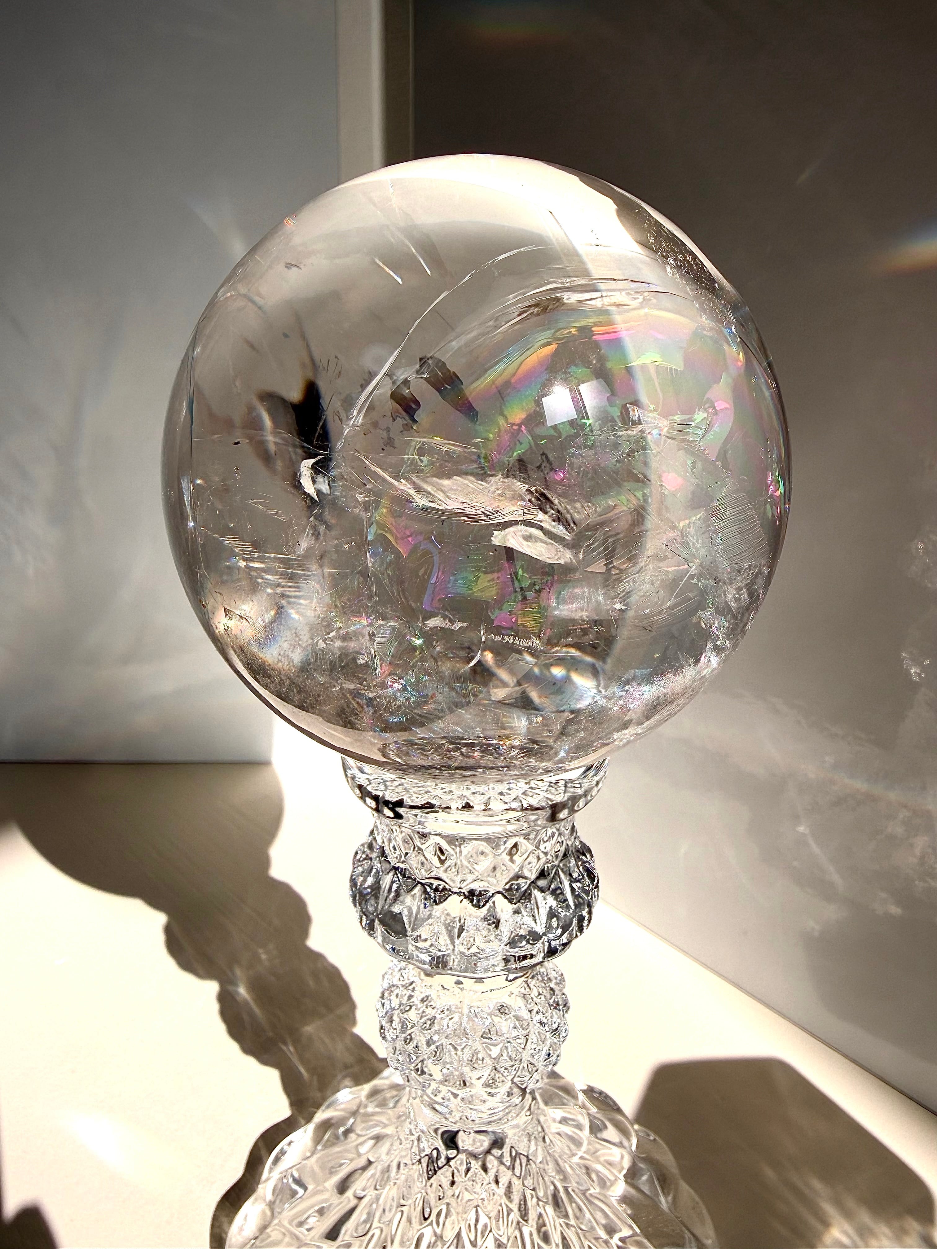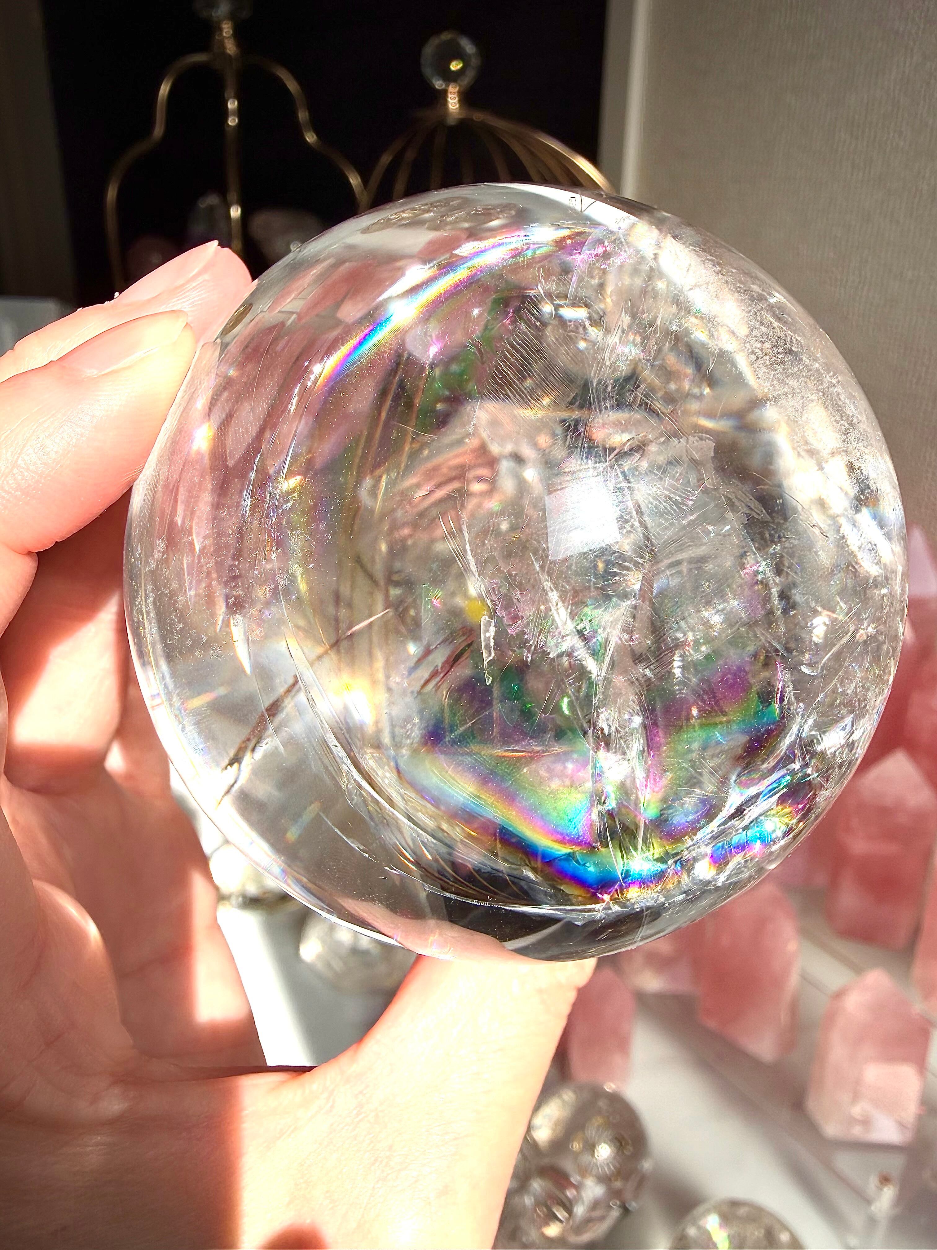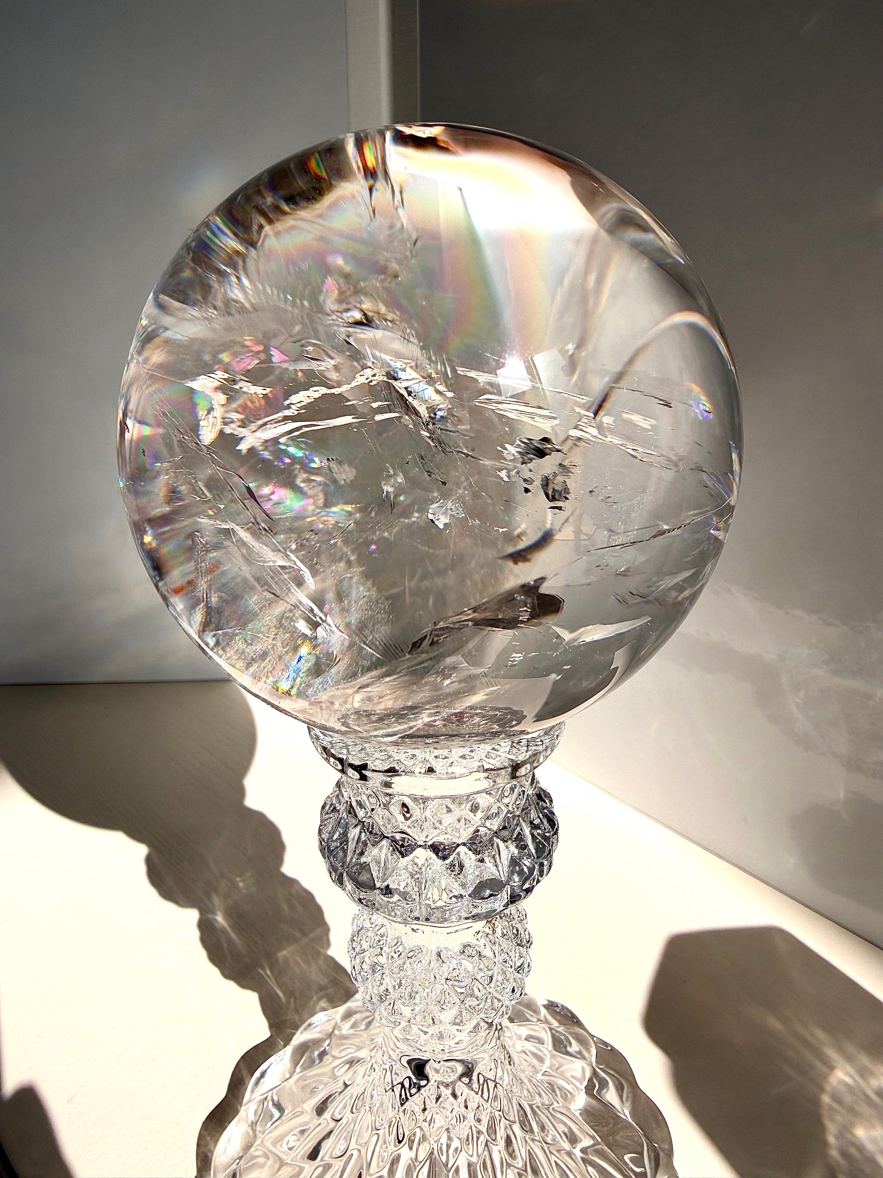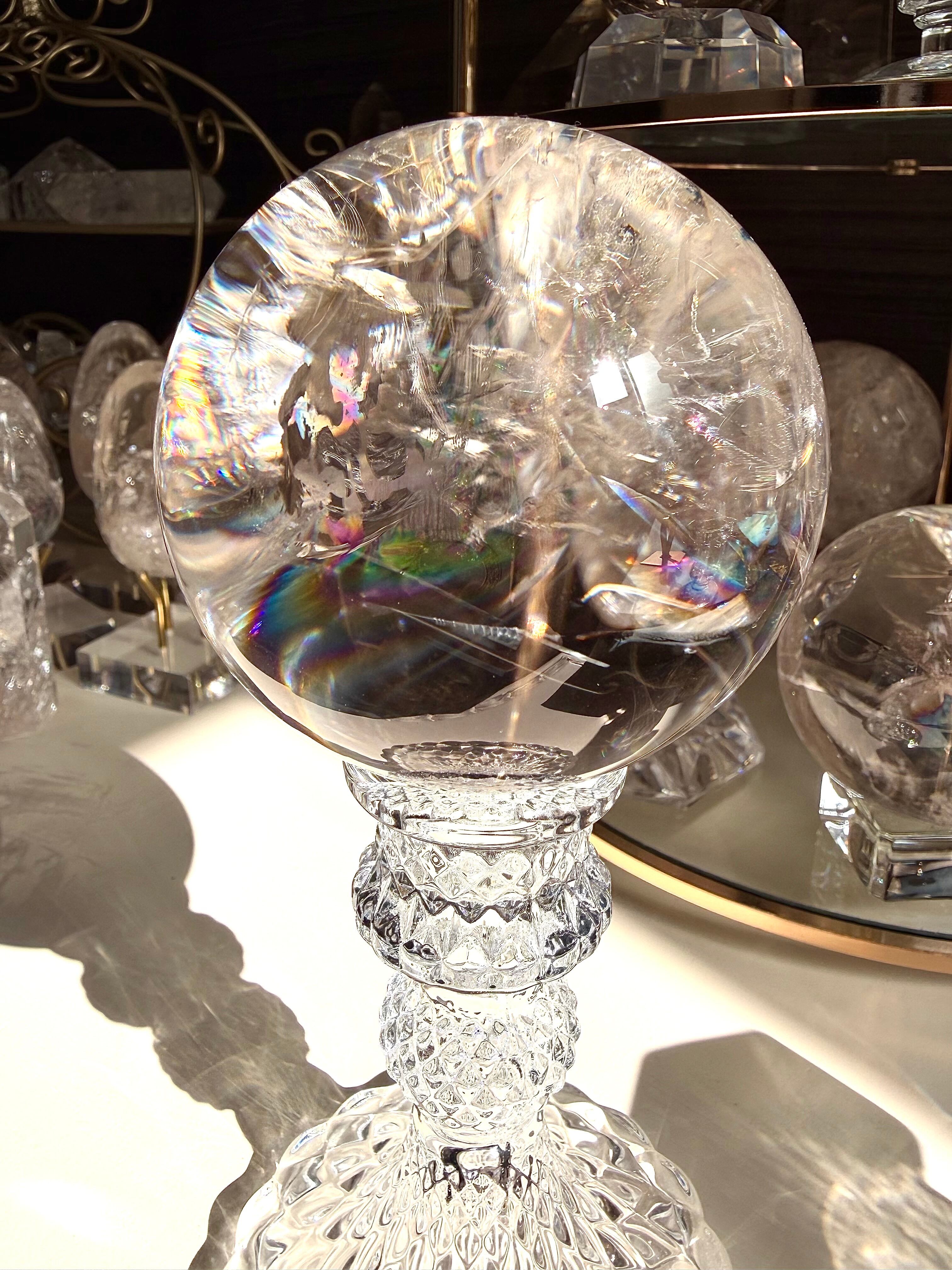 とんでもないレムリアンシードスフィアを入荷いたしました。とにかくクリアで大きな虹が際立ち素晴らしい輝きを放ちます。